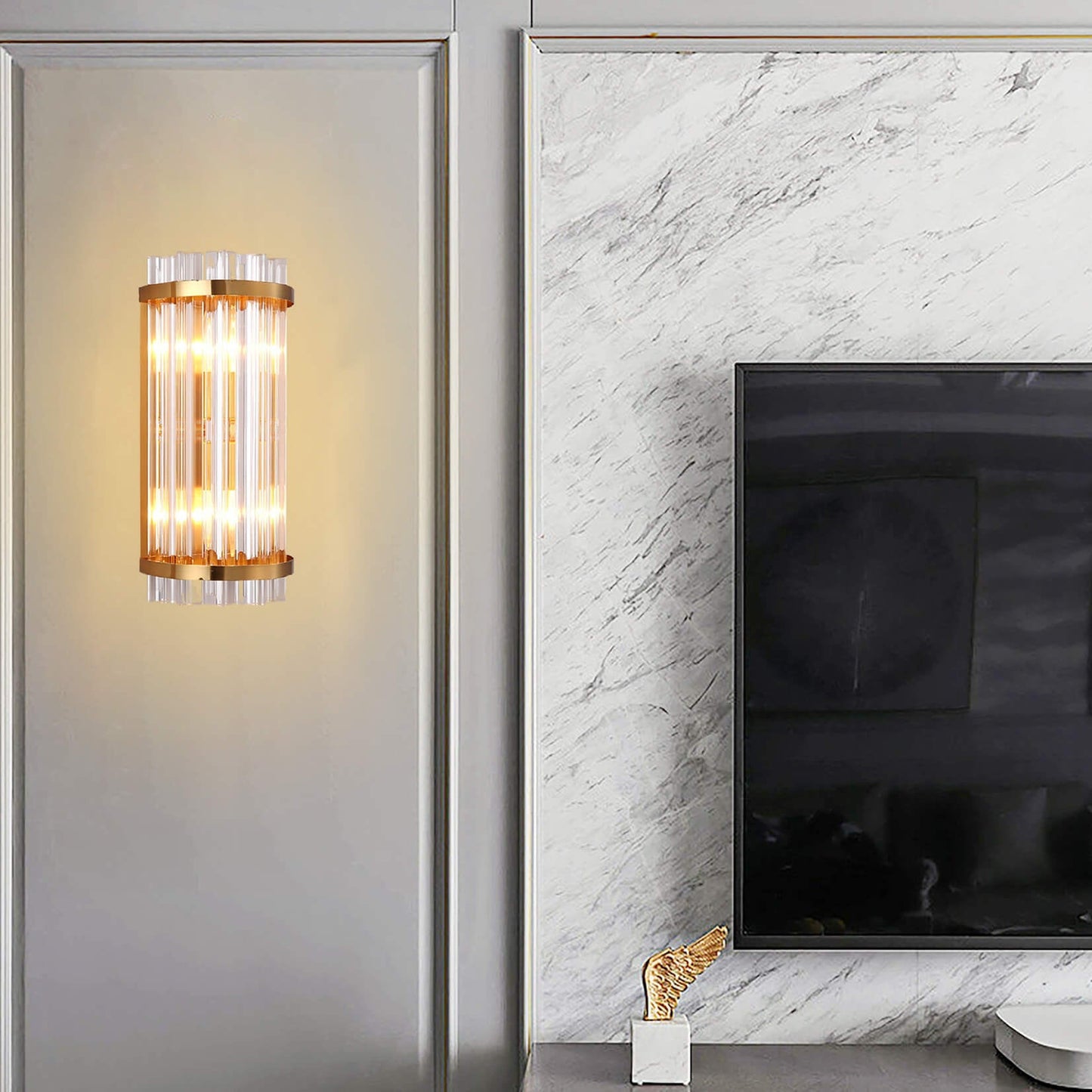 Nordic Luxury Crystal Plated Column 2-Light Wall Sconce Lamp