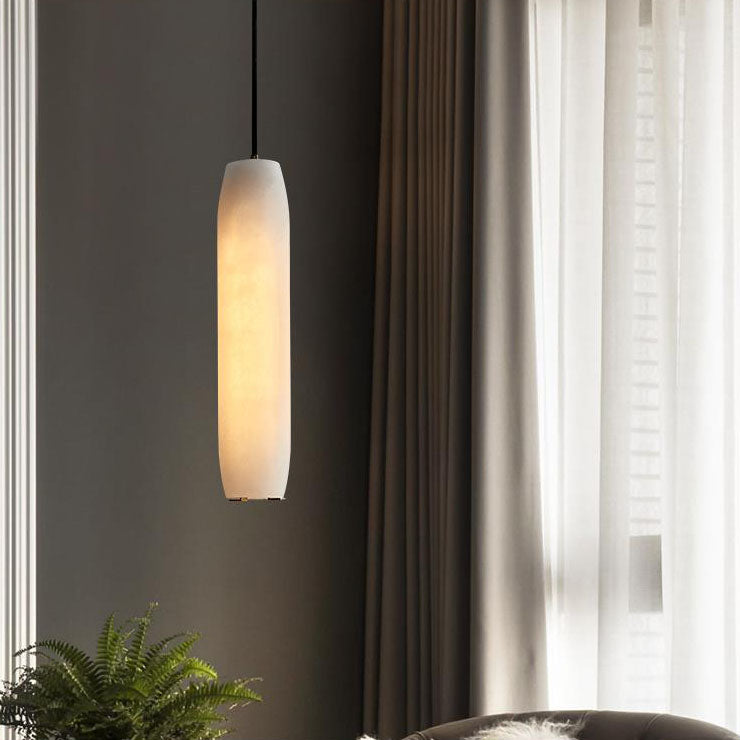 Nordic Luxury Marble Bronze Column 1-Light Pendant Light