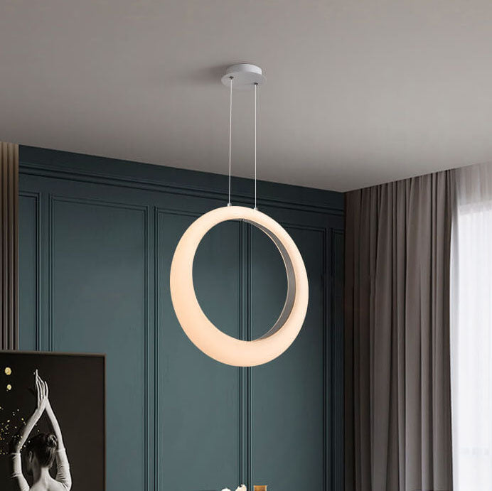 Nordic Minimalist PE Circle Ring Electroplated Iron LED Pendant Light