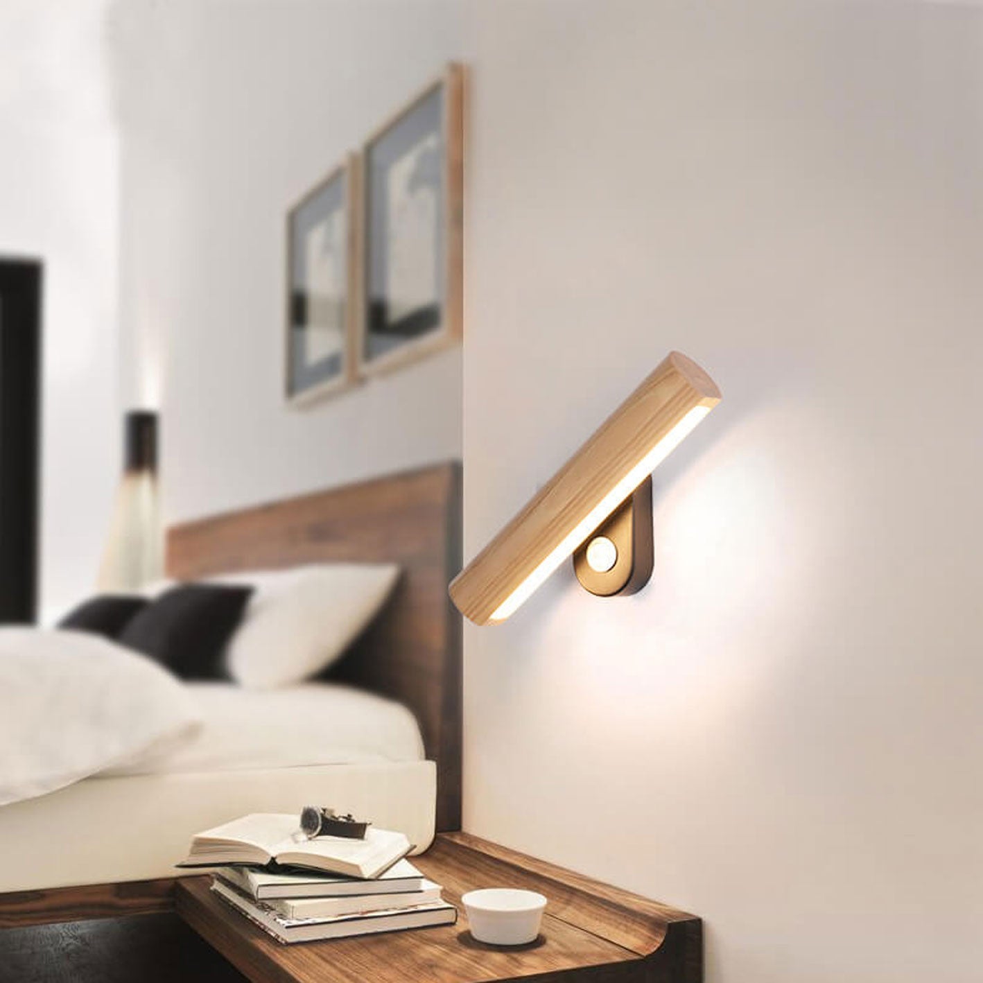 Nordic Simple Solid Wood Bar Rotating LED Wall Sconce Lamp