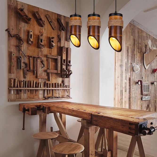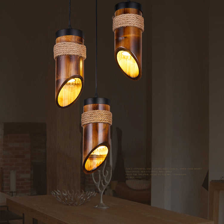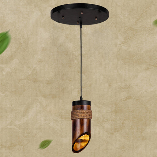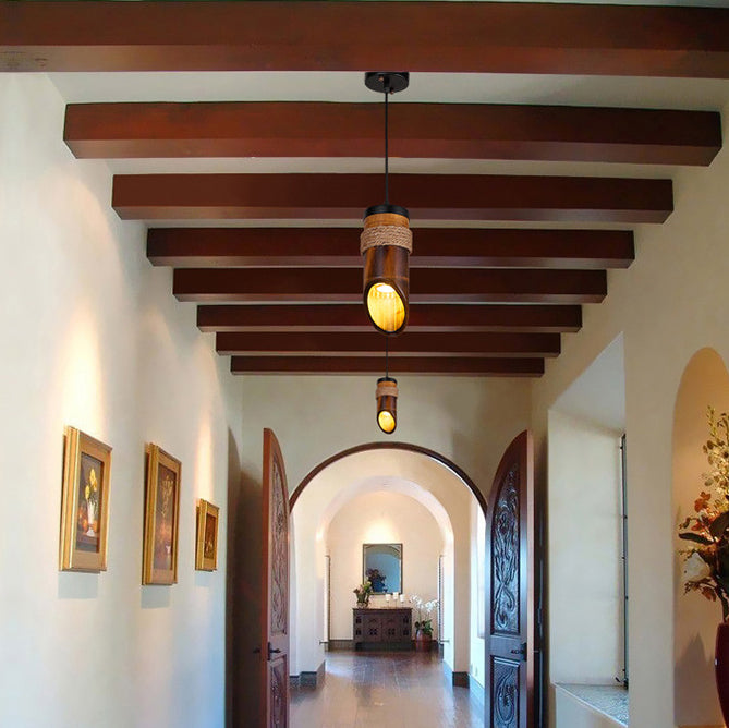 Rustic Vintage Hemp Rope Bamboo 1-Light Pendant Light