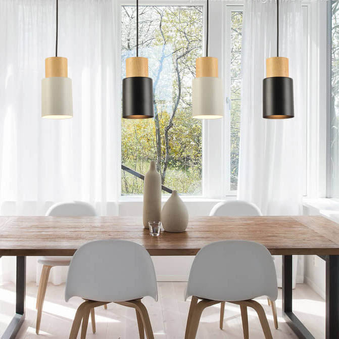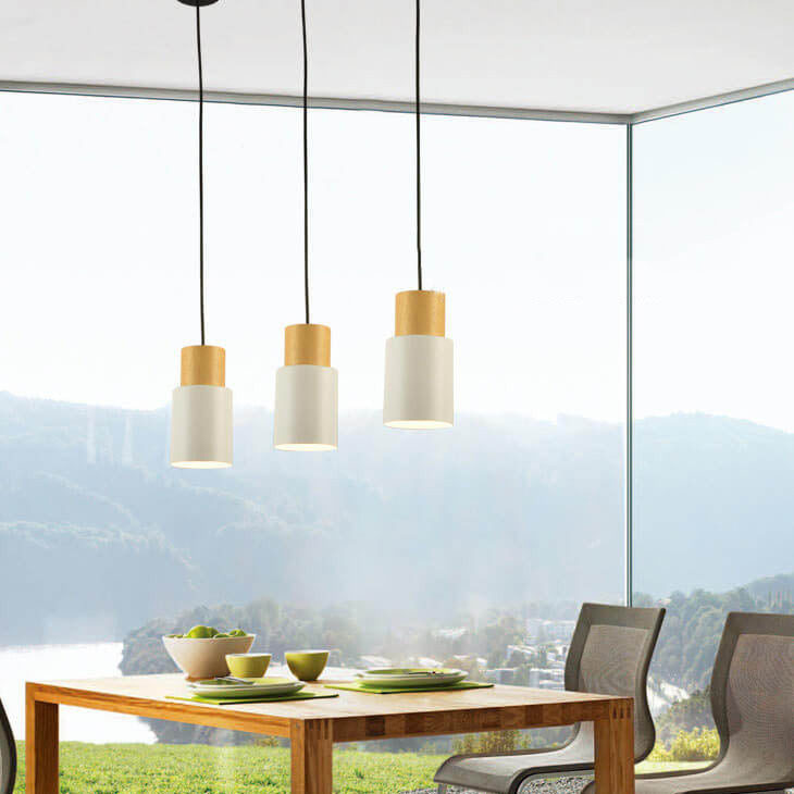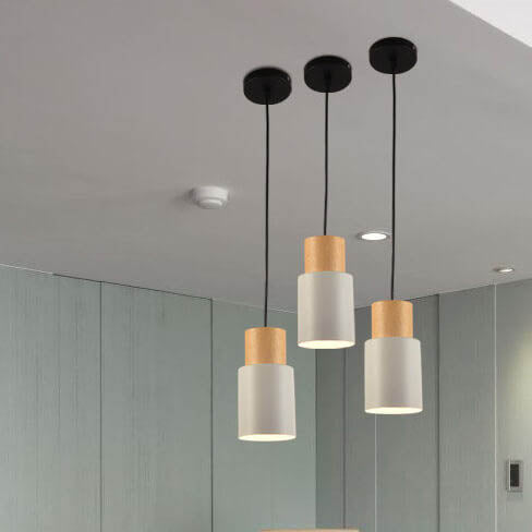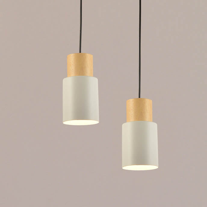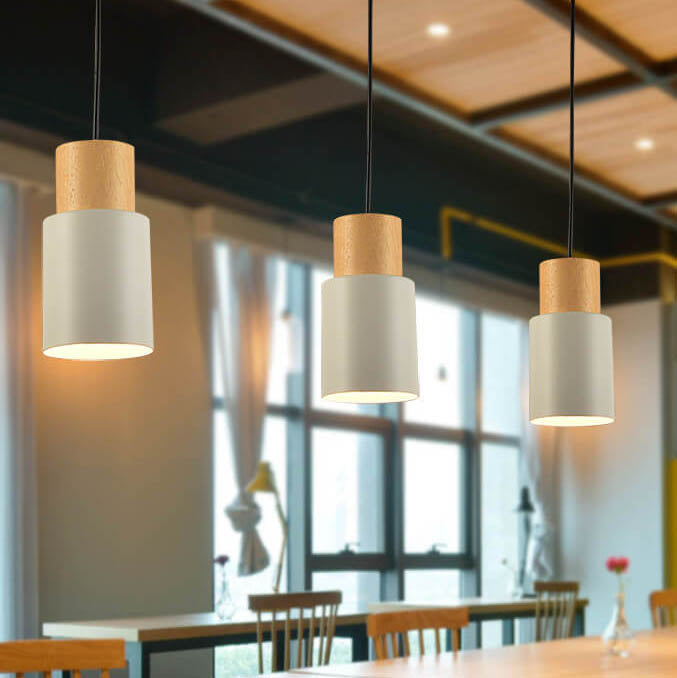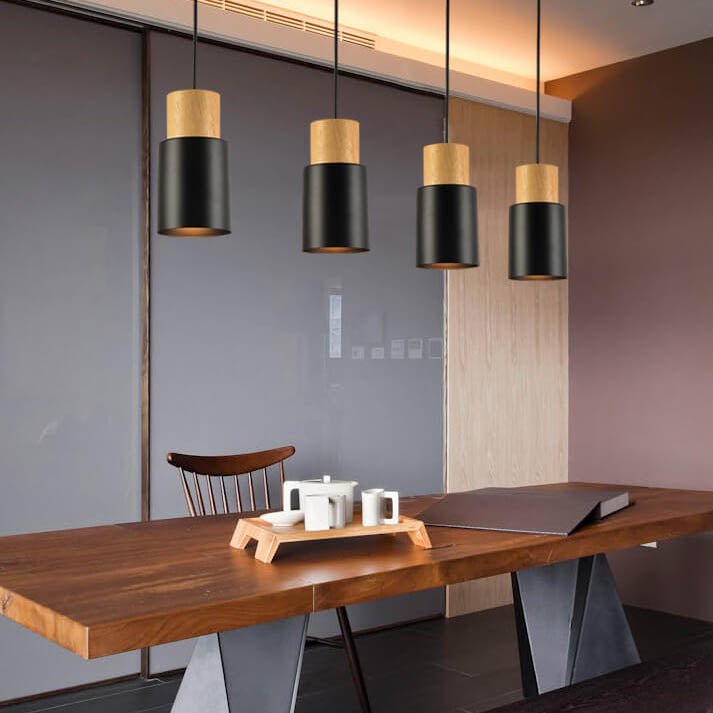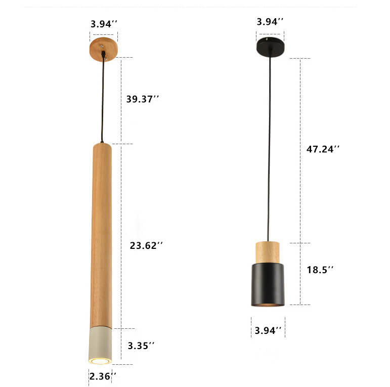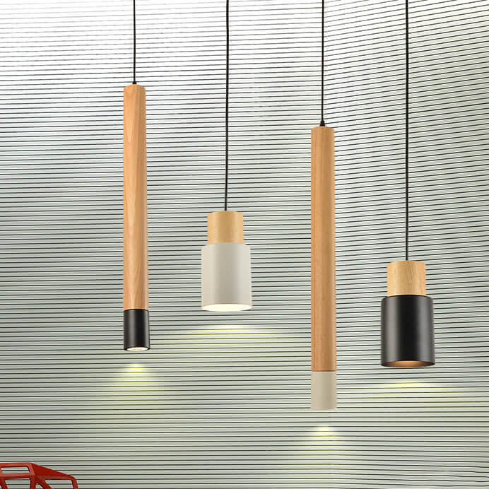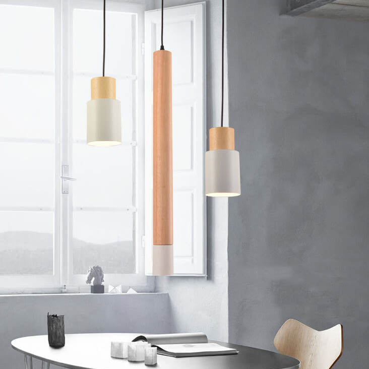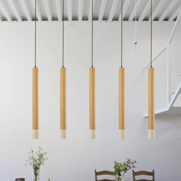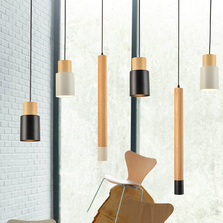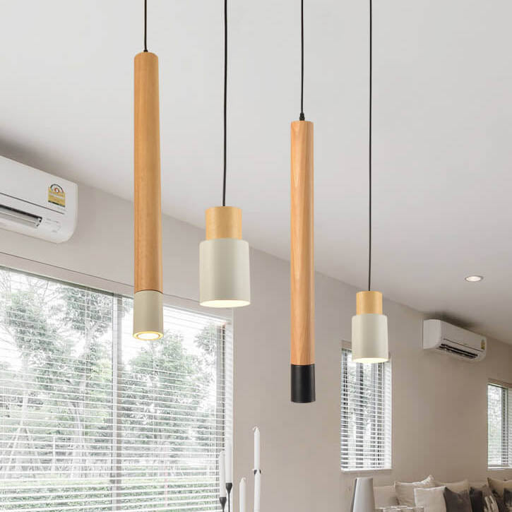 Simple Solid Wood Cylindrical Straight 1-Light LED Pendant Light