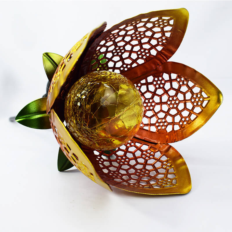 Solar Wrought-Iron Hollow Petals LED Outdoor Ground Insert Landscape Light
