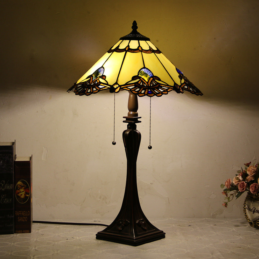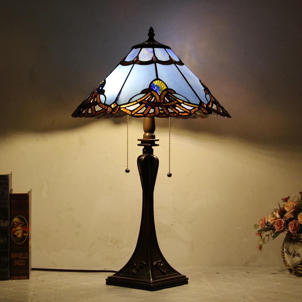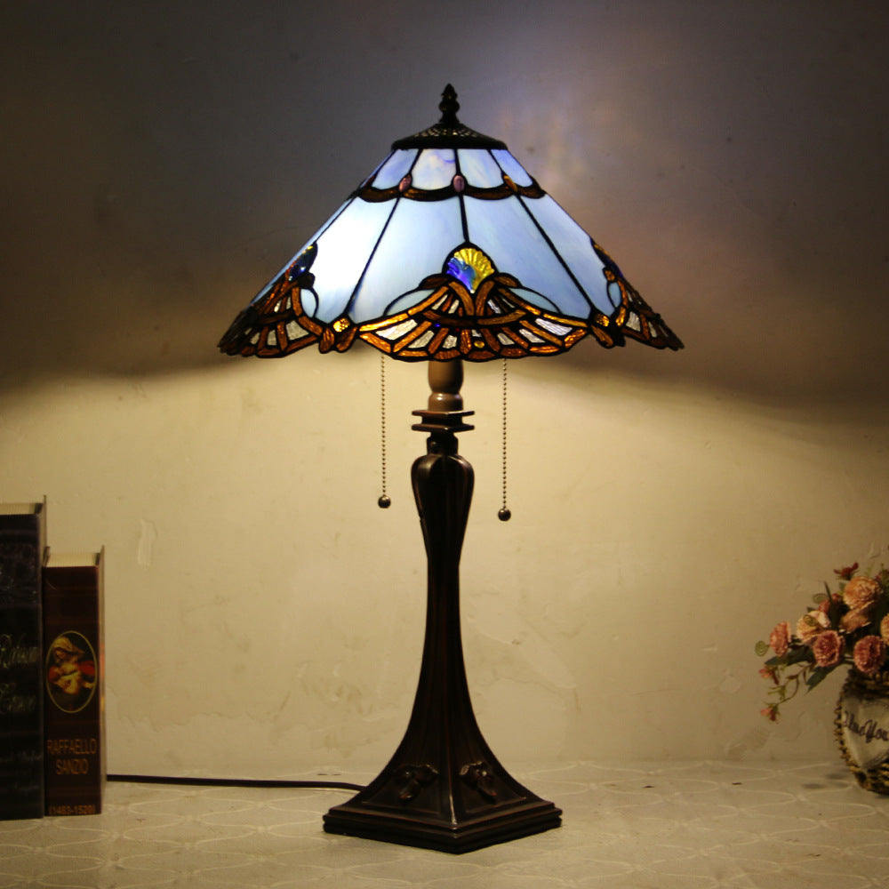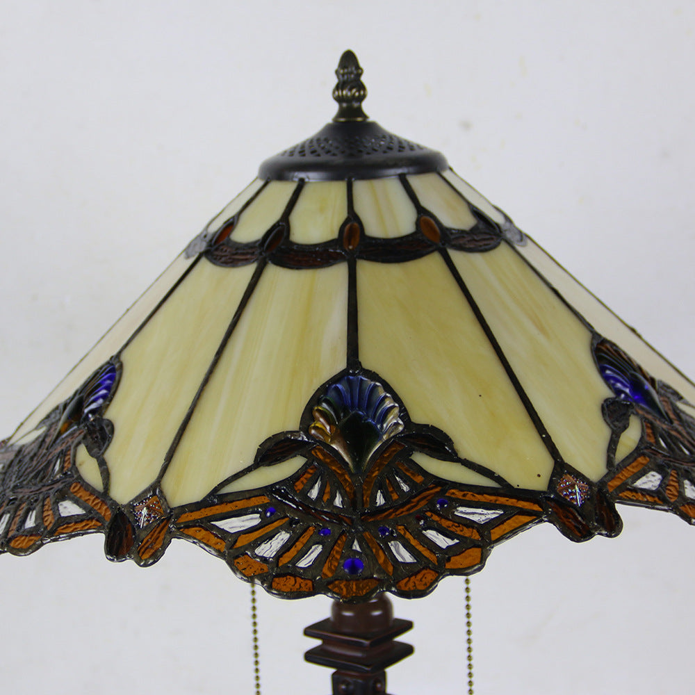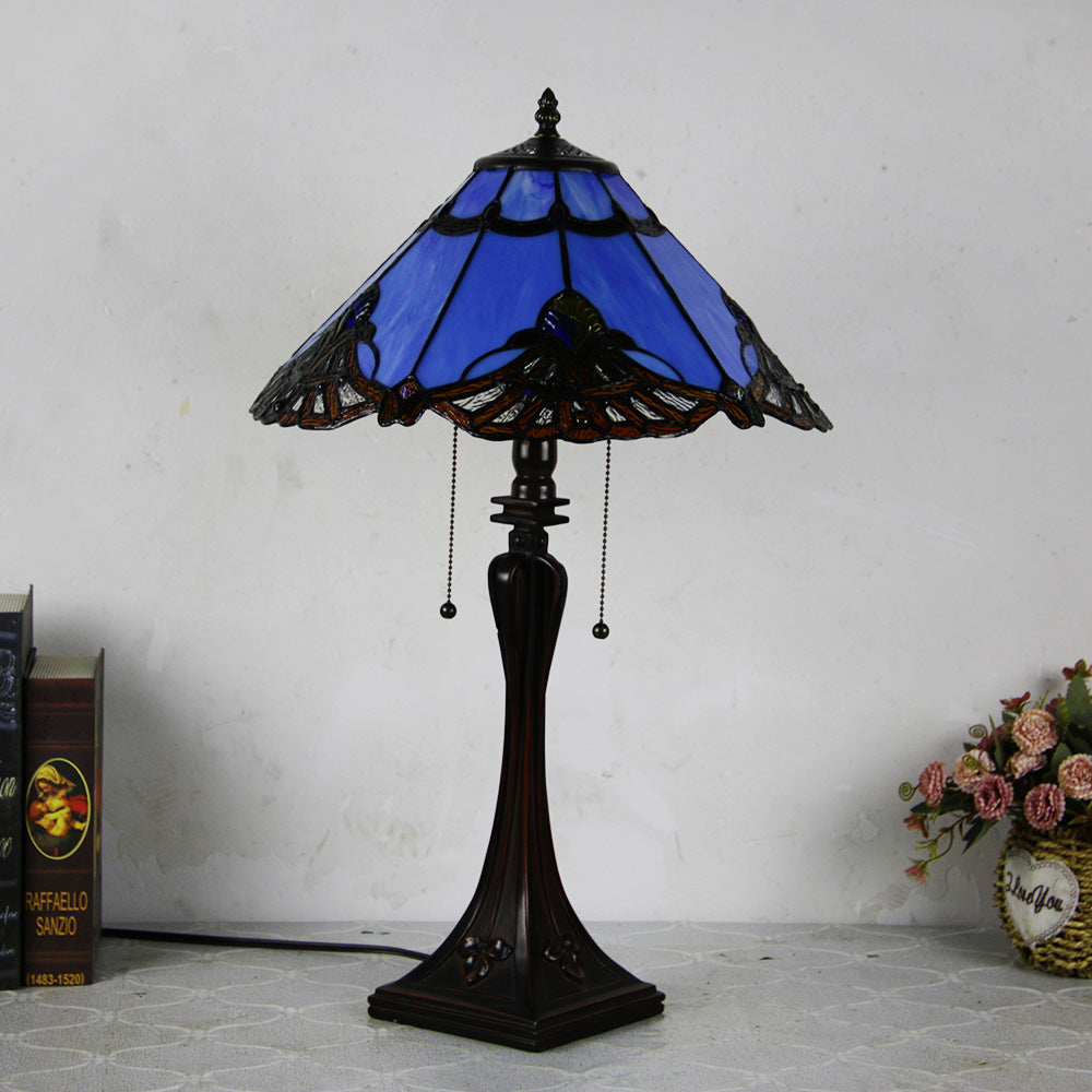 Tiffany Mediterranean Stained Glass Cone Pull Cord 2-Light Table Lamp