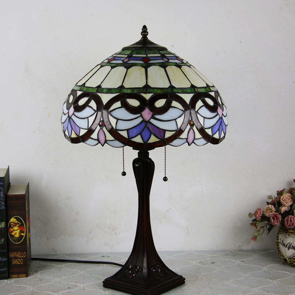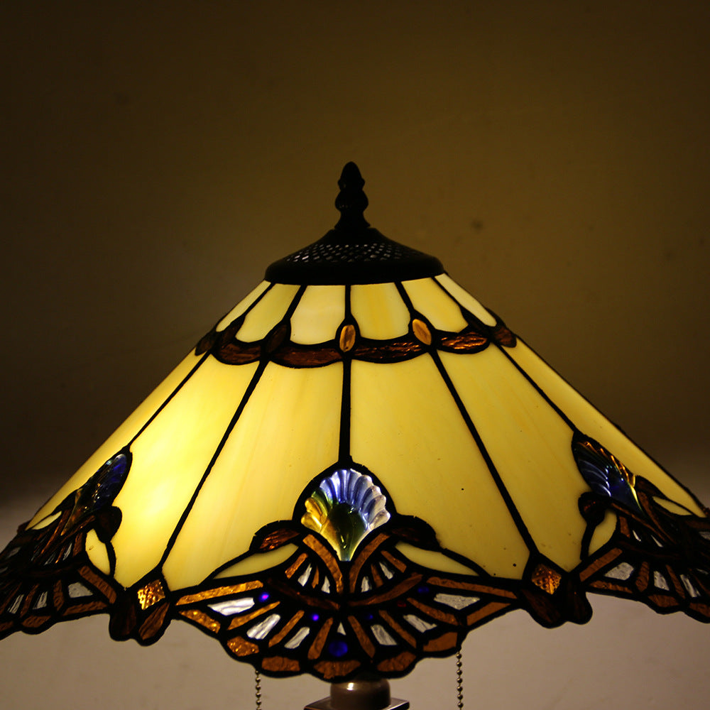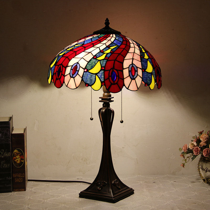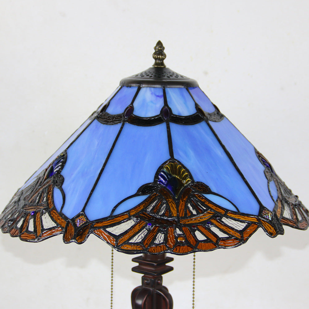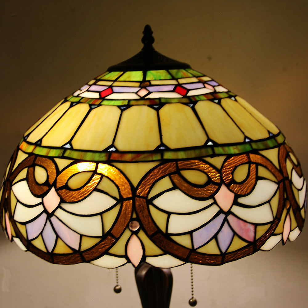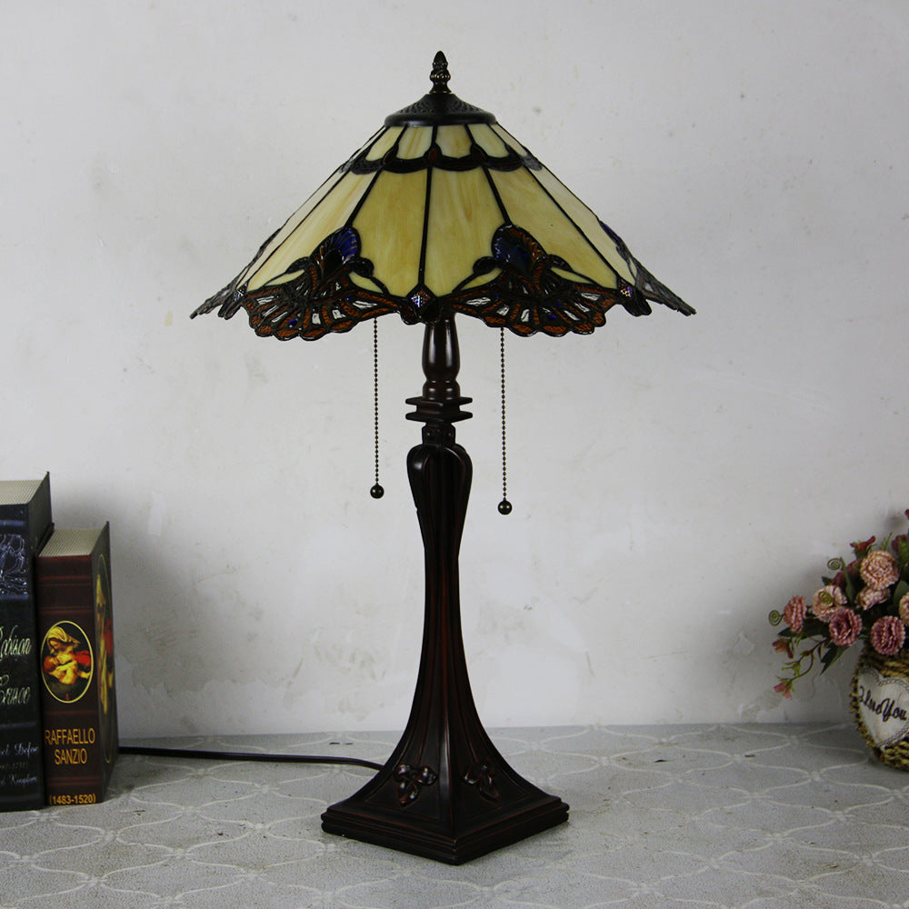 Tiffany Mediterranean Stained Glass Cone Pull Cord 2-Light Table Lamp