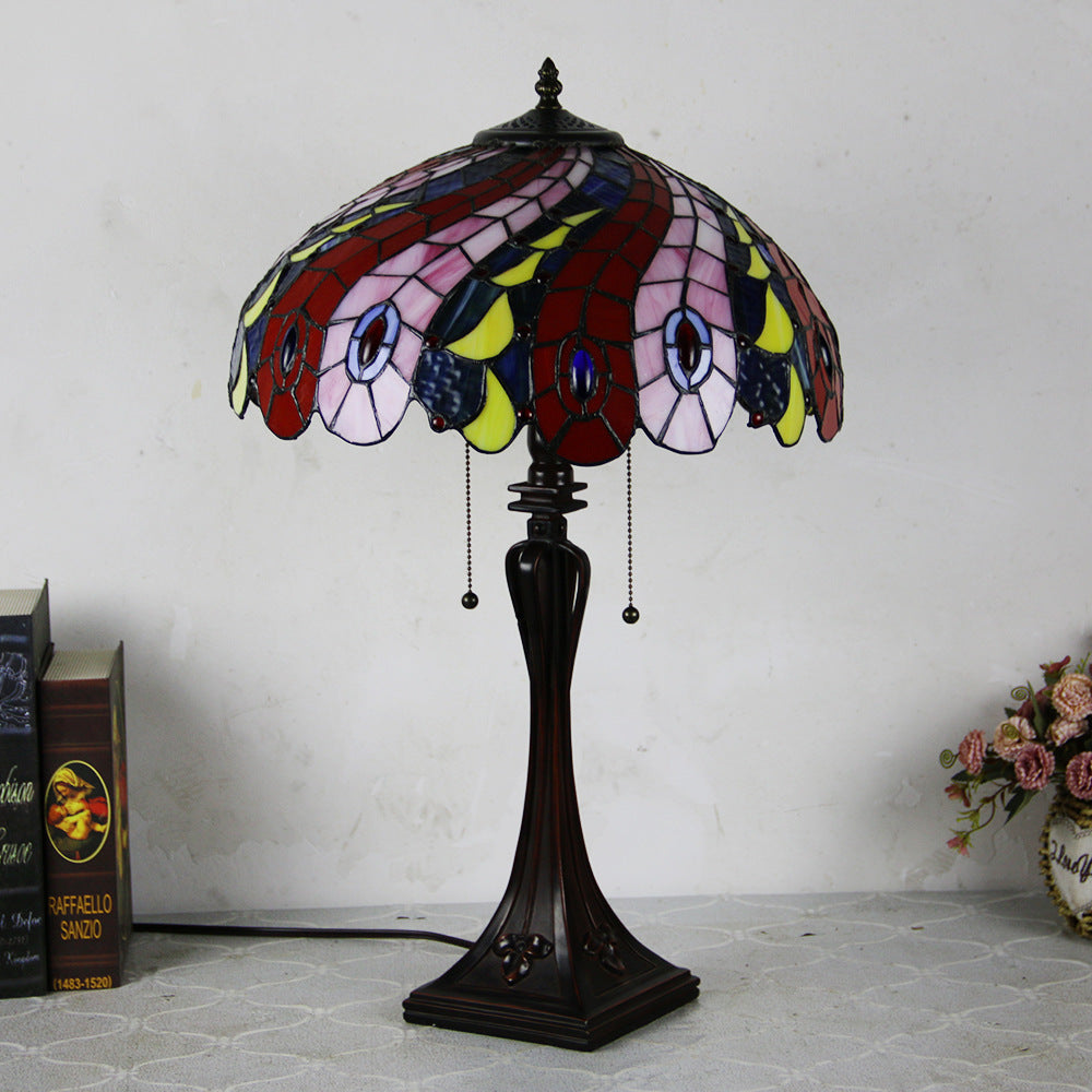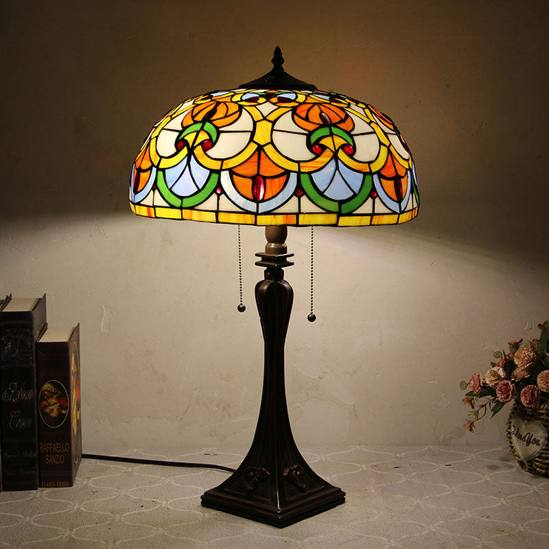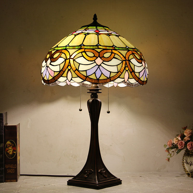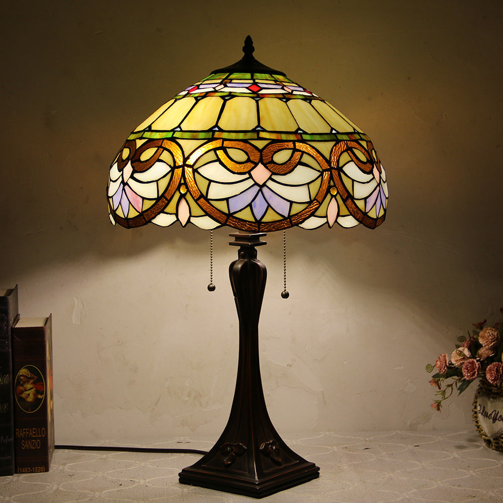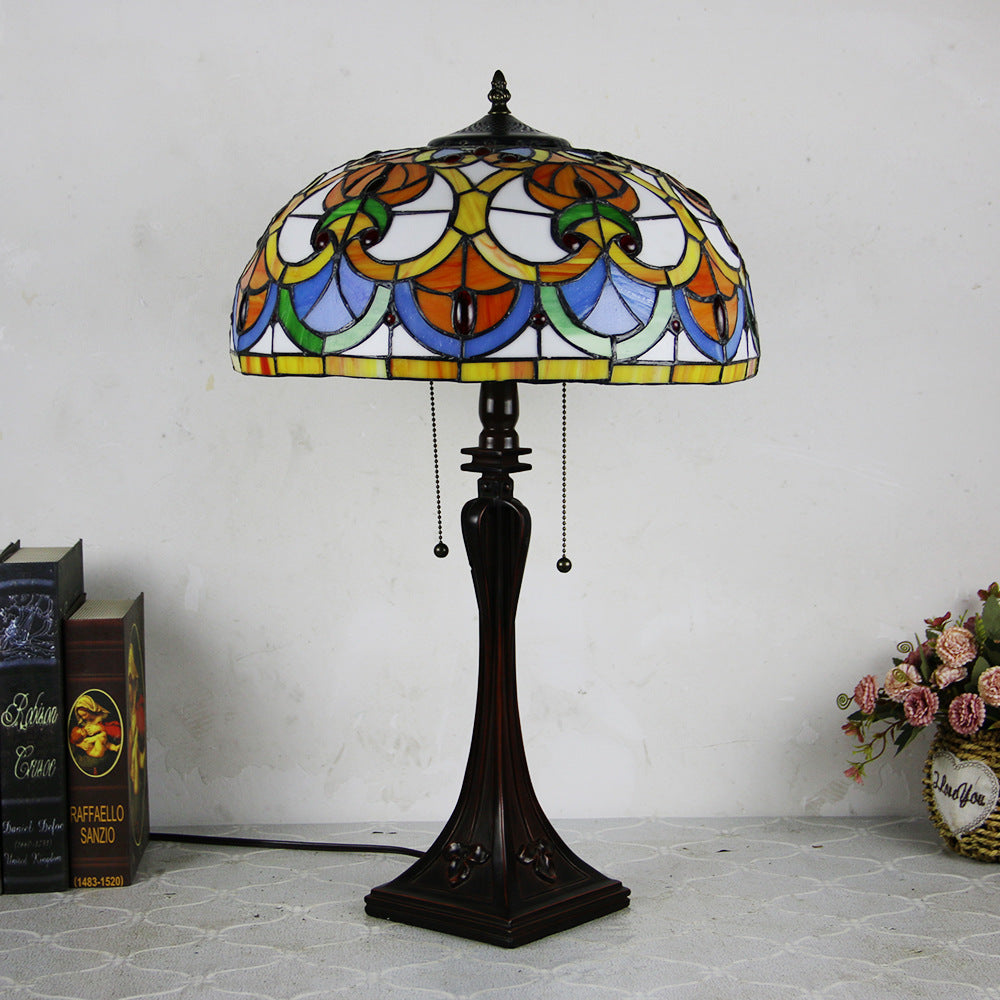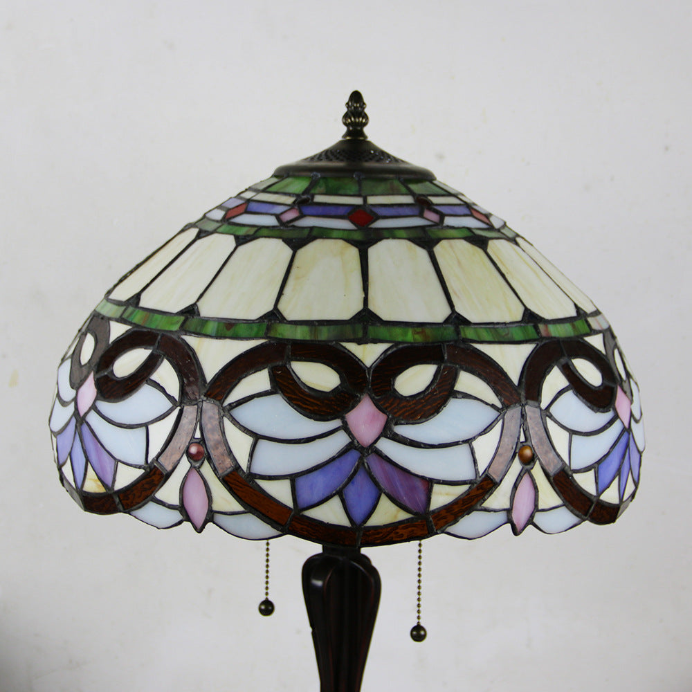 Tiffany Mediterranean Stained Glass Cone Pull Cord 2-Light Table Lamp