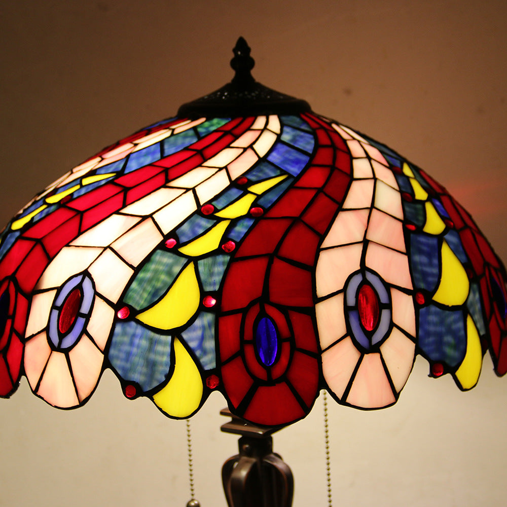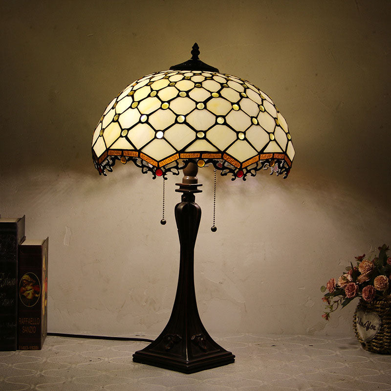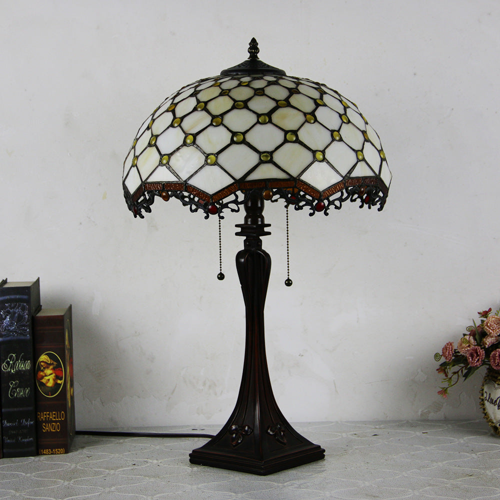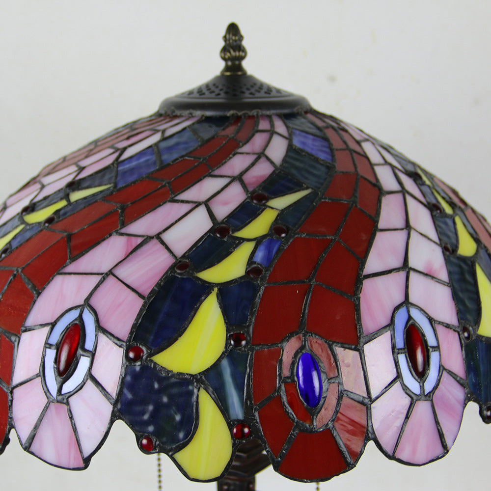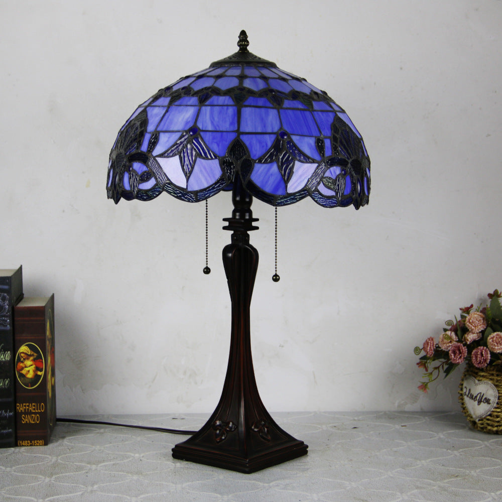 Tiffany Mediterranean Stained Glass Cone Pull Cord 2-Light Table Lamp