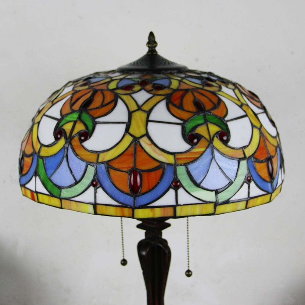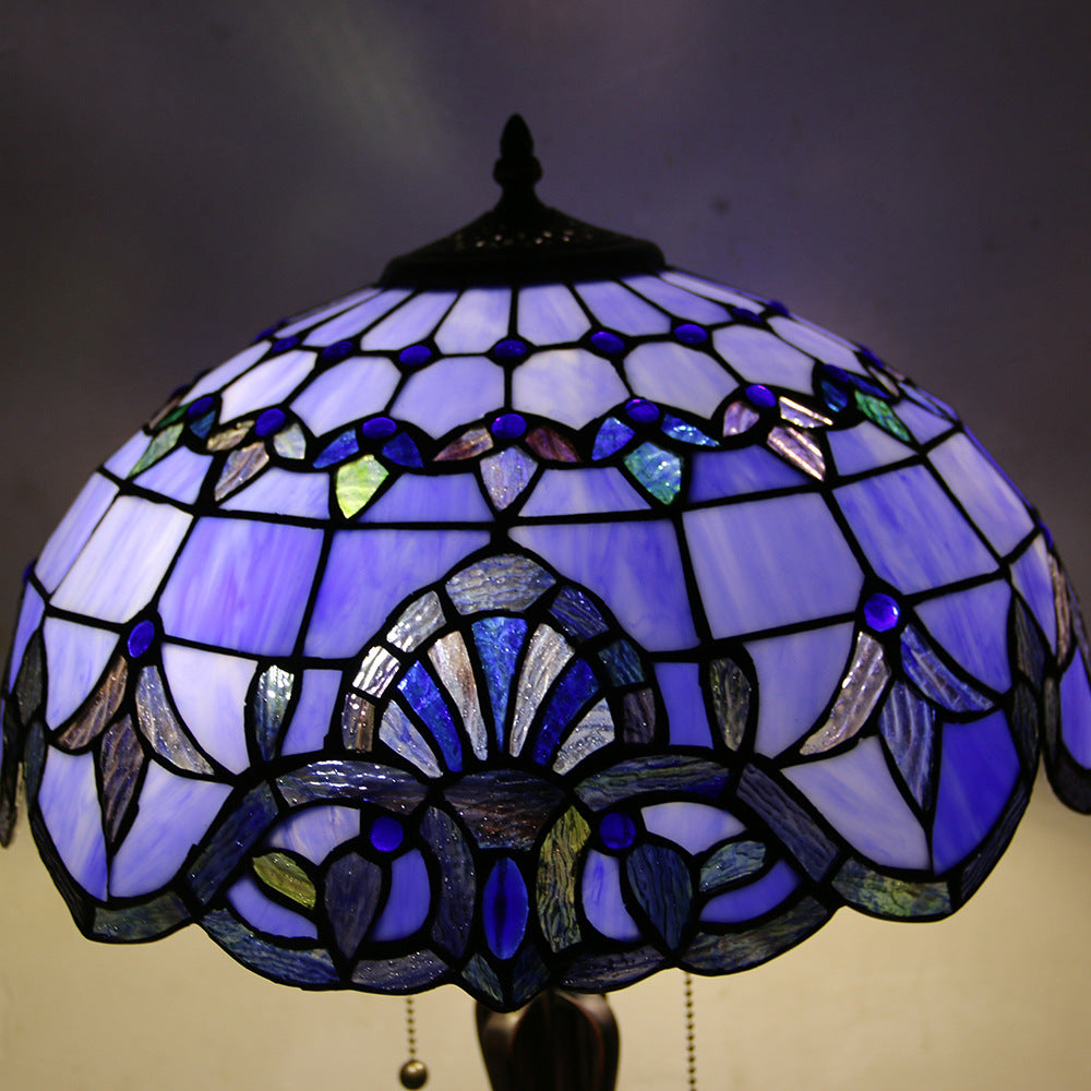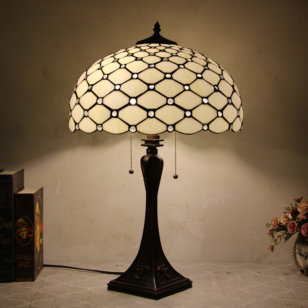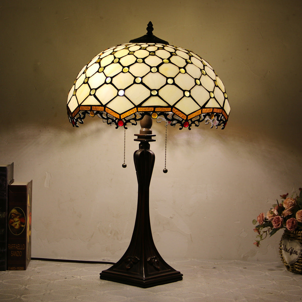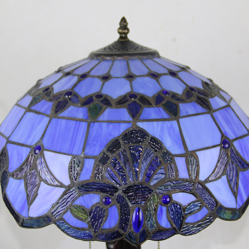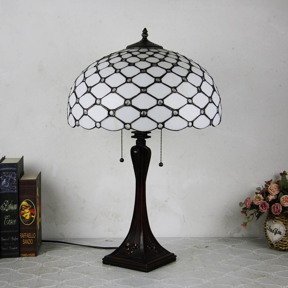Tiffany Mediterranean Stained Glass Cone Pull Cord 2-Light Table Lamp