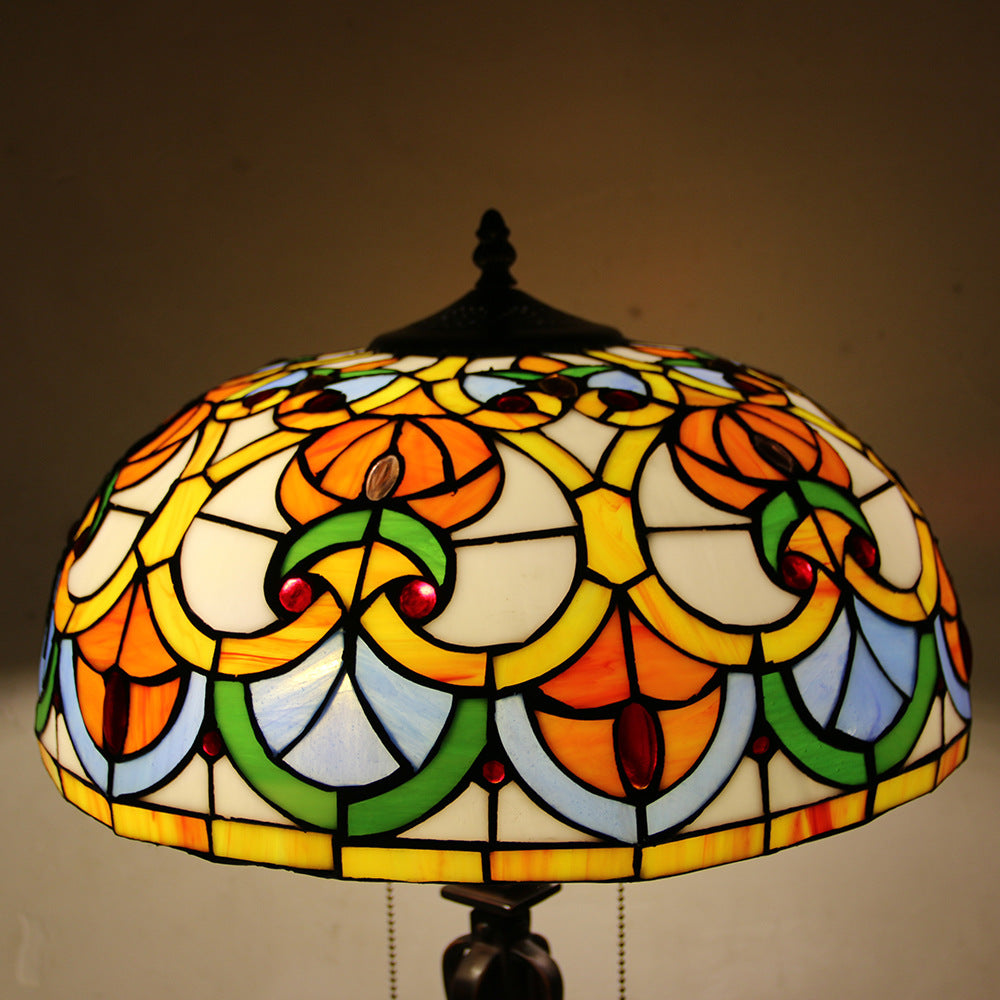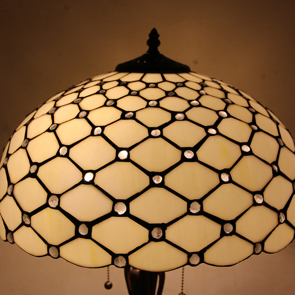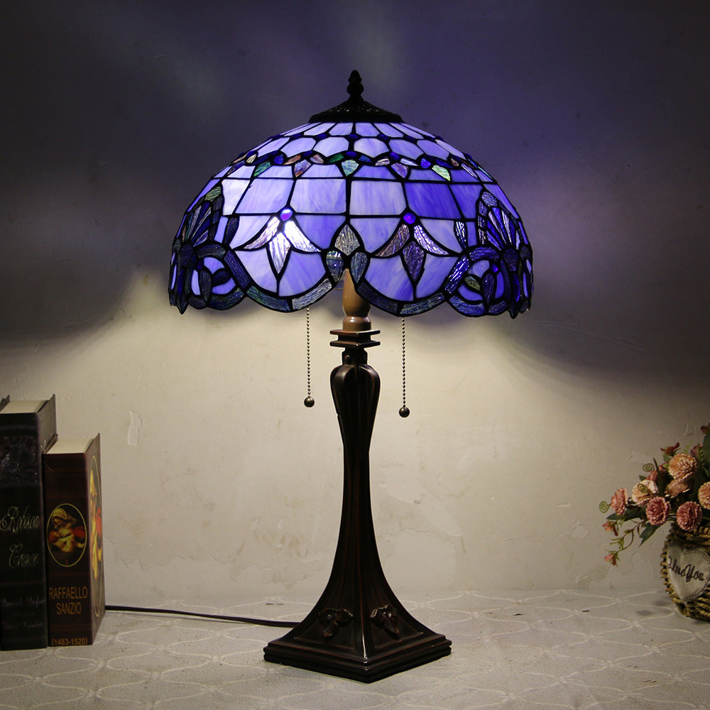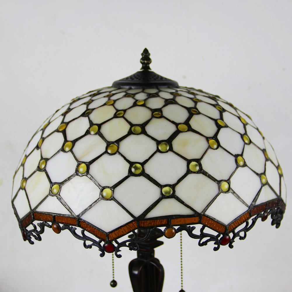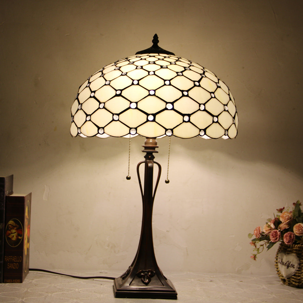 Tiffany Mediterranean Stained Glass Cone Pull Cord 2-Light Table Lamp