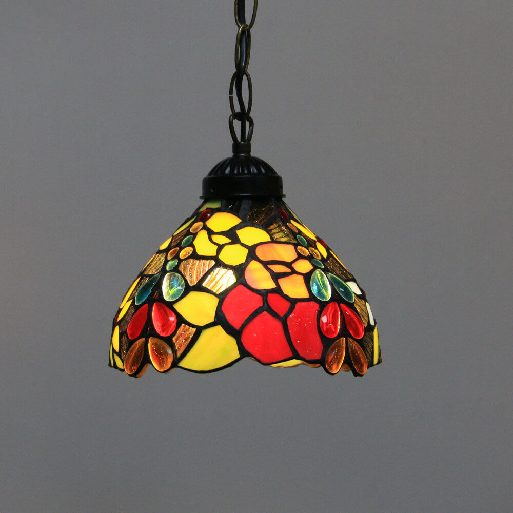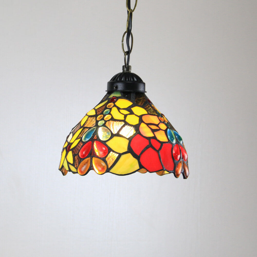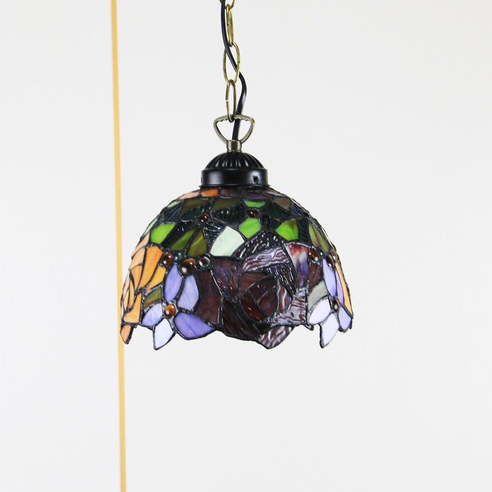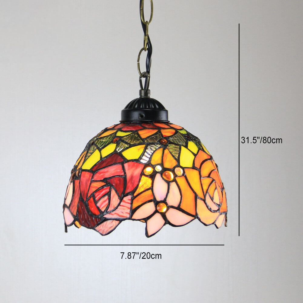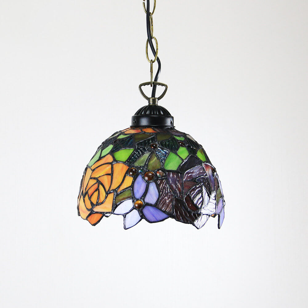 Tiffany Rustic Rose Beads Stained Glass 1-Light Pendant Light