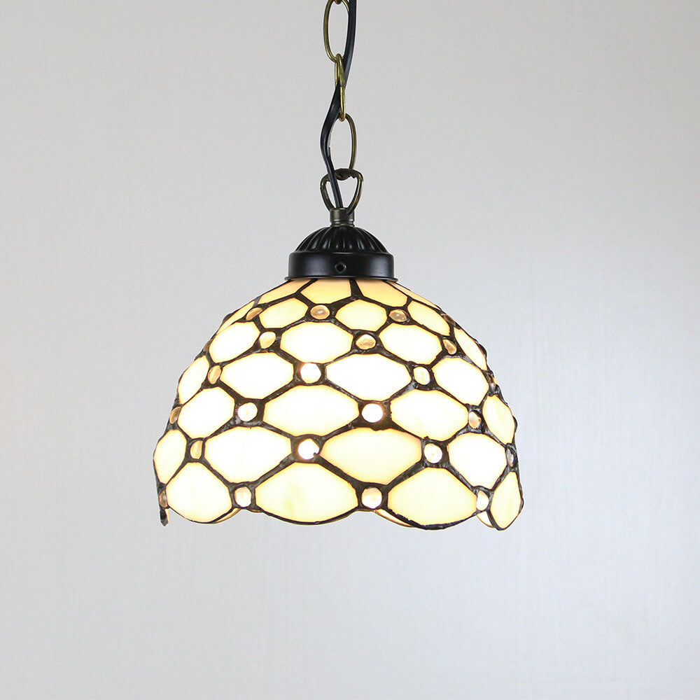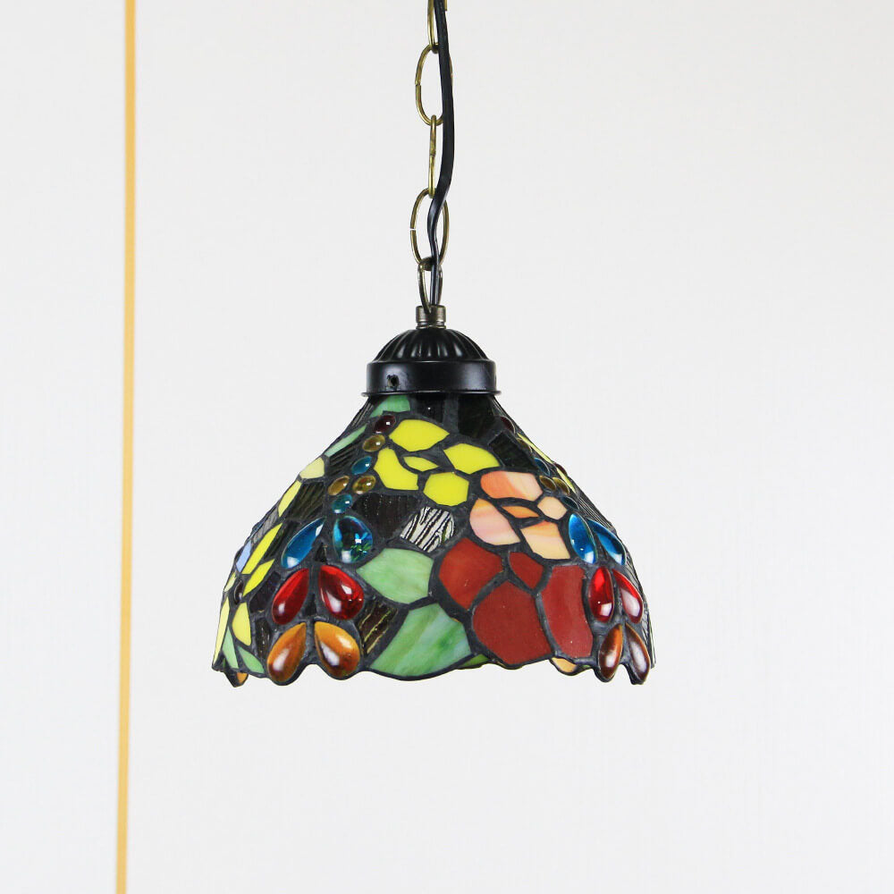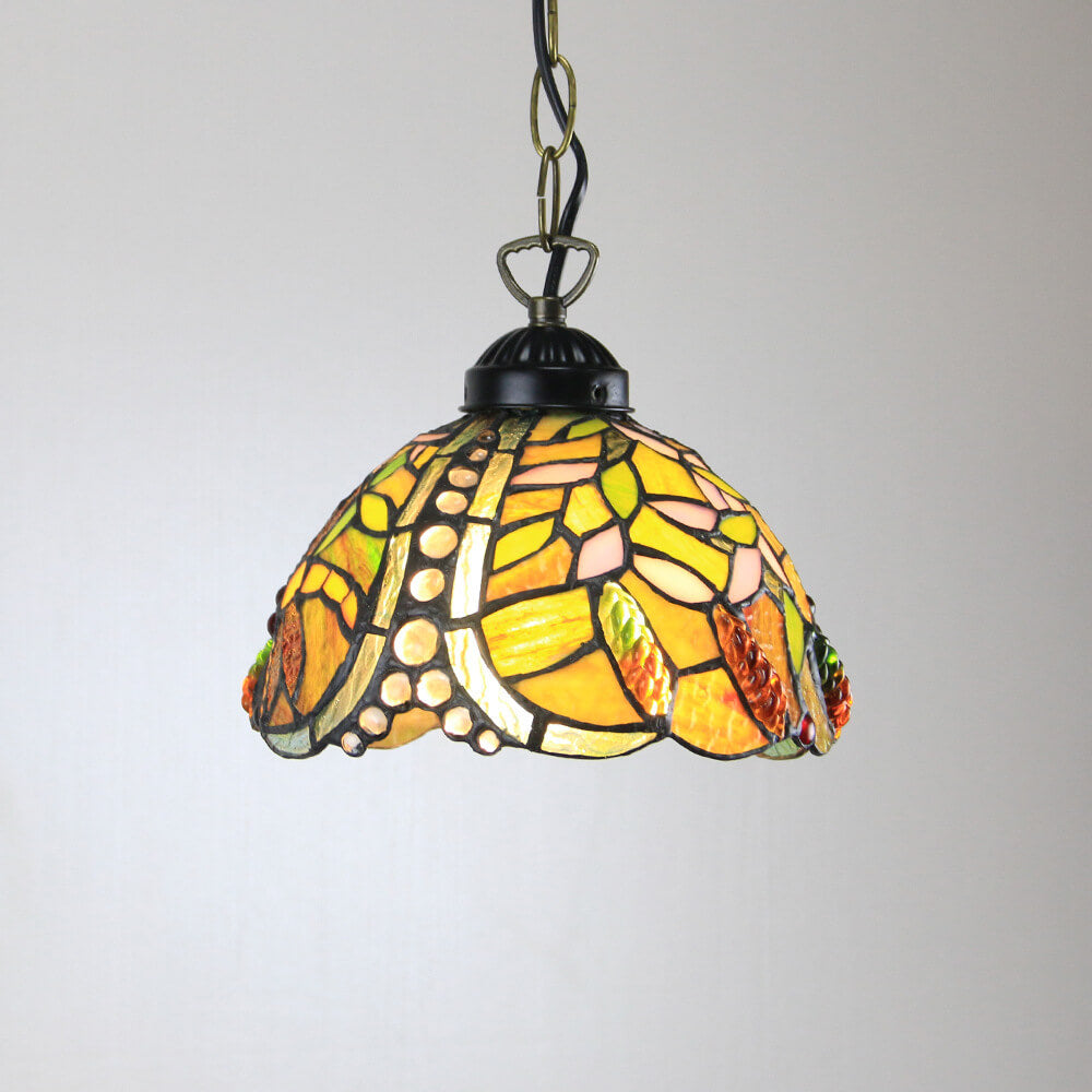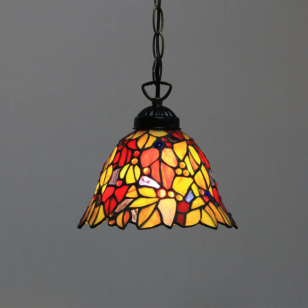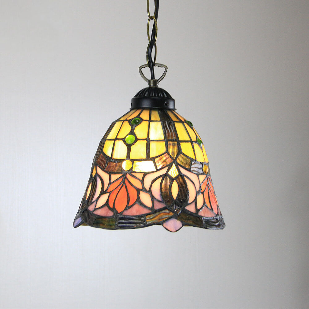Tiffany Rustic Rose Beads Stained Glass 1-Light Pendant Light