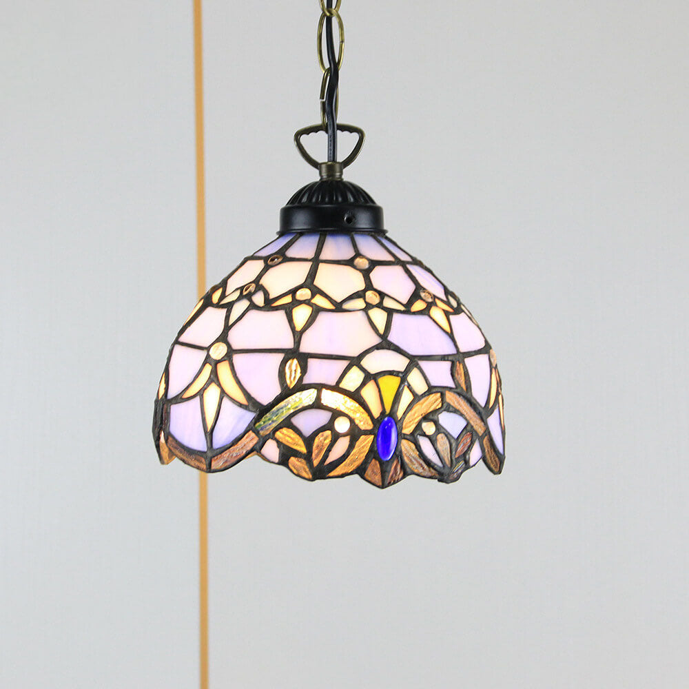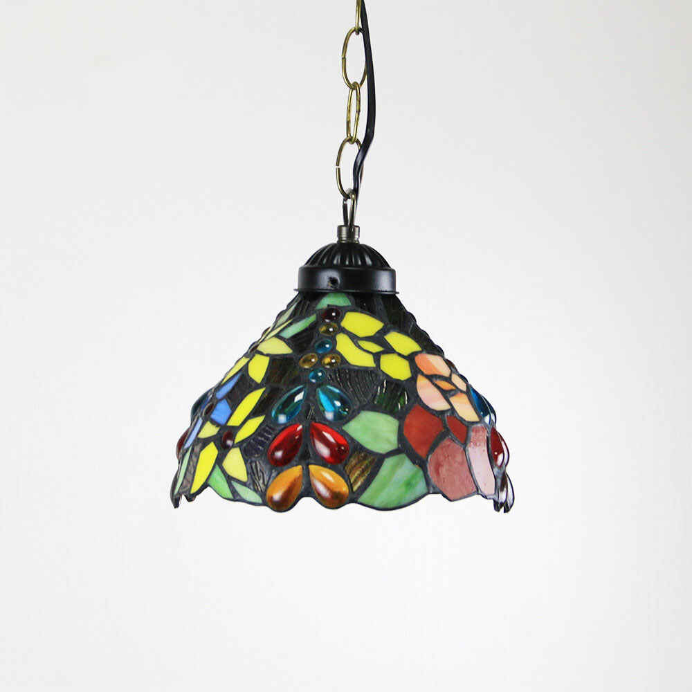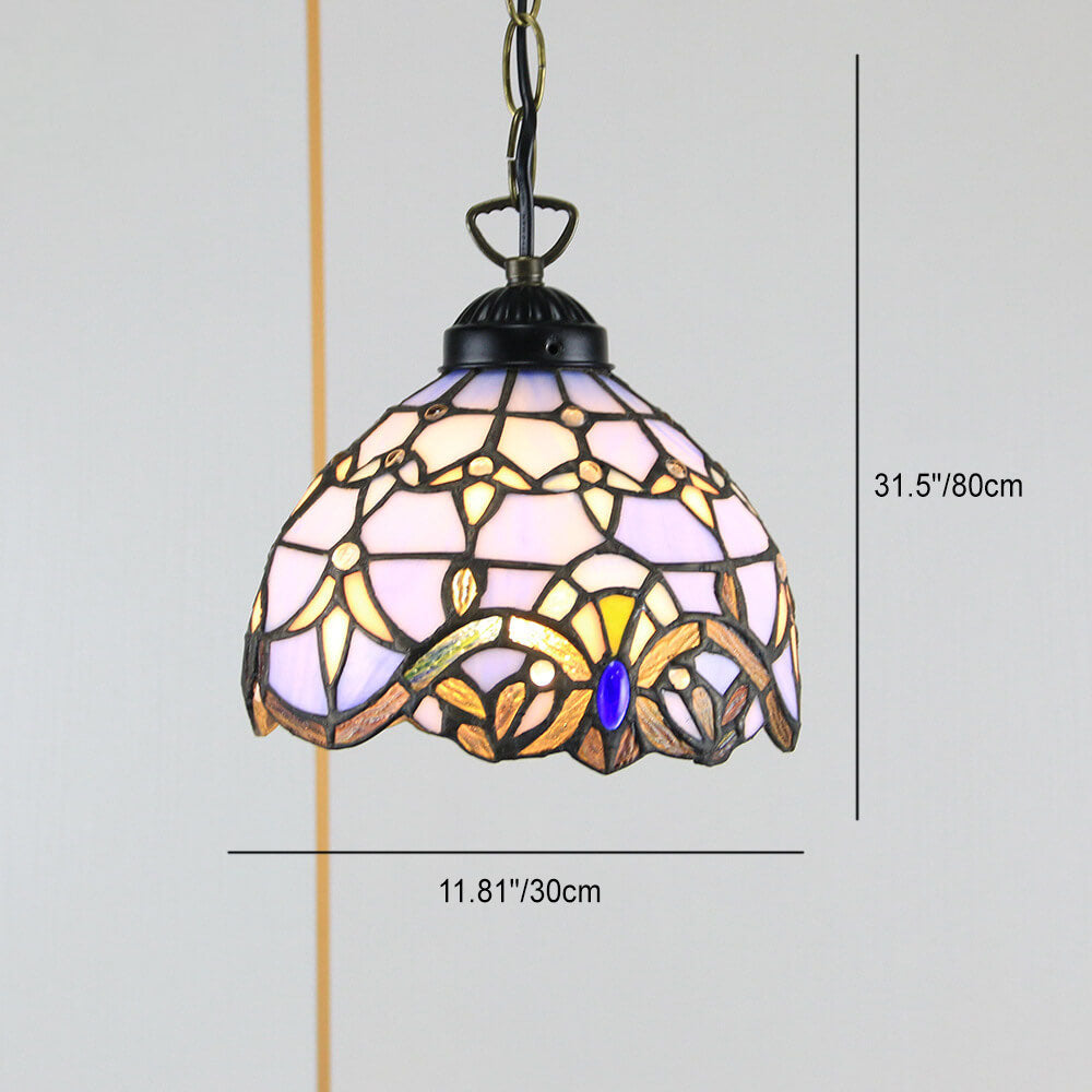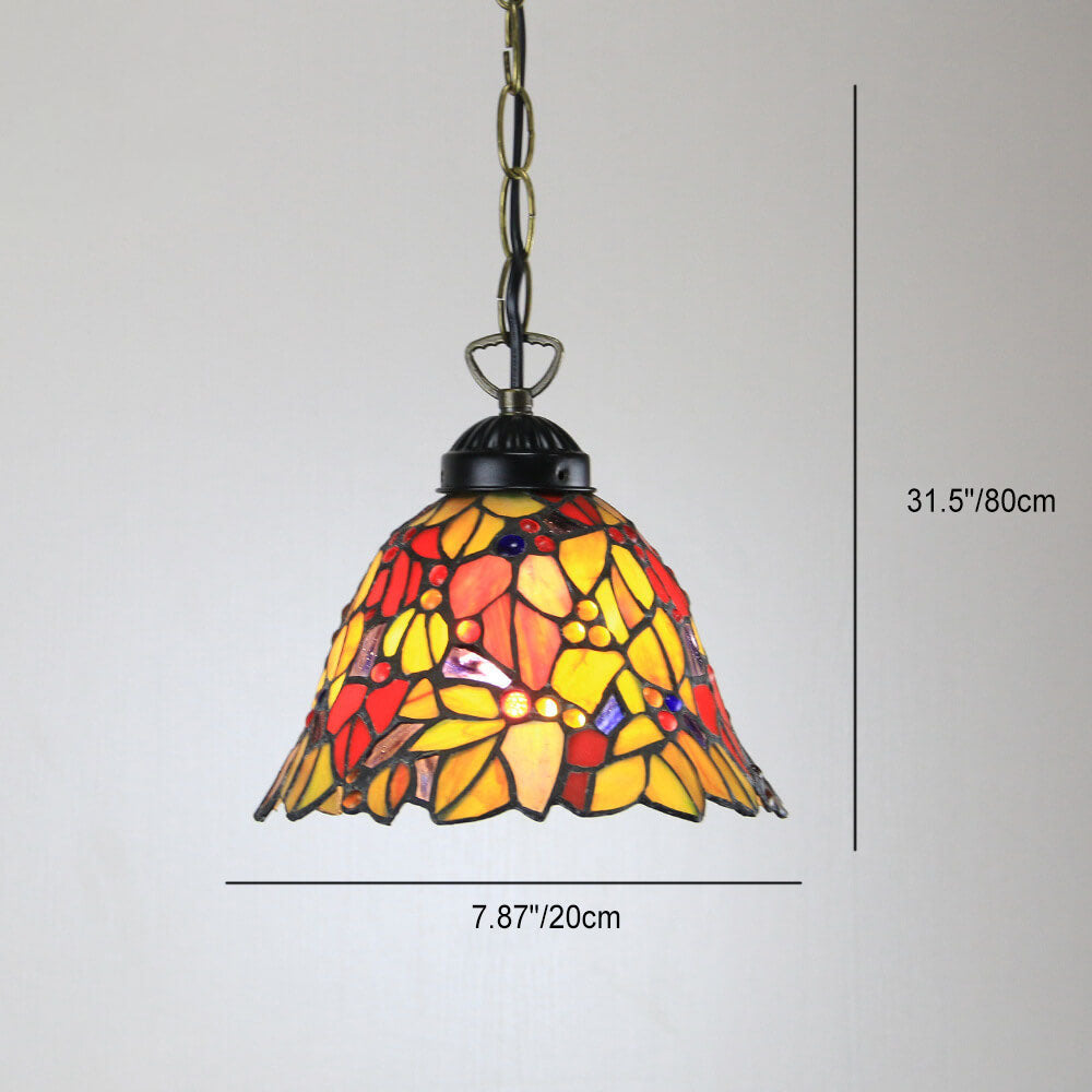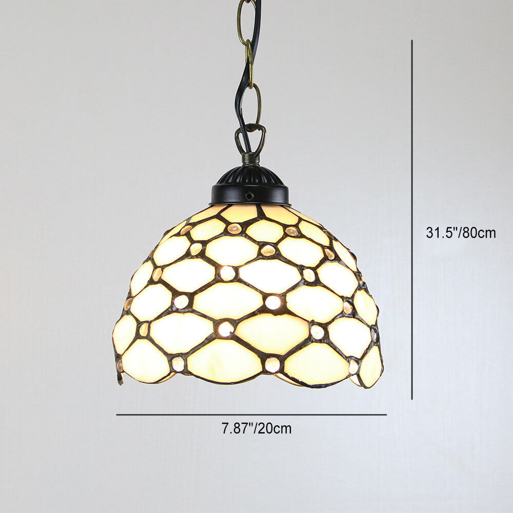 Tiffany Rustic Rose Beads Stained Glass 1-Light Pendant Light