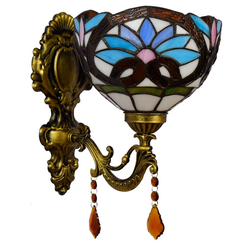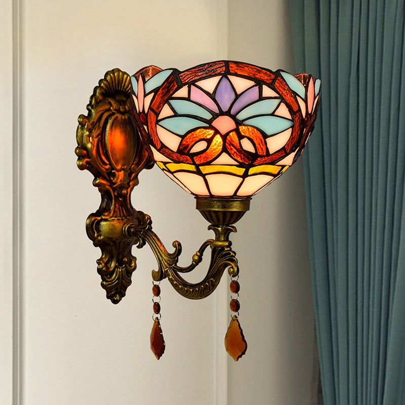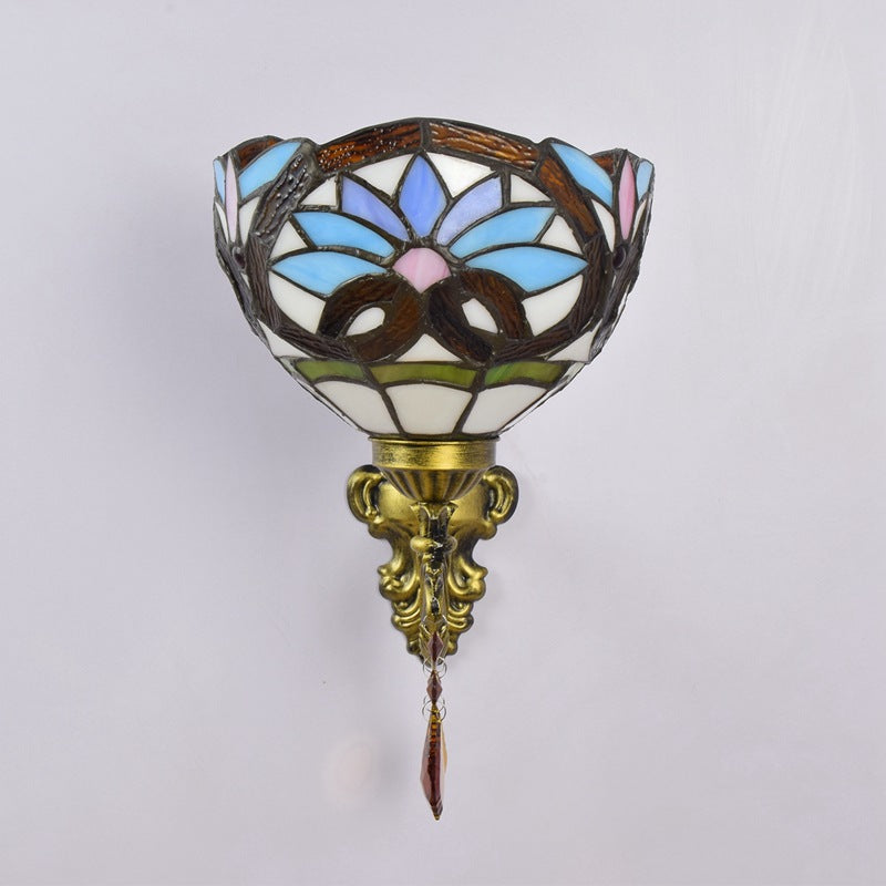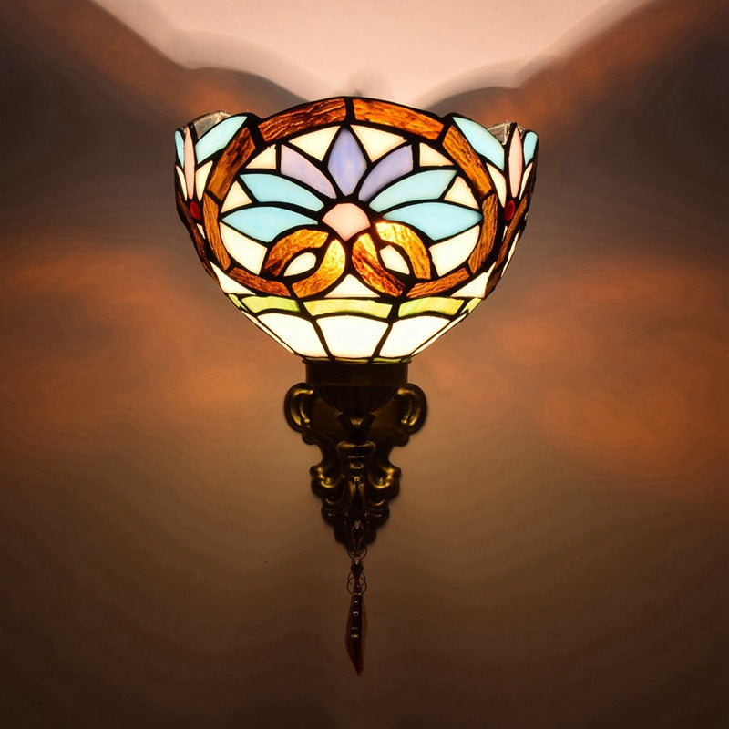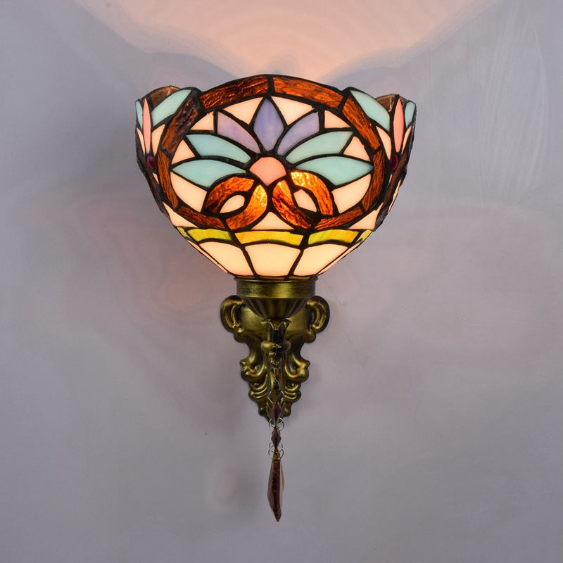 Tiffany Vintage Baroque Stained Glass Bowl 1-Light Wall Sconce Lamp