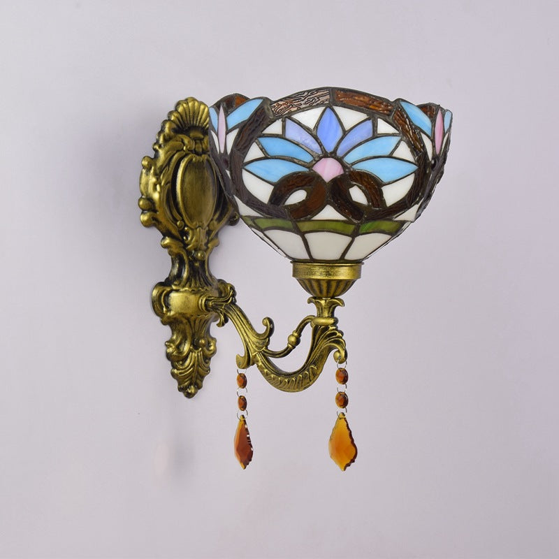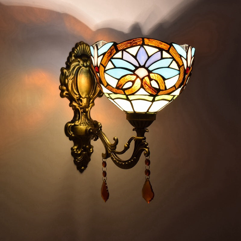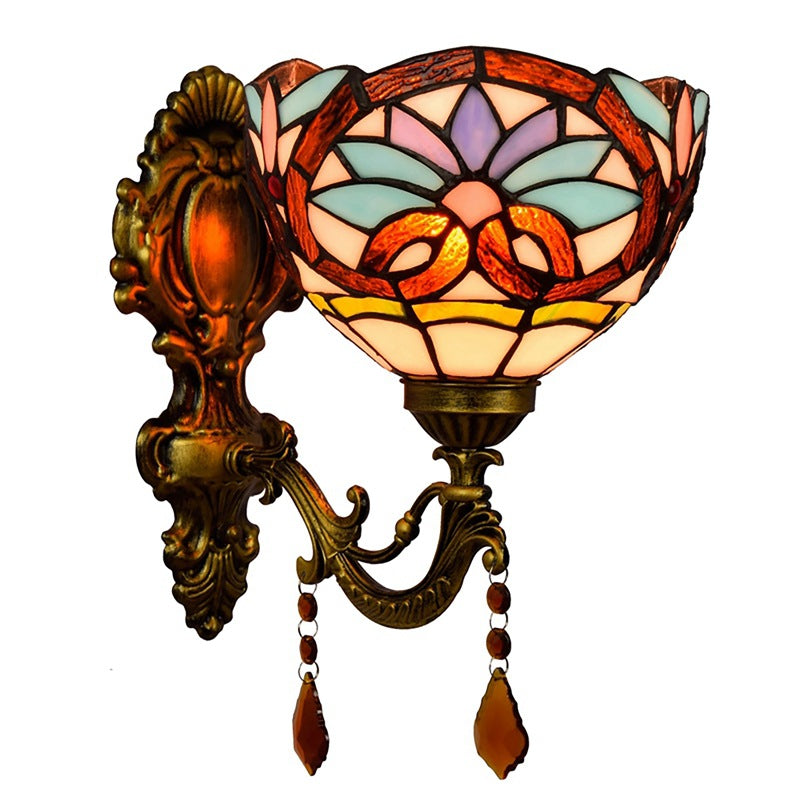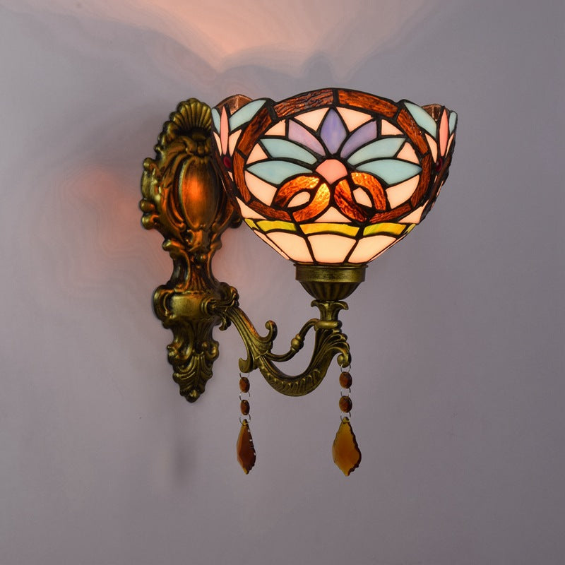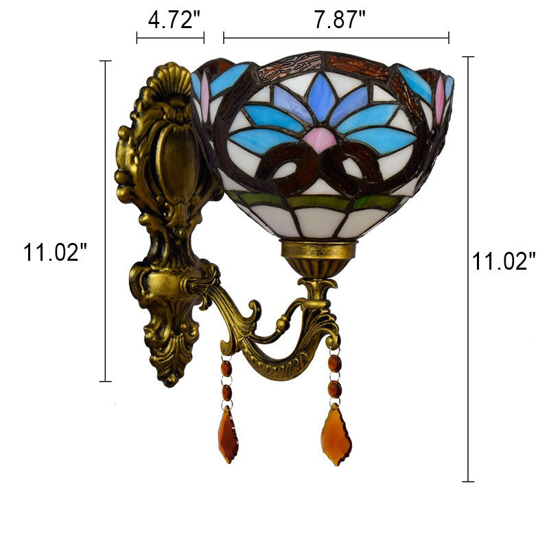 Tiffany Vintage Baroque Stained Glass Bowl 1-Light Wall Sconce Lamp