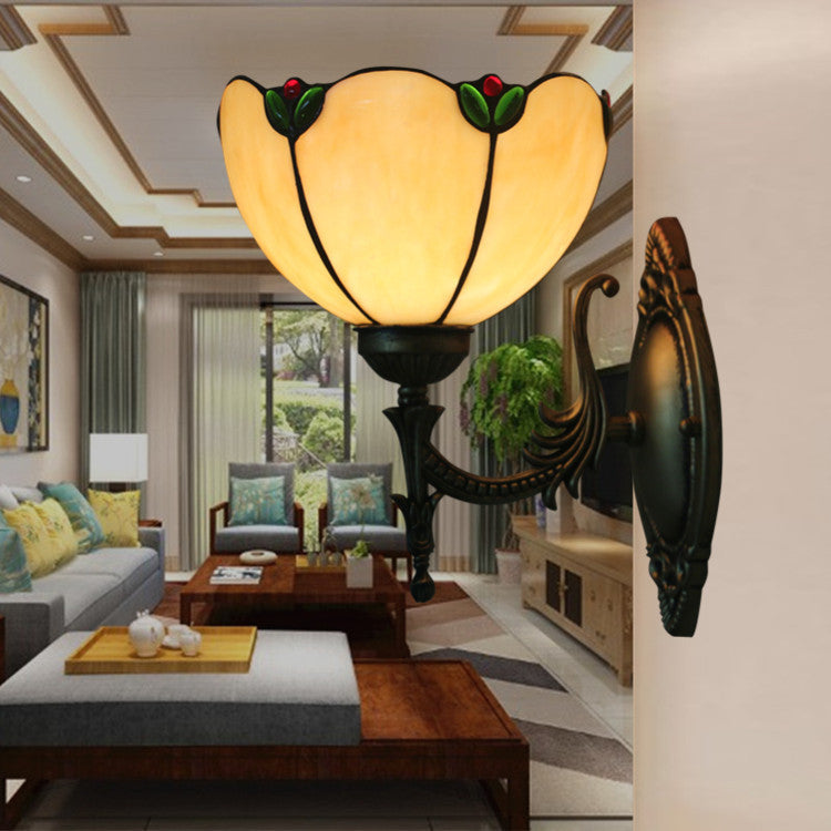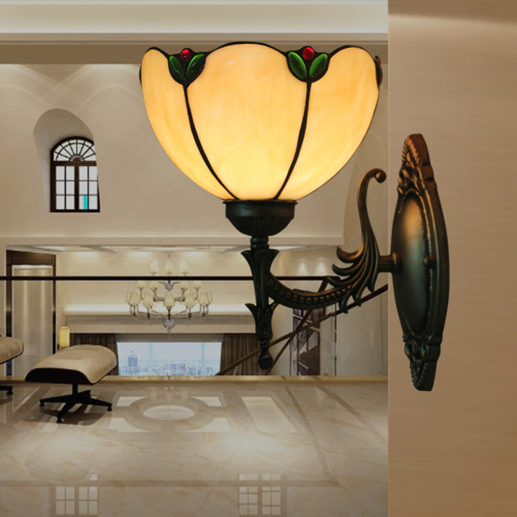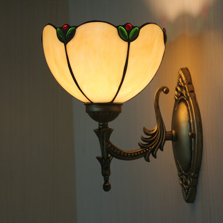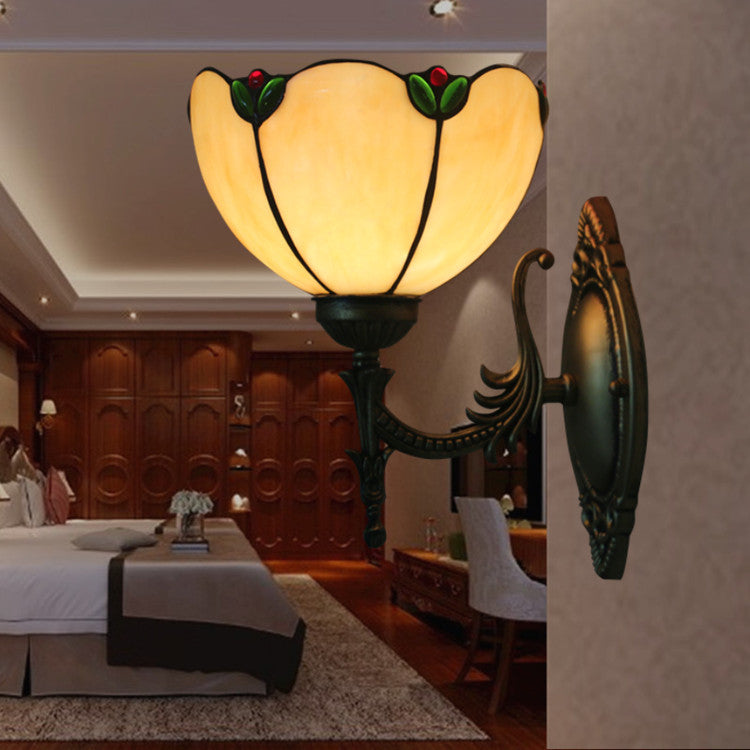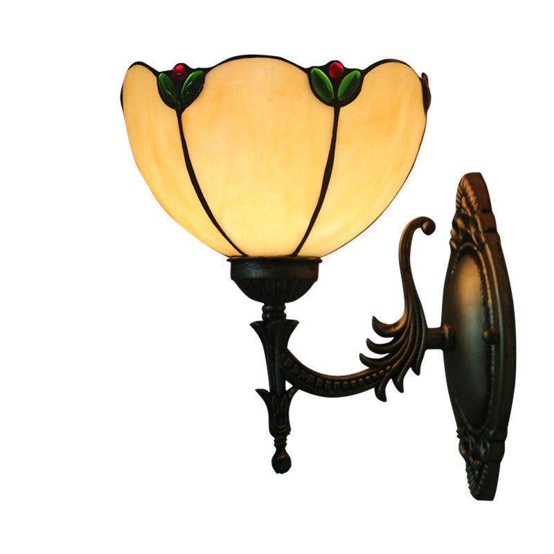 Tiffany Vintage Milk Yellow Glass Gem Bowl 1-Light Wall Sconce Lamp