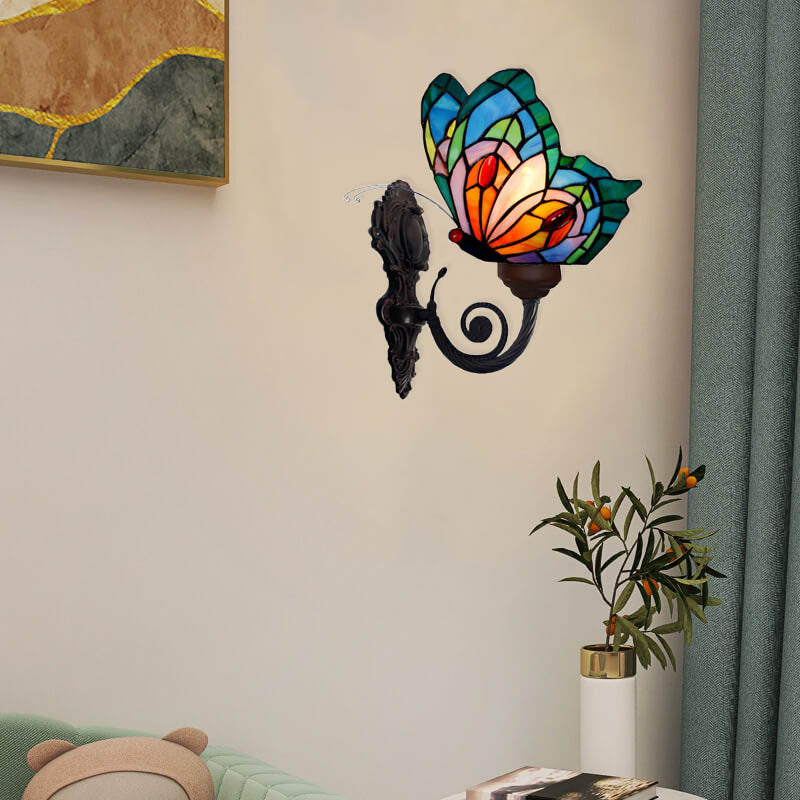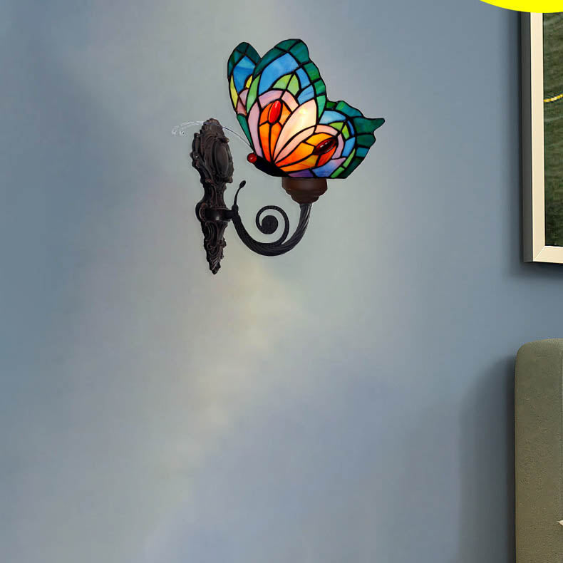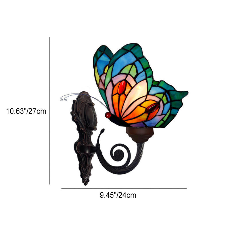 Tiffany Vintage Stained Glass Butterfly Shade 1-Light Wall Sconce Lamp