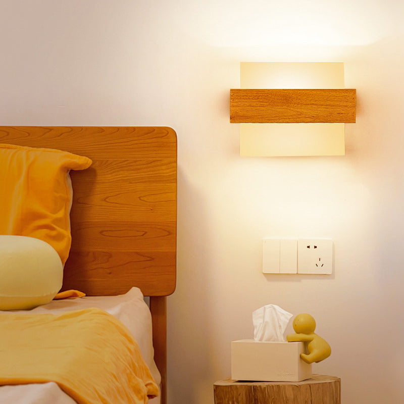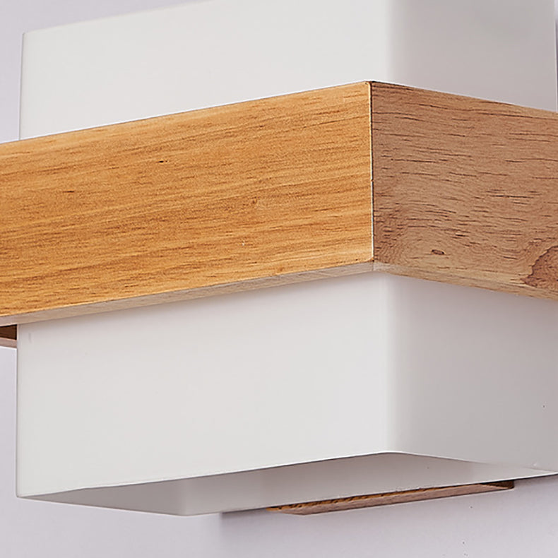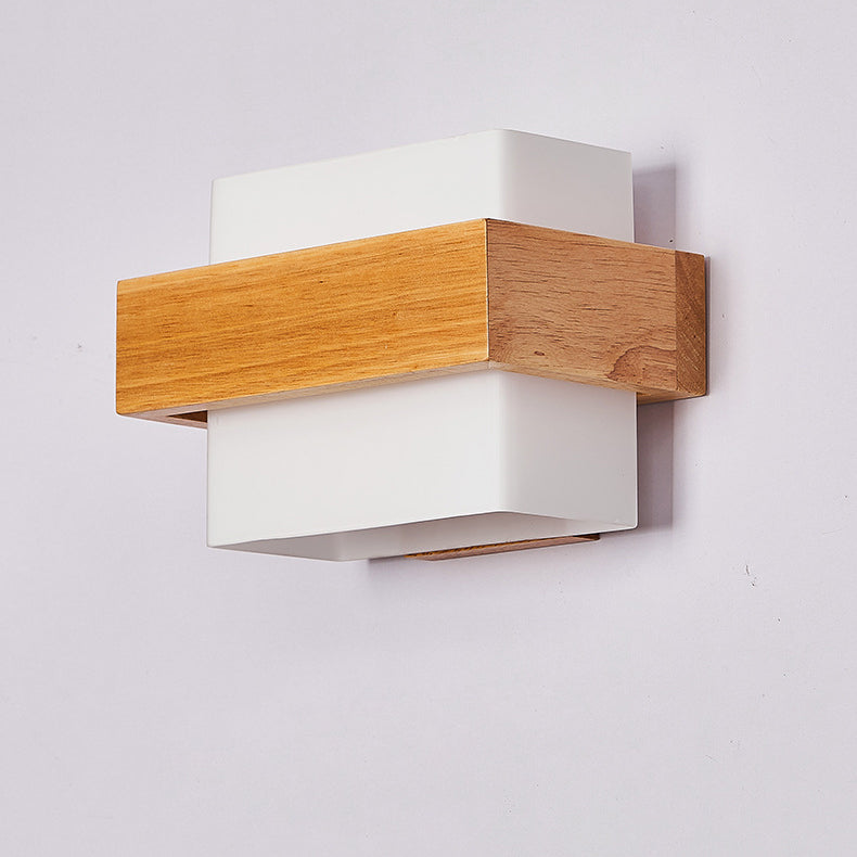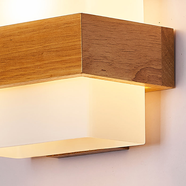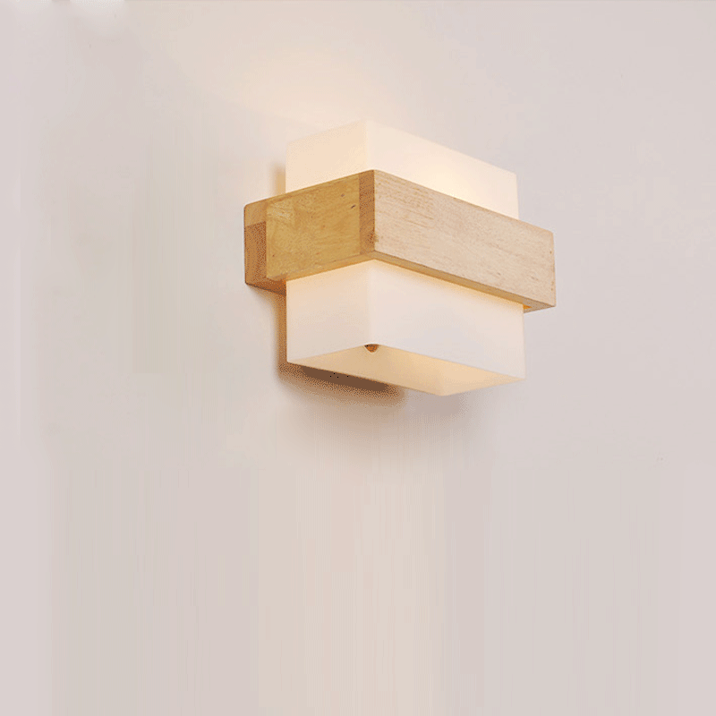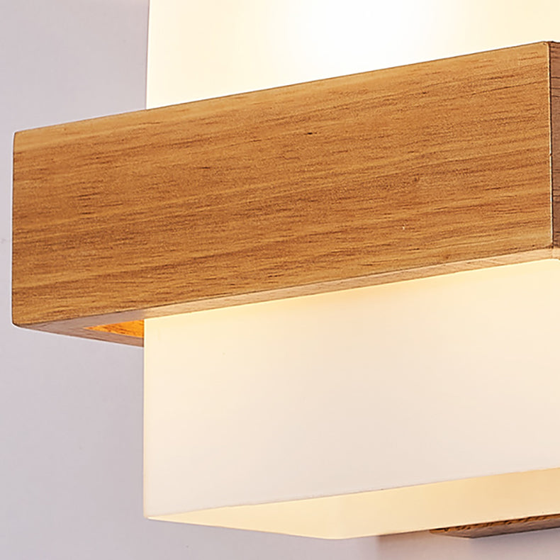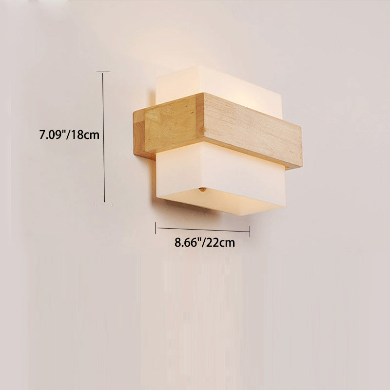 Traditional Farmhouse Wood Glass Cubic 1-Light Wall Sconce Lamp For Bedside