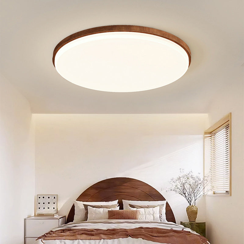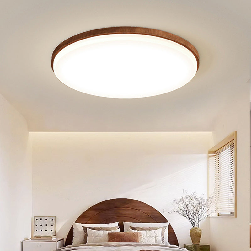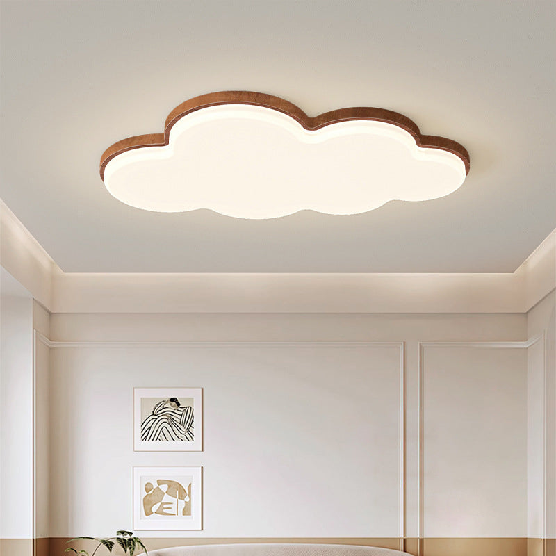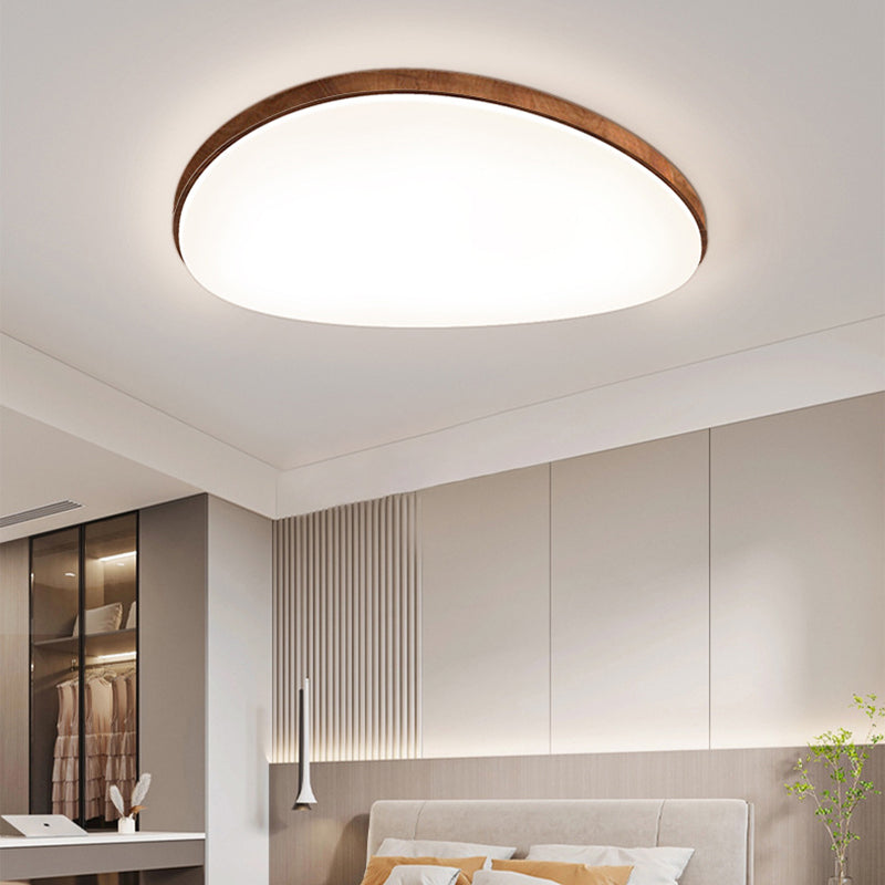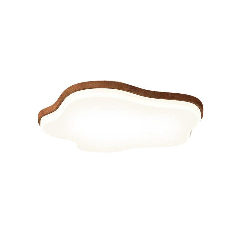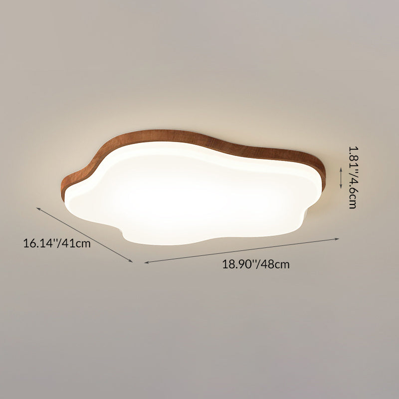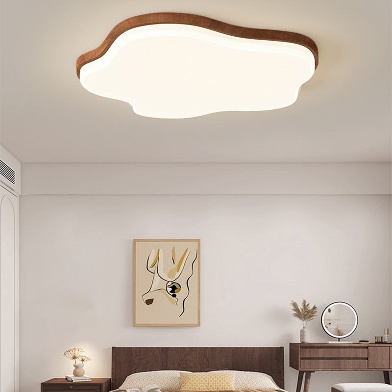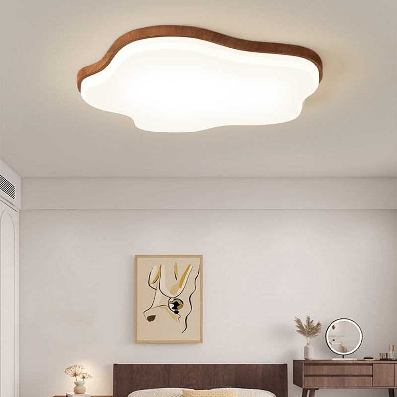 This traditional Chinese LED flush mount ceiling light features a unique blend of cloud-like curves, round, square, and triangle shapes in a walnut and white finish. With full-spectrum illumination, low blue light, no flicker, and high color accuracy, it's ideal for bedrooms or studies prioritizing eye comfort and elegant design.