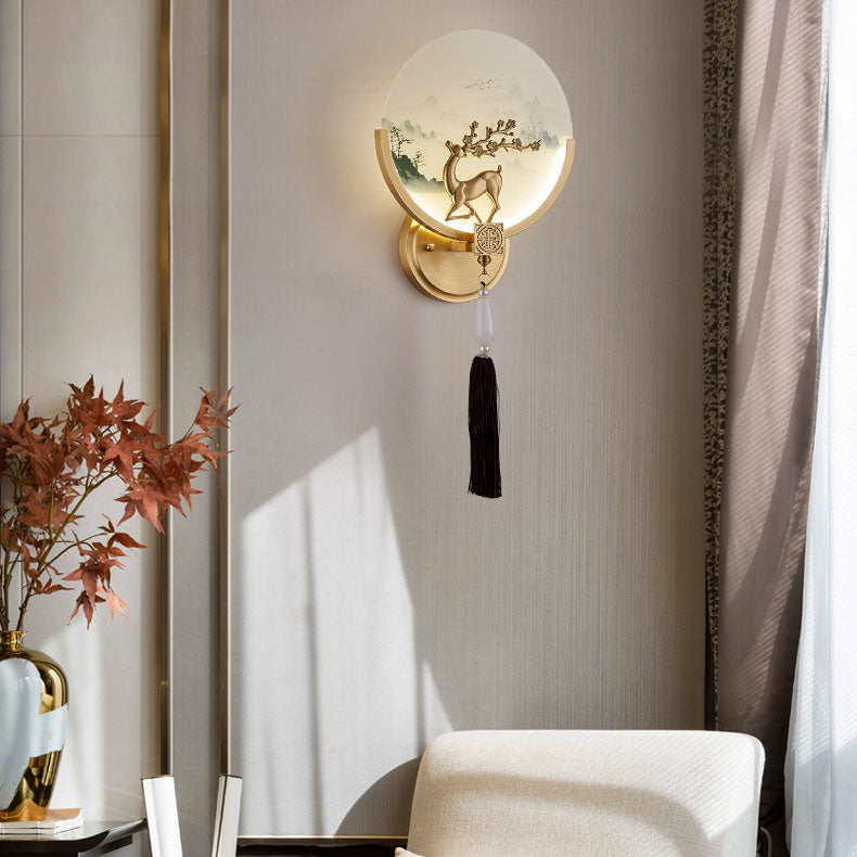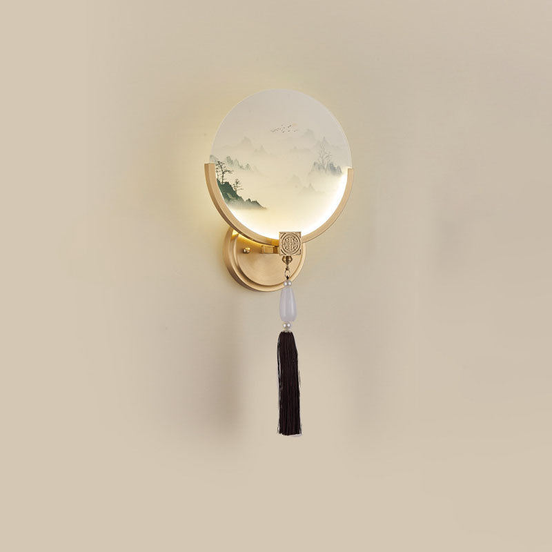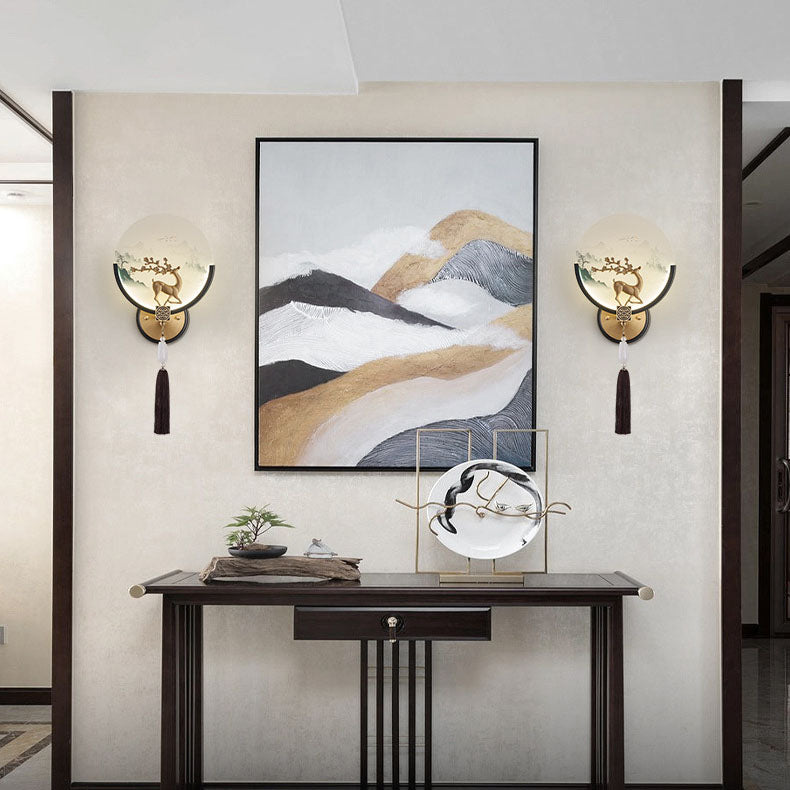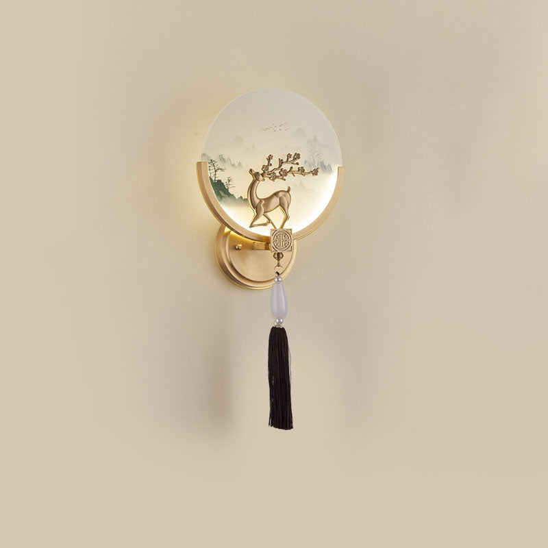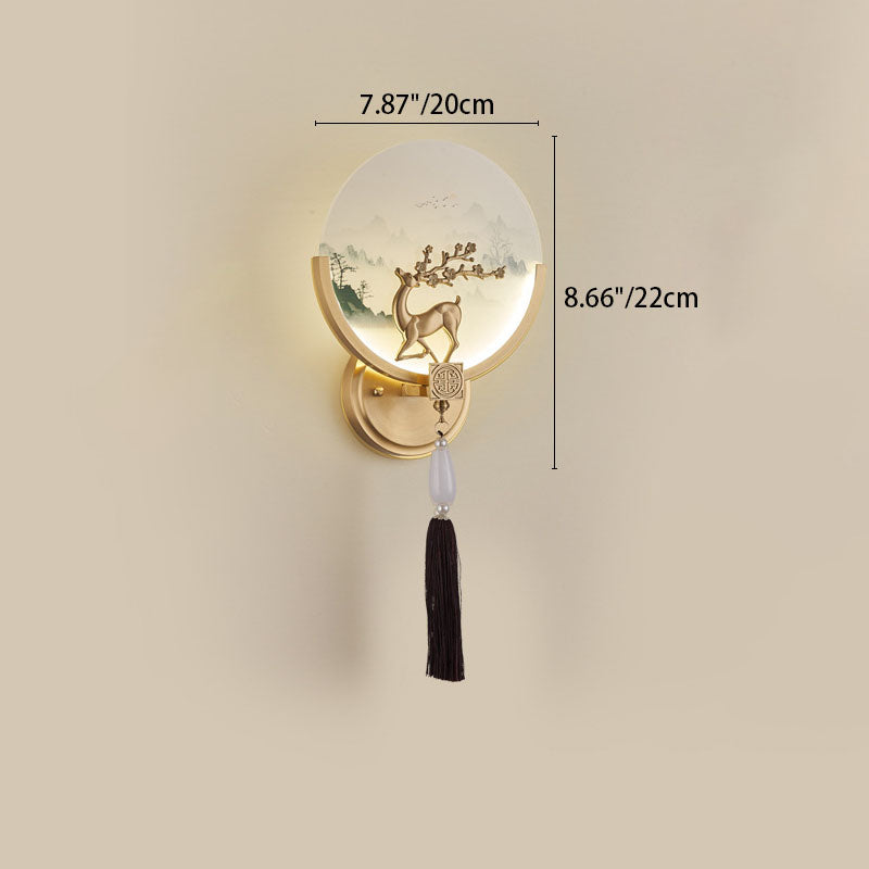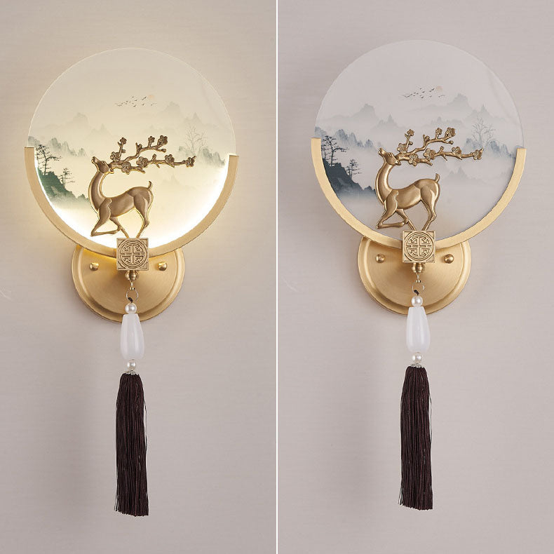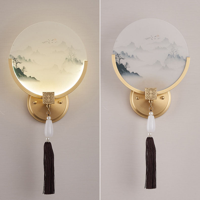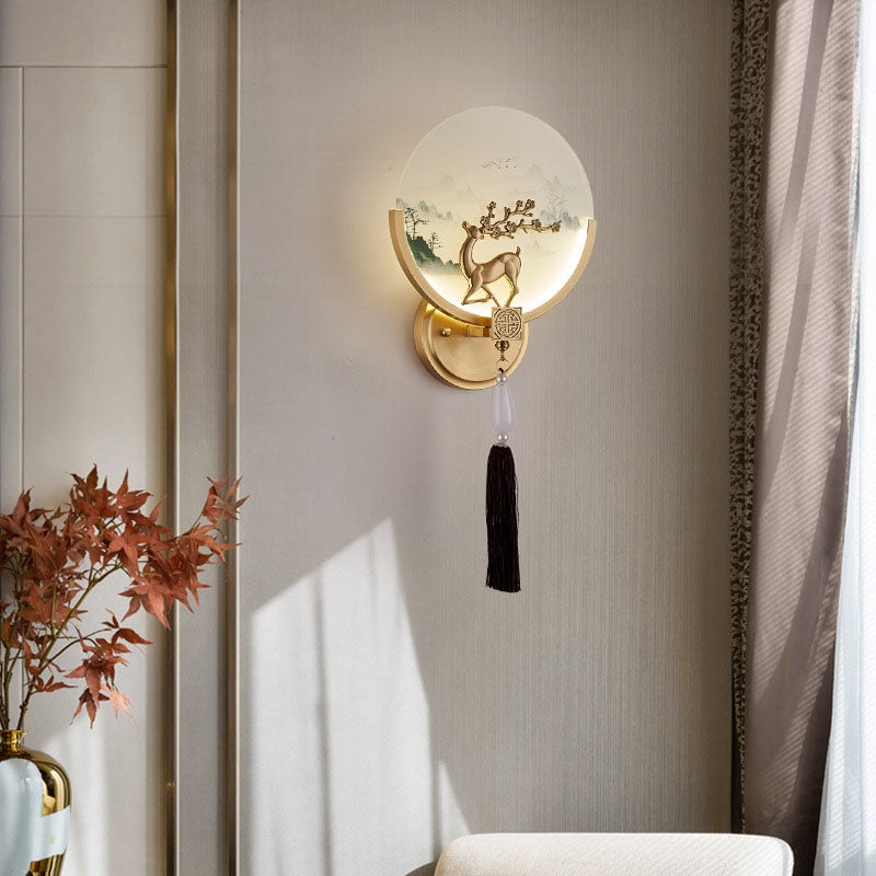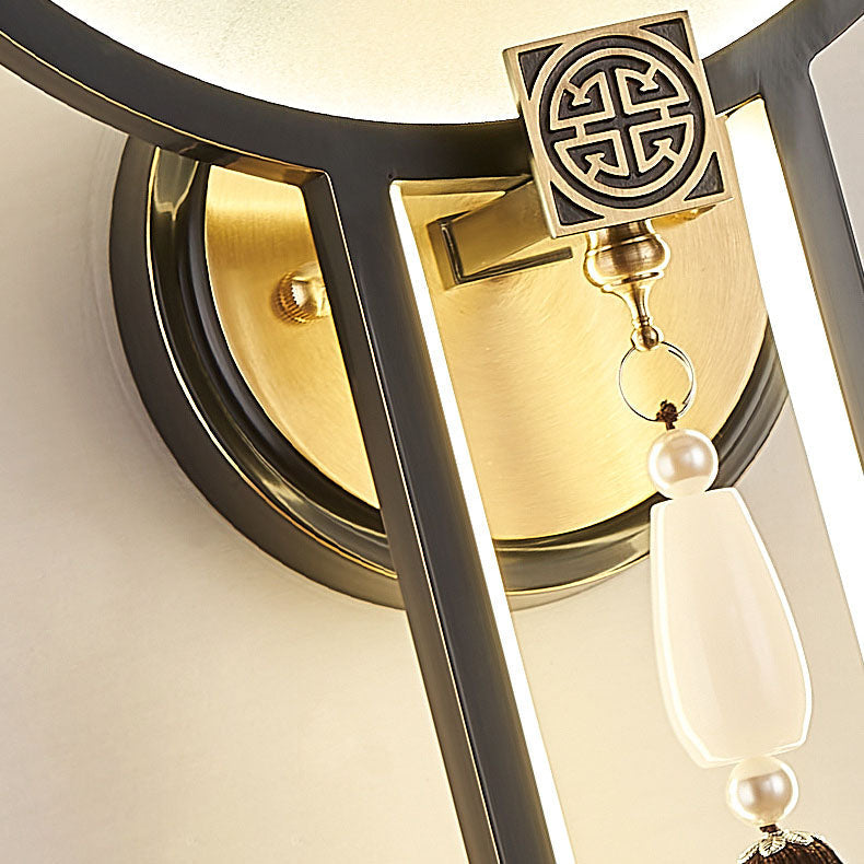 Traditional Chinese All-Copper Glass LED Wall Sconce Lamp For Living Room