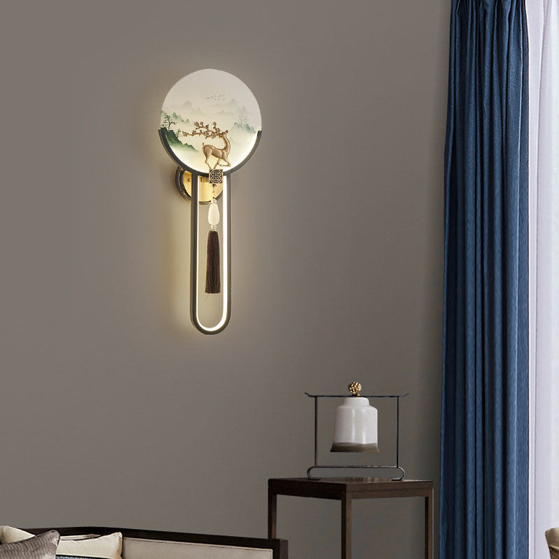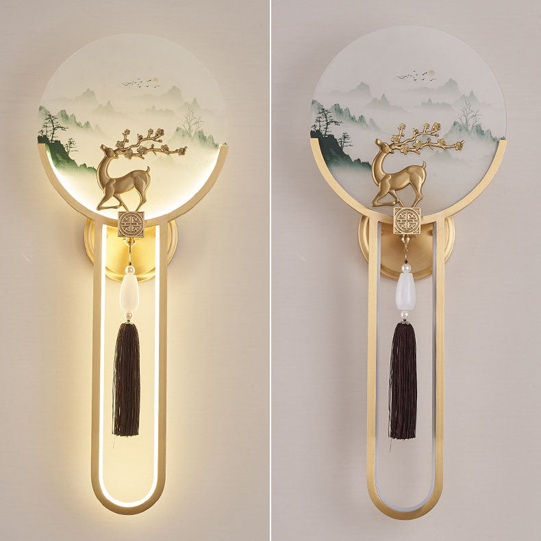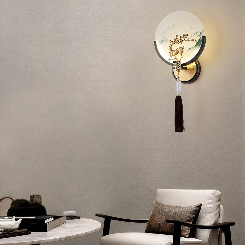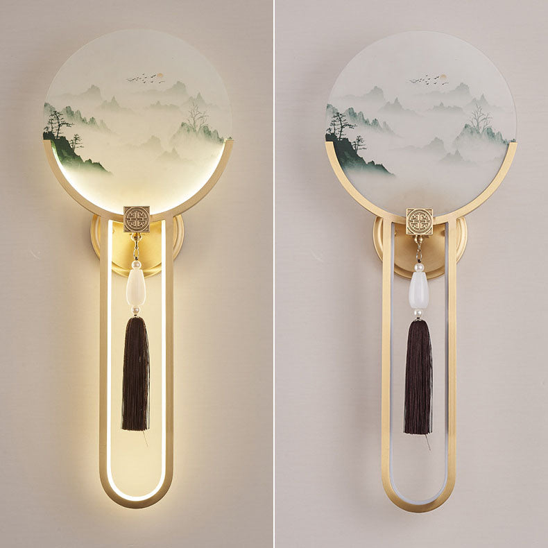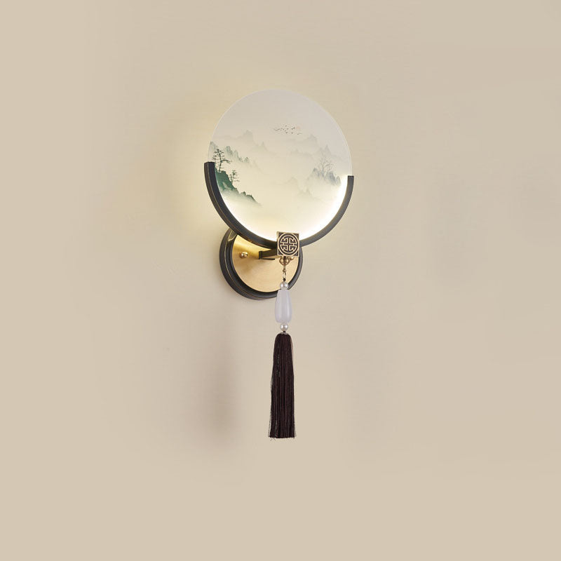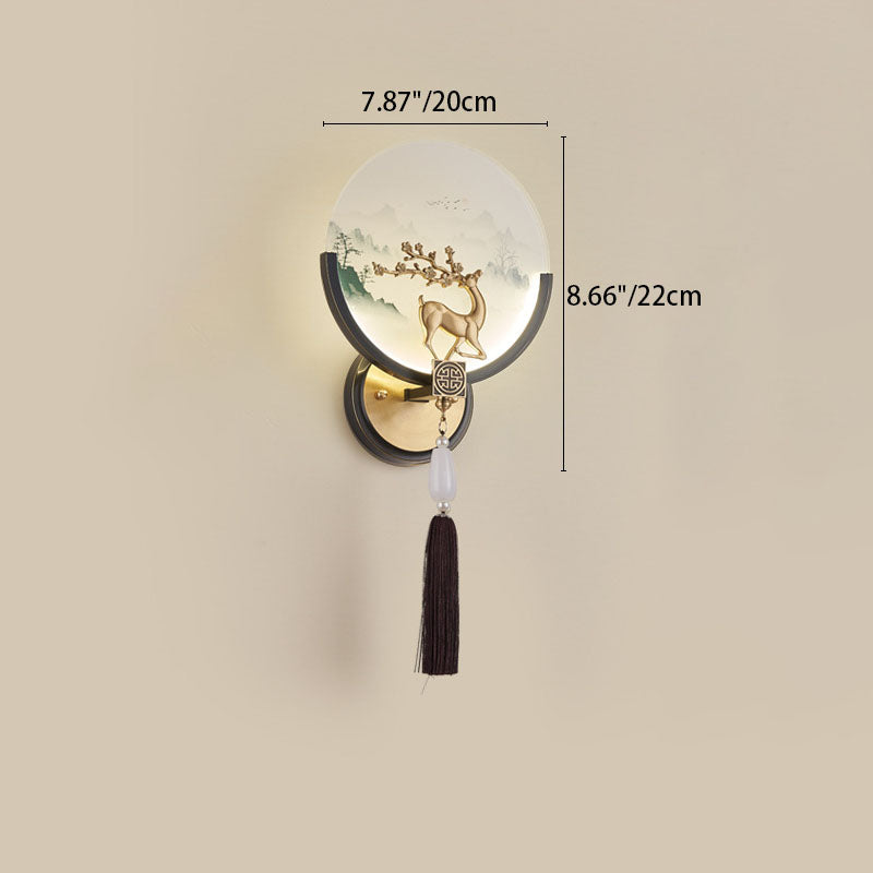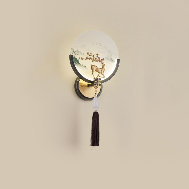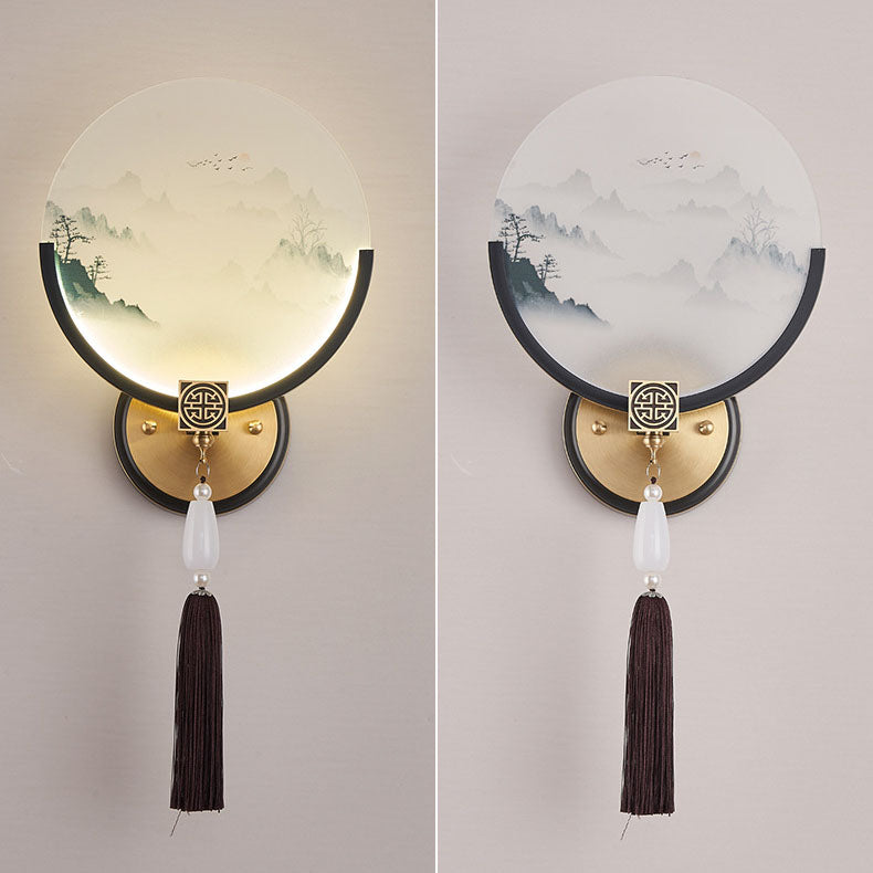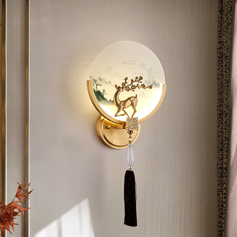 Traditional Chinese All-Copper Glass LED Wall Sconce Lamp For Living Room