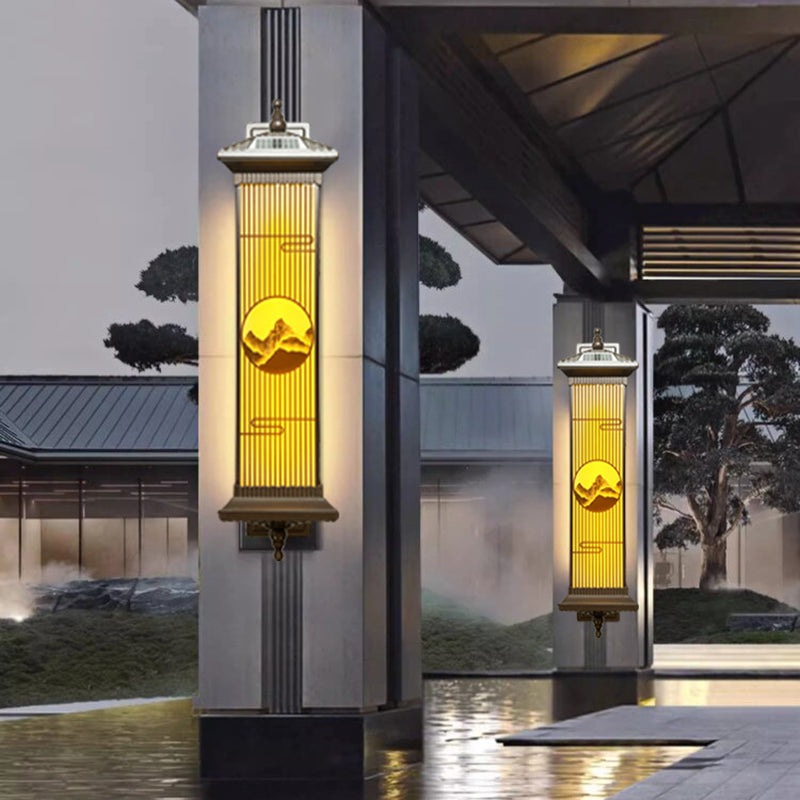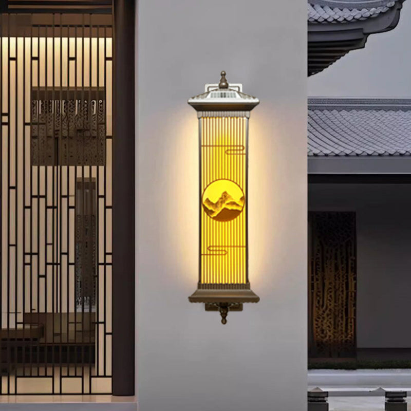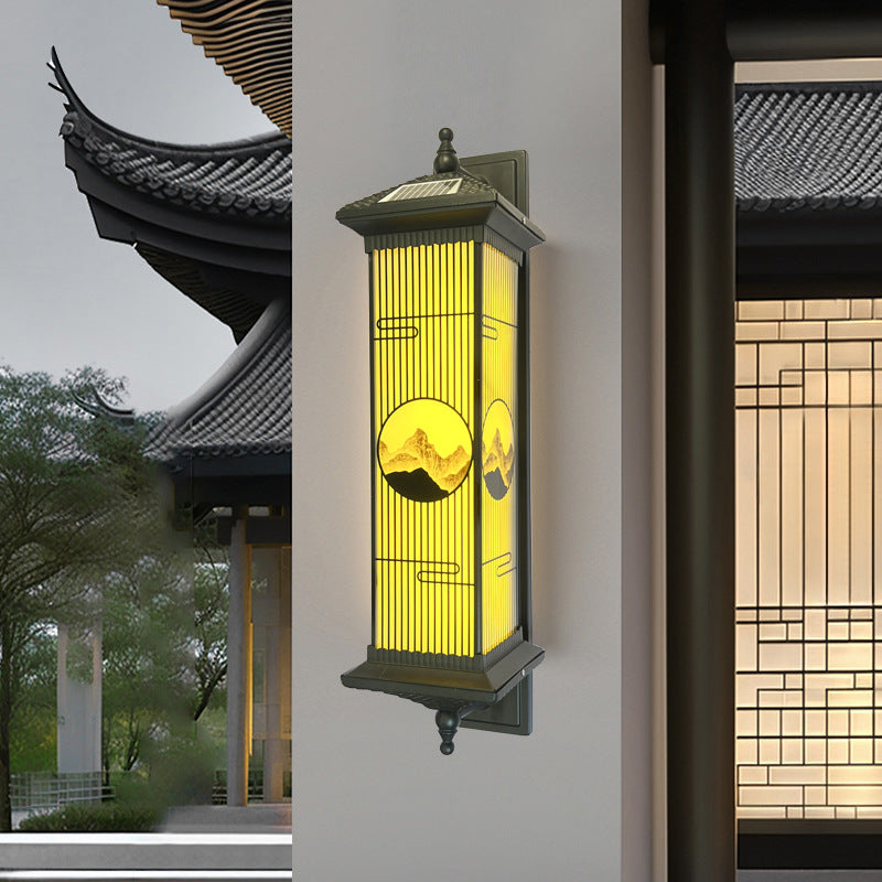 Traditional Chinese Aluminum Glass Rectangular LED Solar Waterproof Outdoor Wall Sconce Lamp For Garden