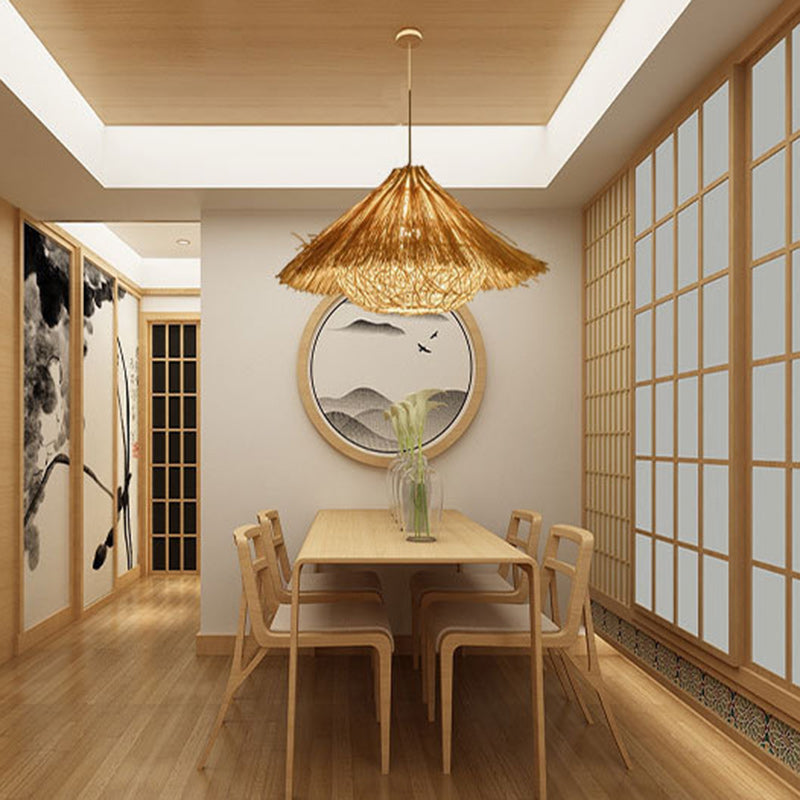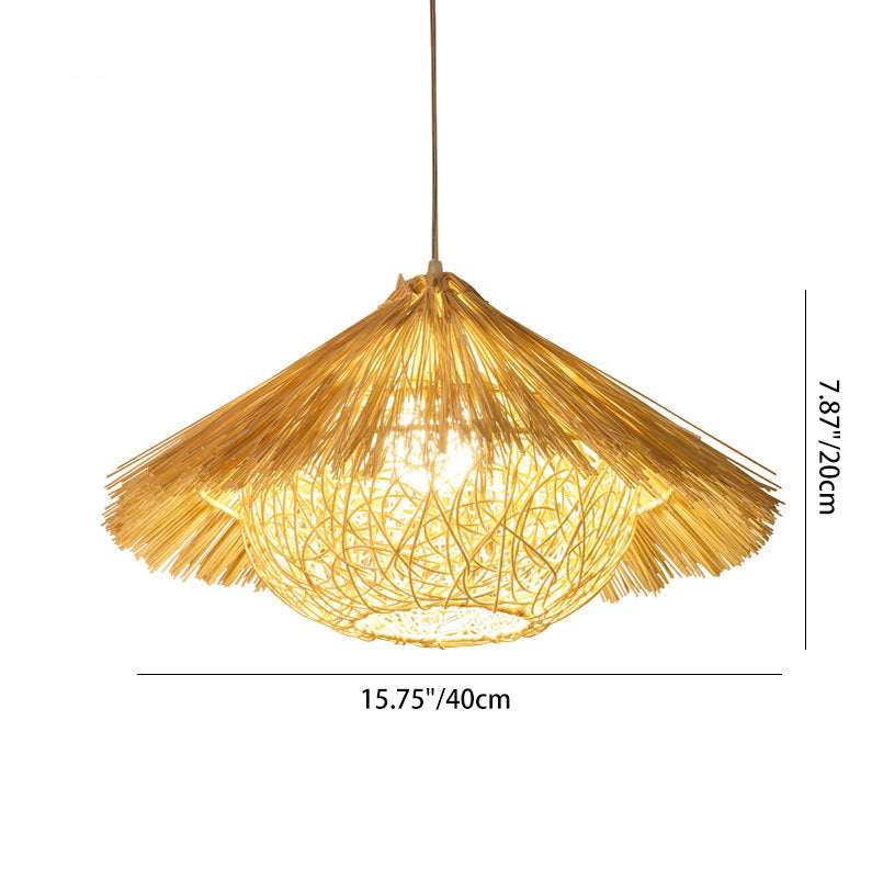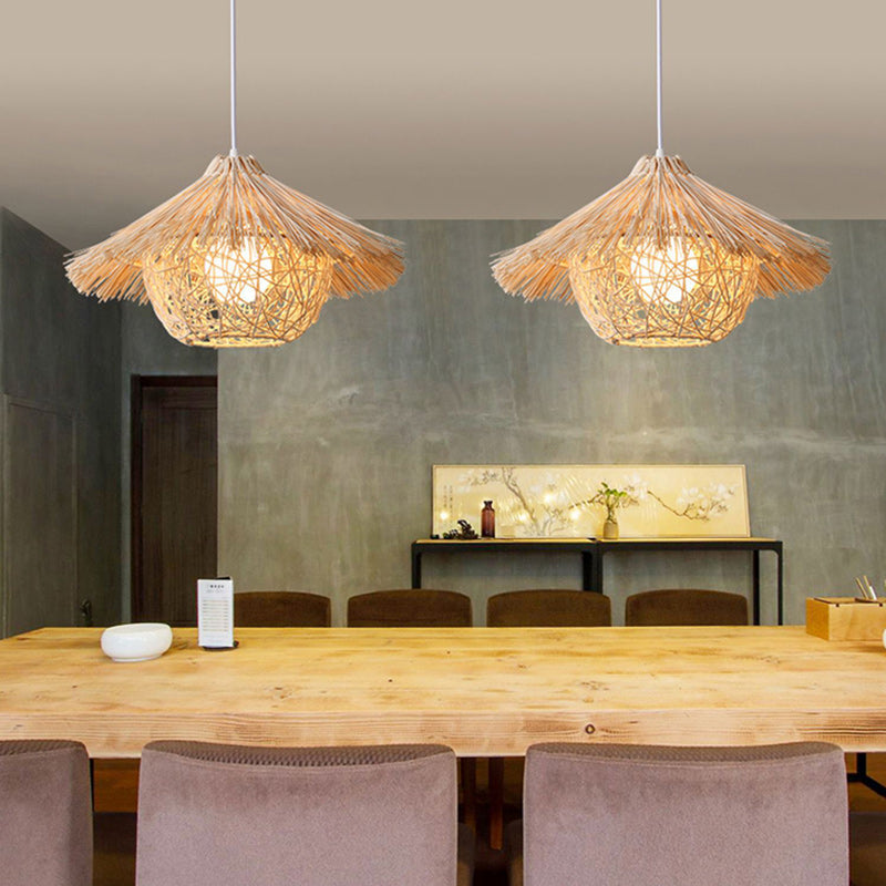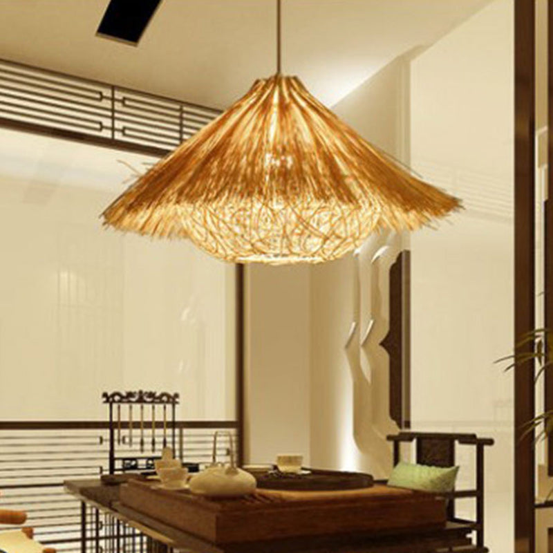 Traditional Chinese Bamboo Cone 1-Light Pendant Light For Dining Room
