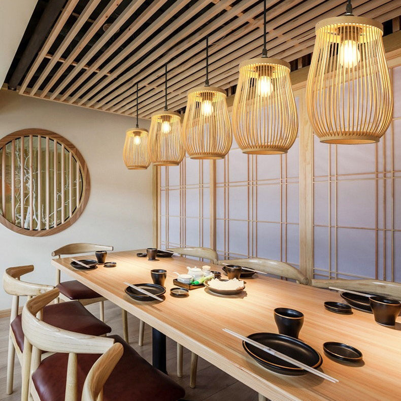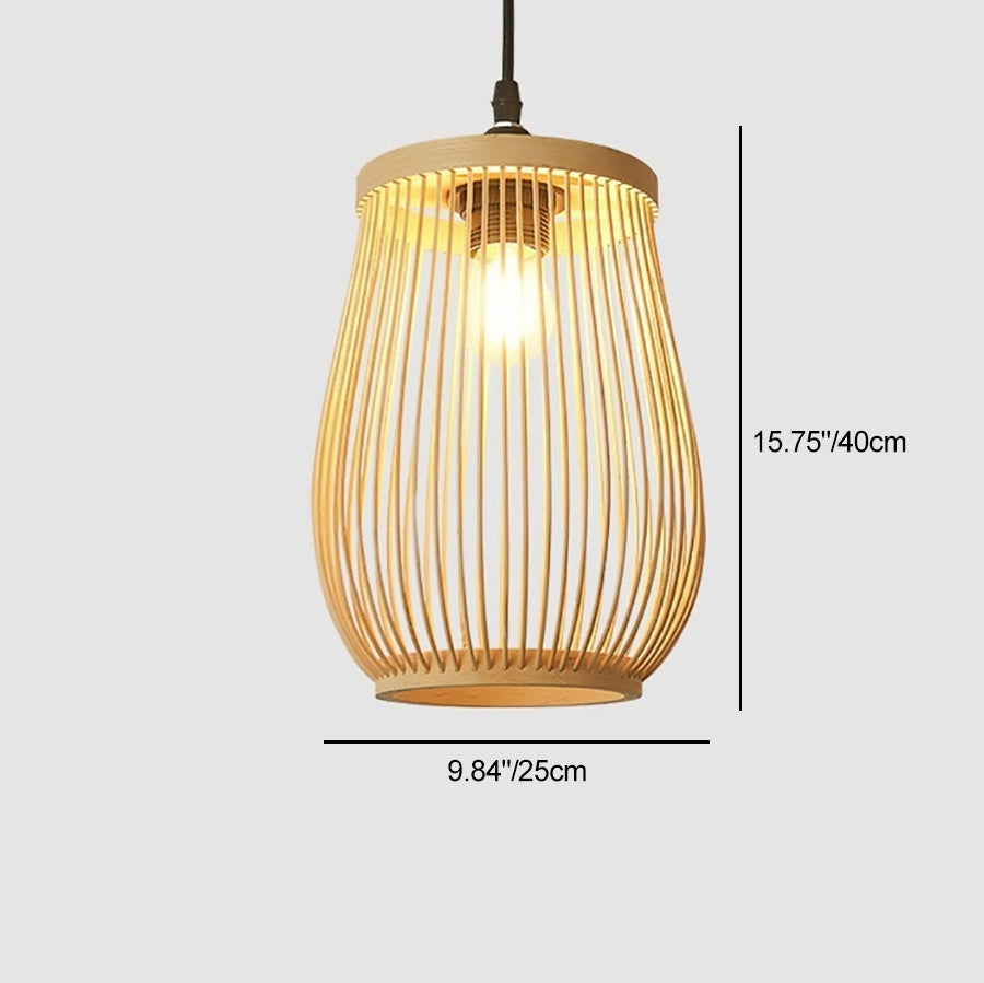 Traditional Chinese Bamboo Cylinder 1-Light Pendant Light For Living Room