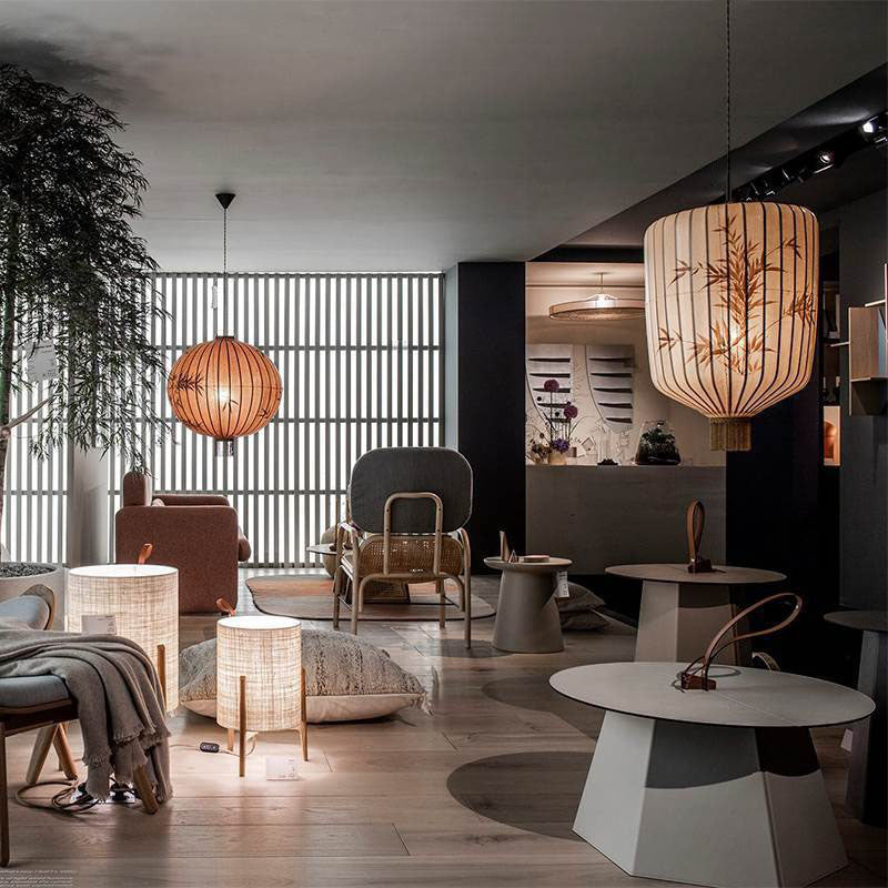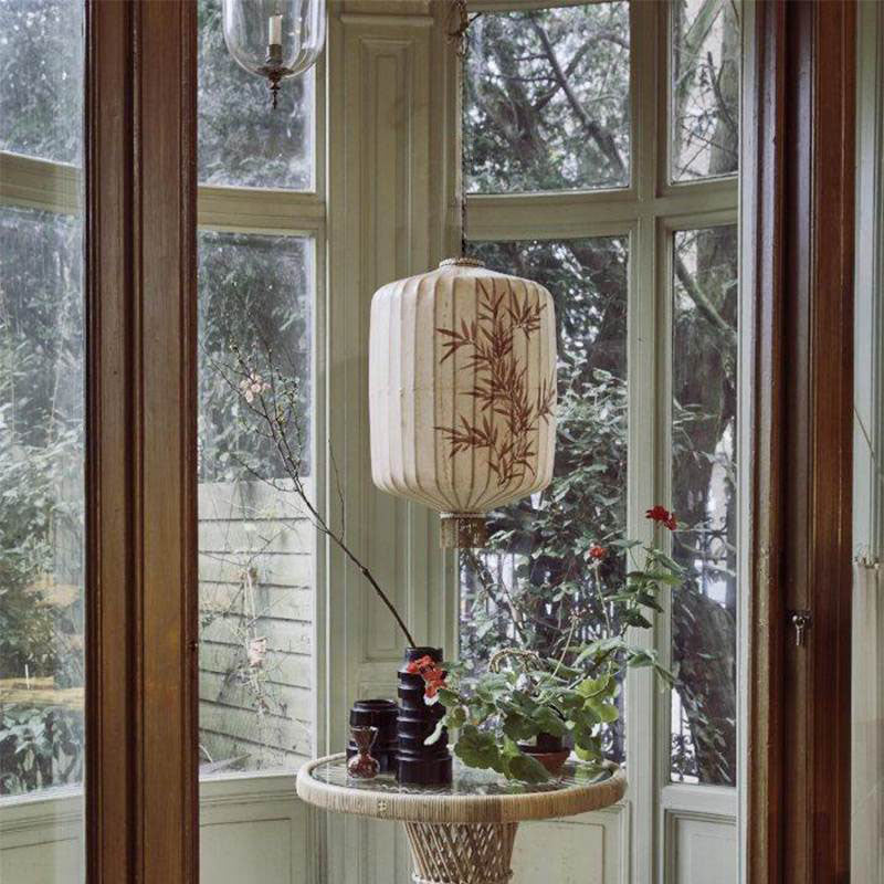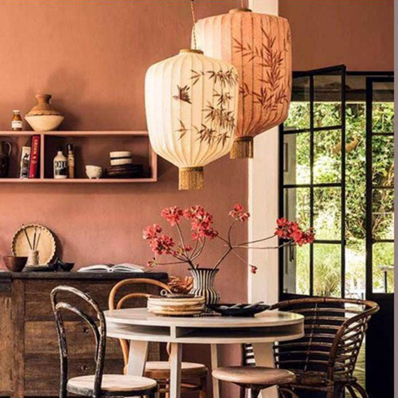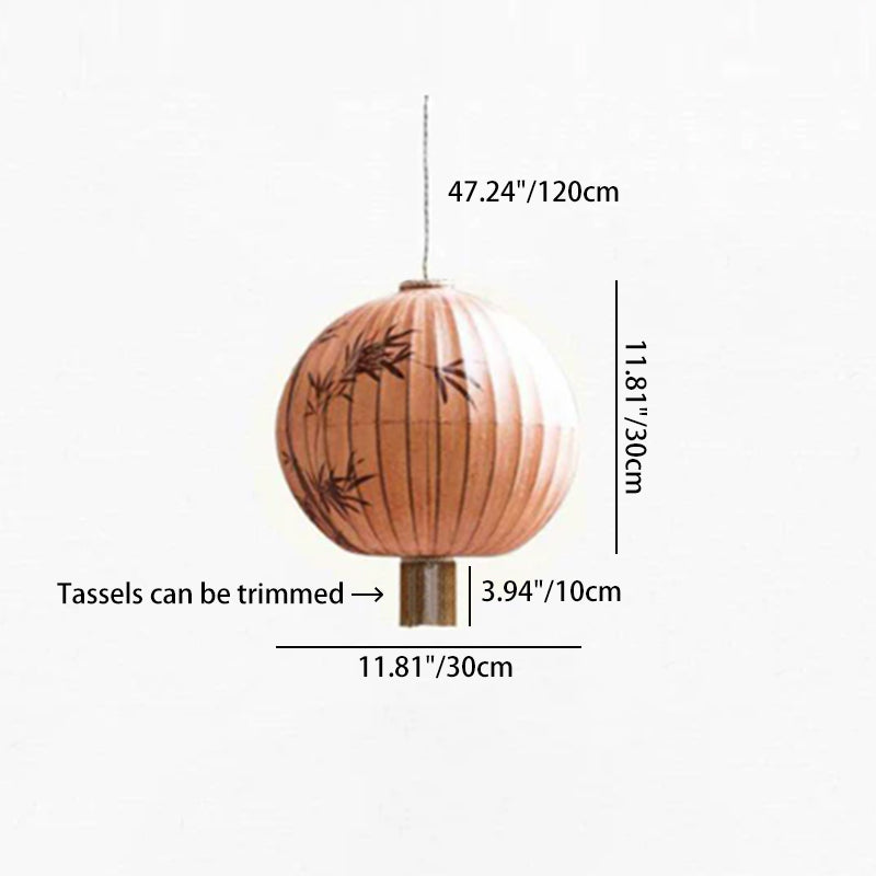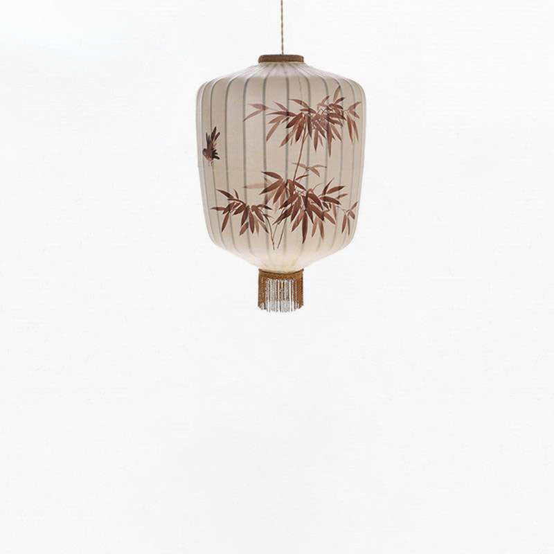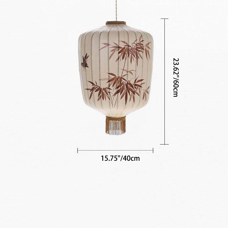 Traditional Chinese Bamboo Pattern Fabric Lantern Shade 1-Light Pendant Light For Dining Room