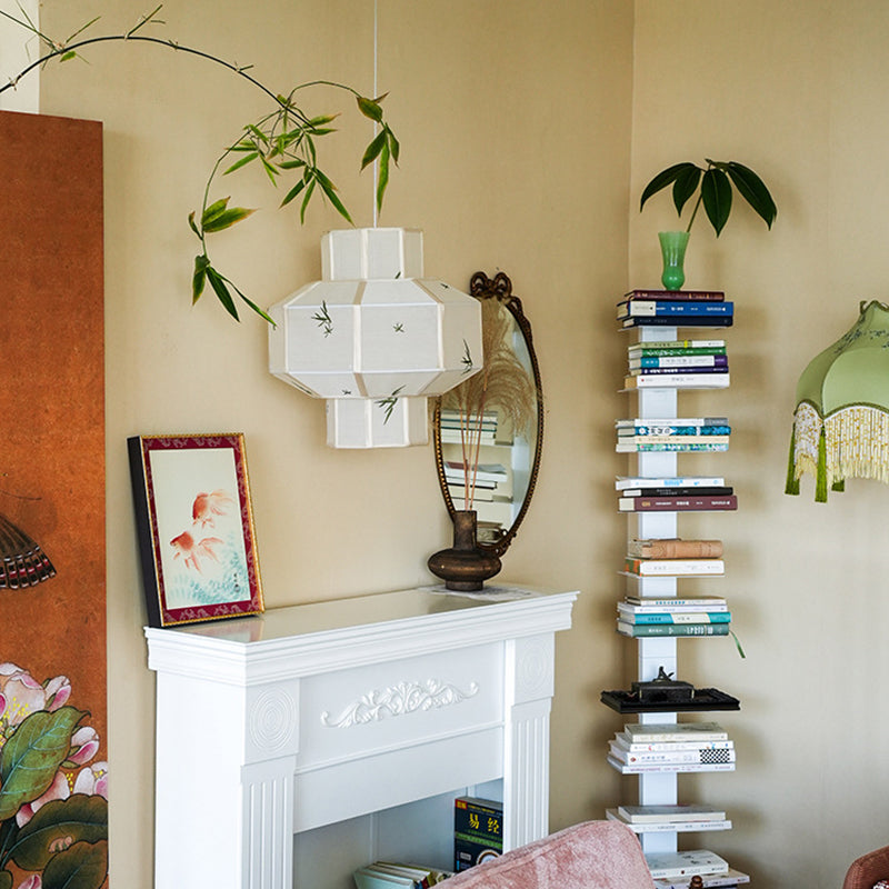 Traditional Chinese Bamboo Pattern Tencel Fabric Hexagonal Palace Lantern Shade 1-Light Pendant Light For Living Room
