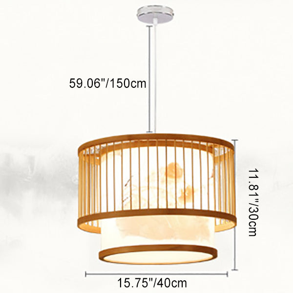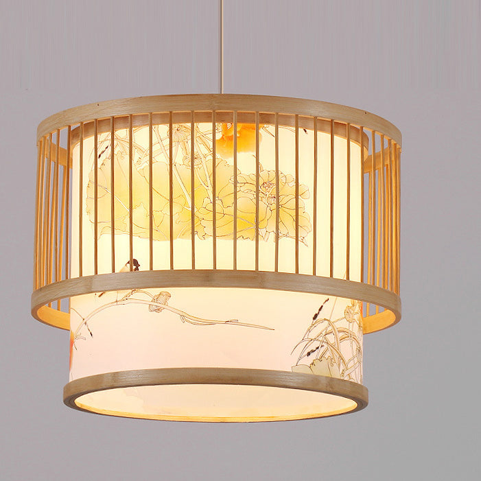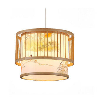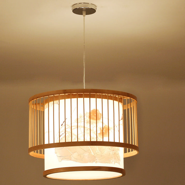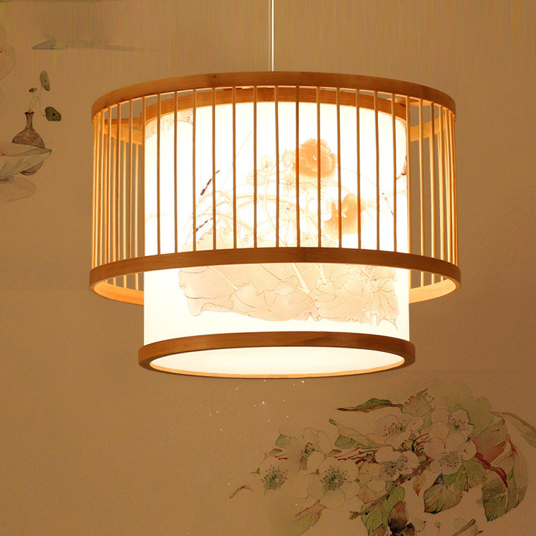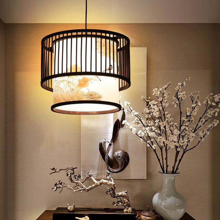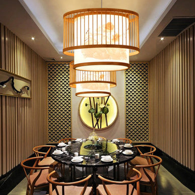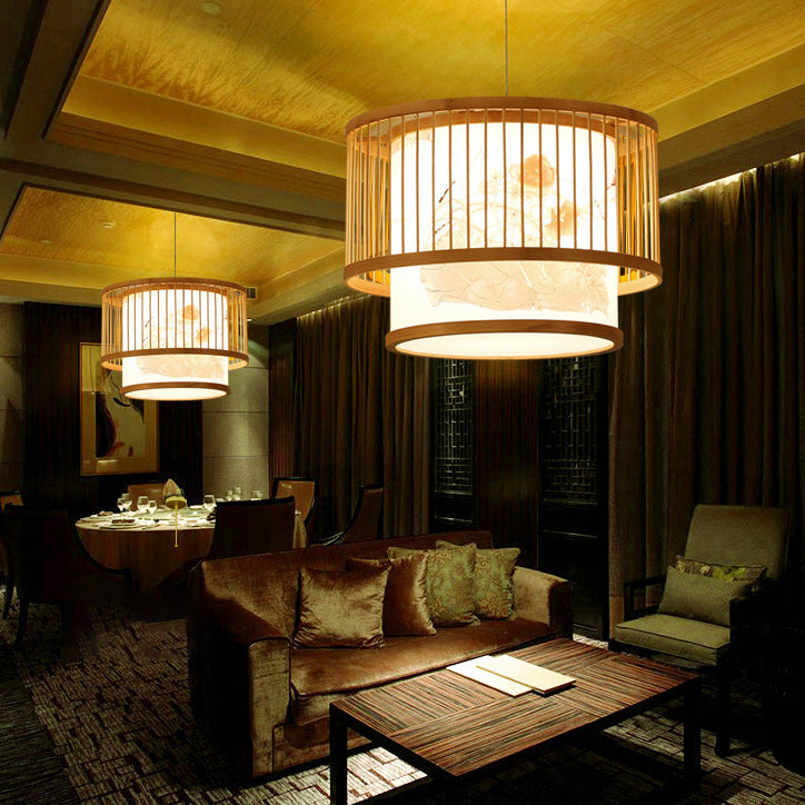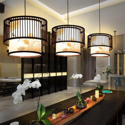 Traditional Chinese Bamboo Weaving Fabric Round 1-Light Pendant Light For Dining Room