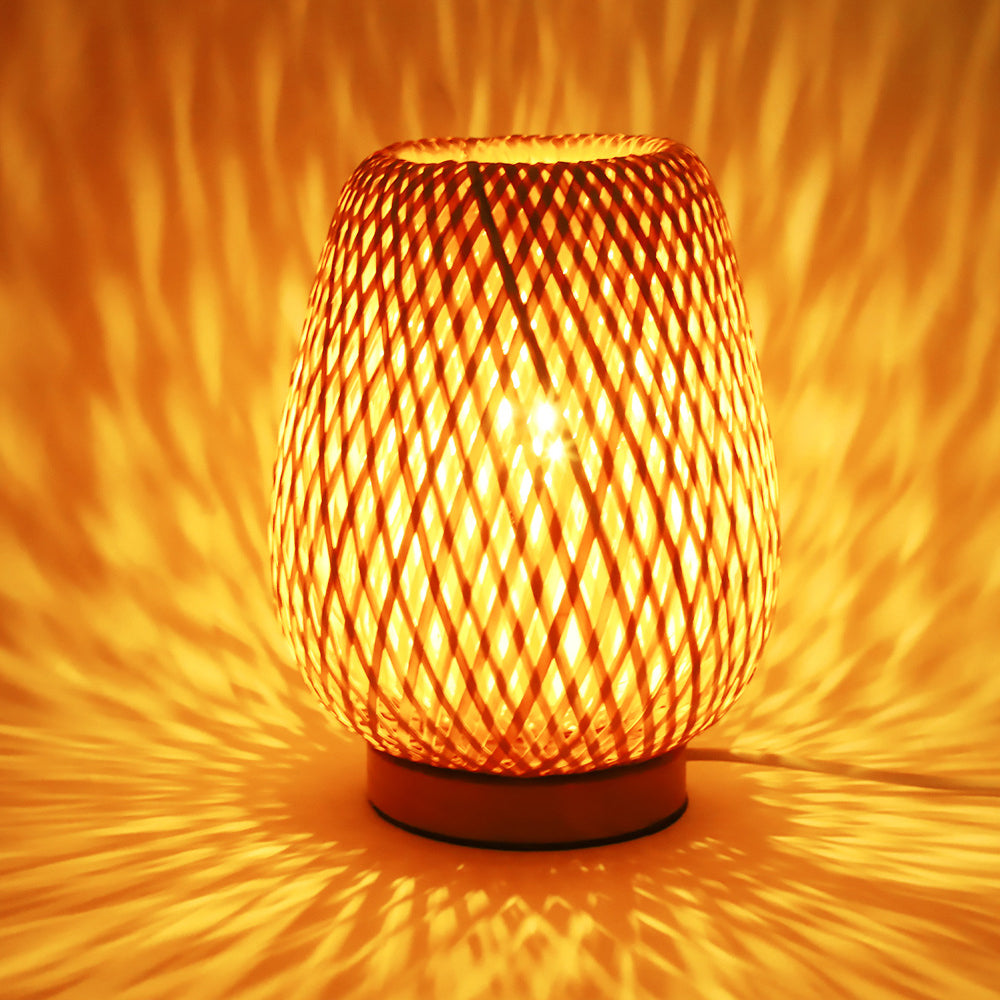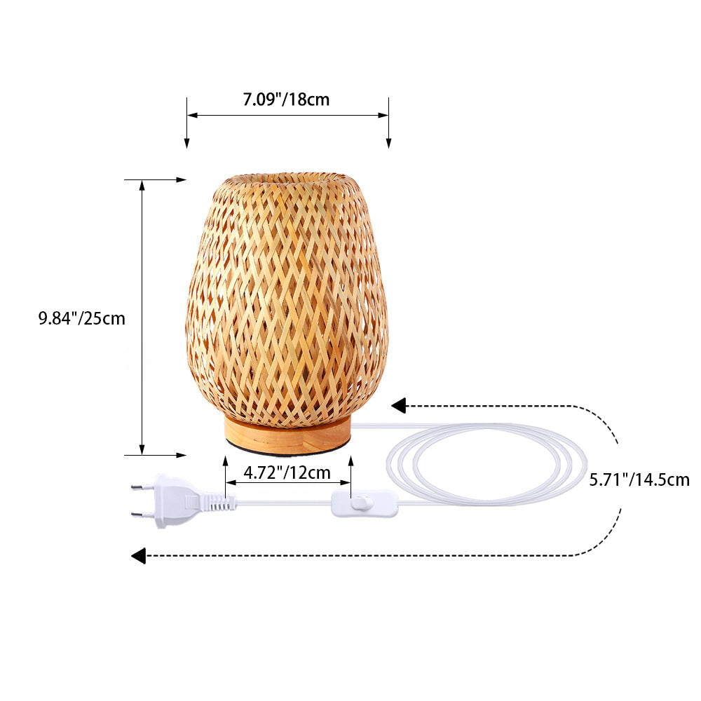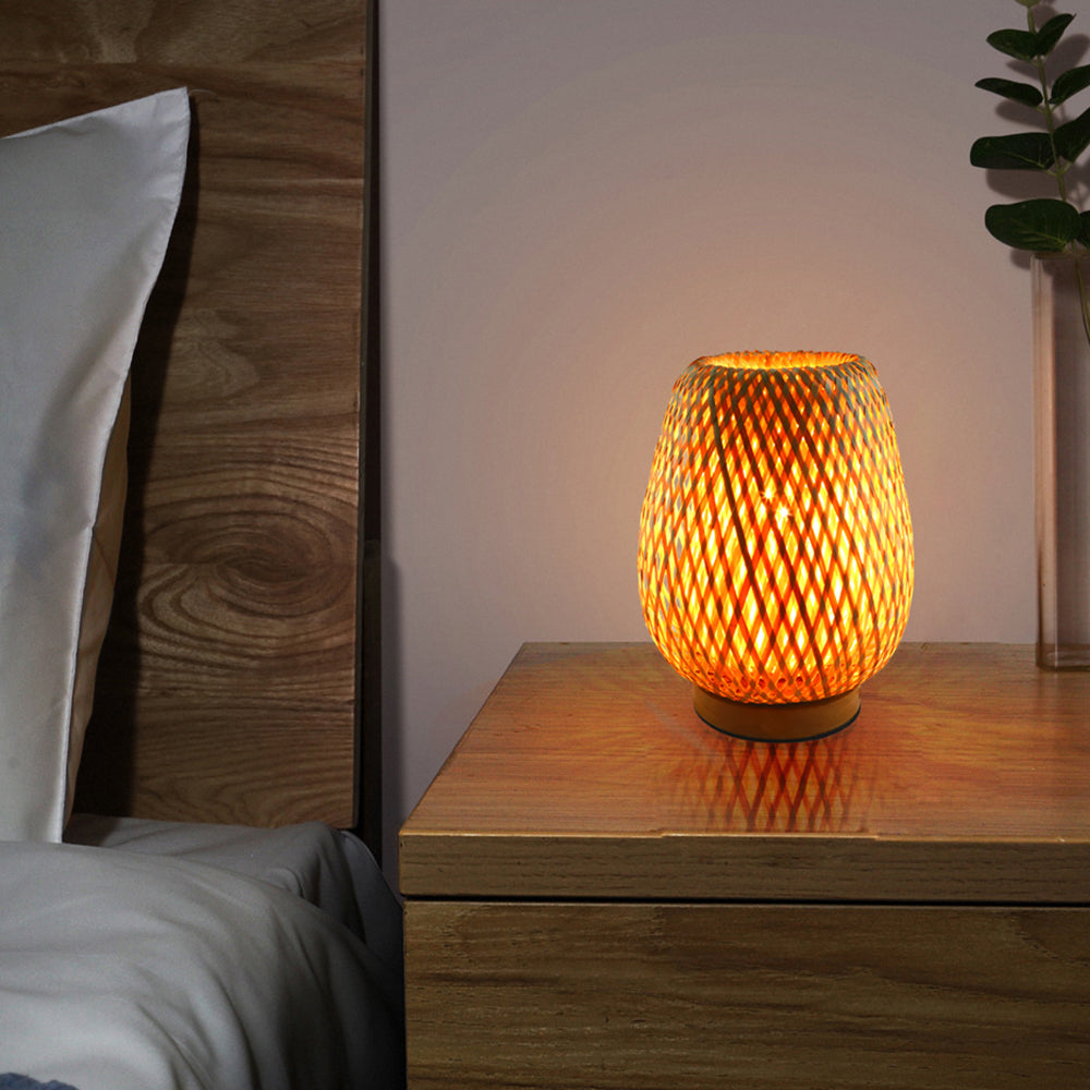 Traditional Chinese Bamboo Weaving Lantern 1-Light Table Lamp For Bedroom