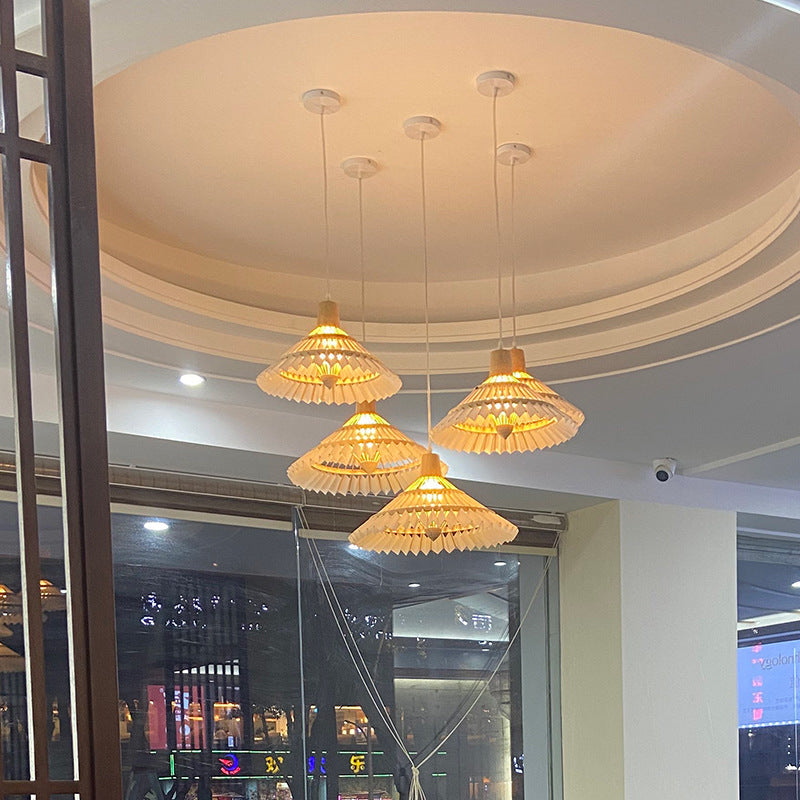 Traditional Chinese Bamboo Weaving Umbrella Shape 1-Light Pendant Light For Dining Room
