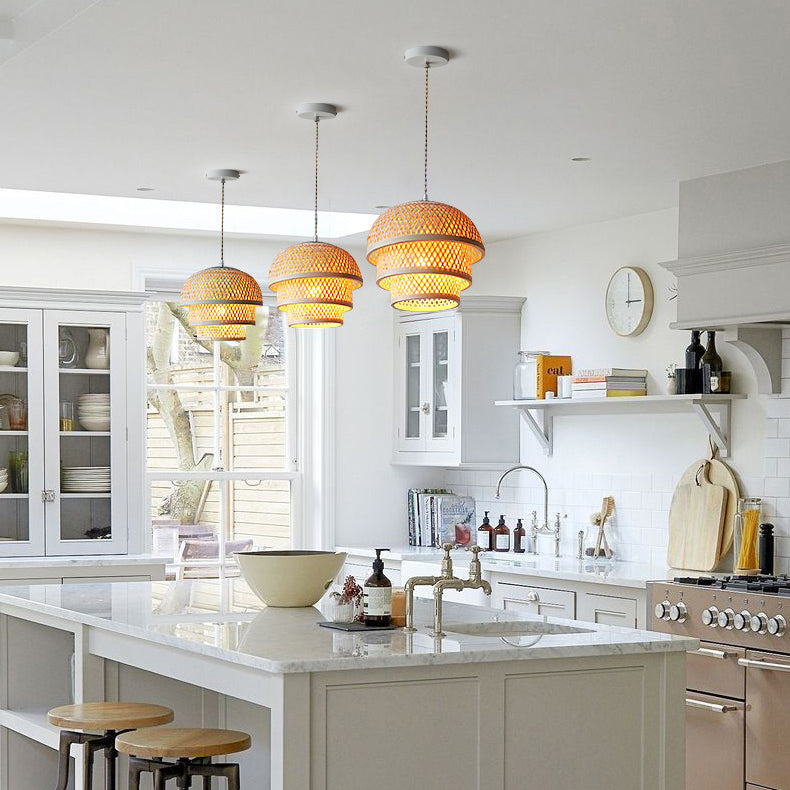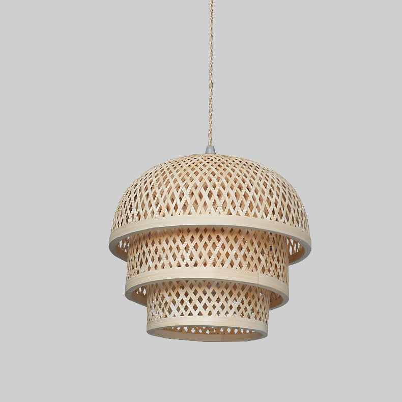 Traditional Chinese Bamboo Woven Cylinder 1-Light Pendant Light For Dining Room