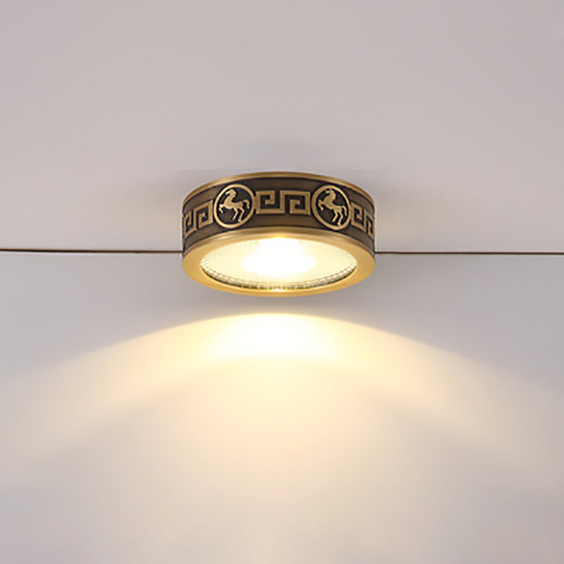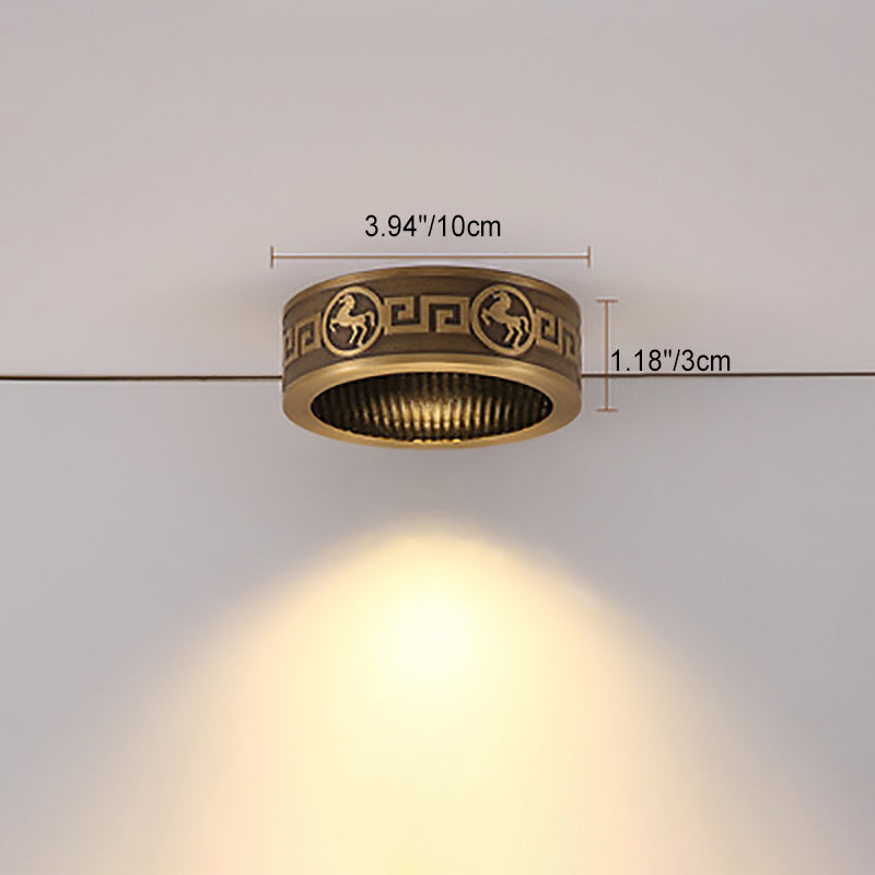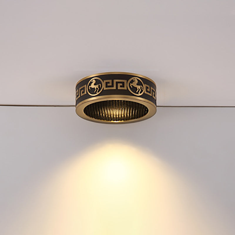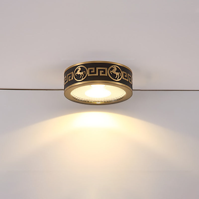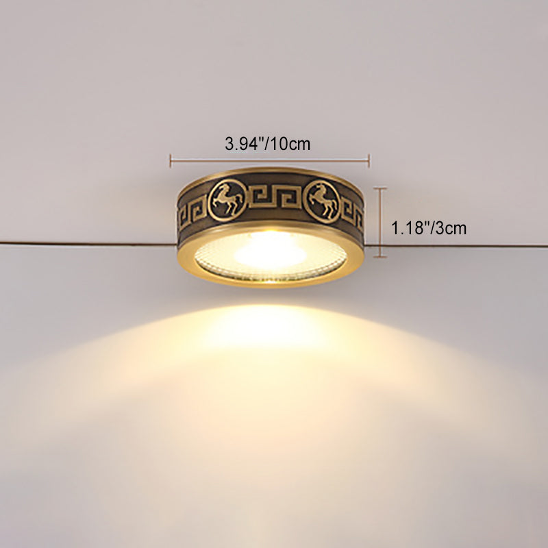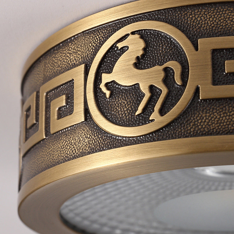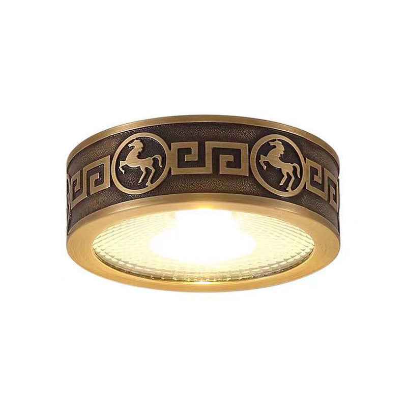 Traditional Chinese Brass Aluminum Round Horse LED Downlight Flush Mount Ceiling Light For Living Room