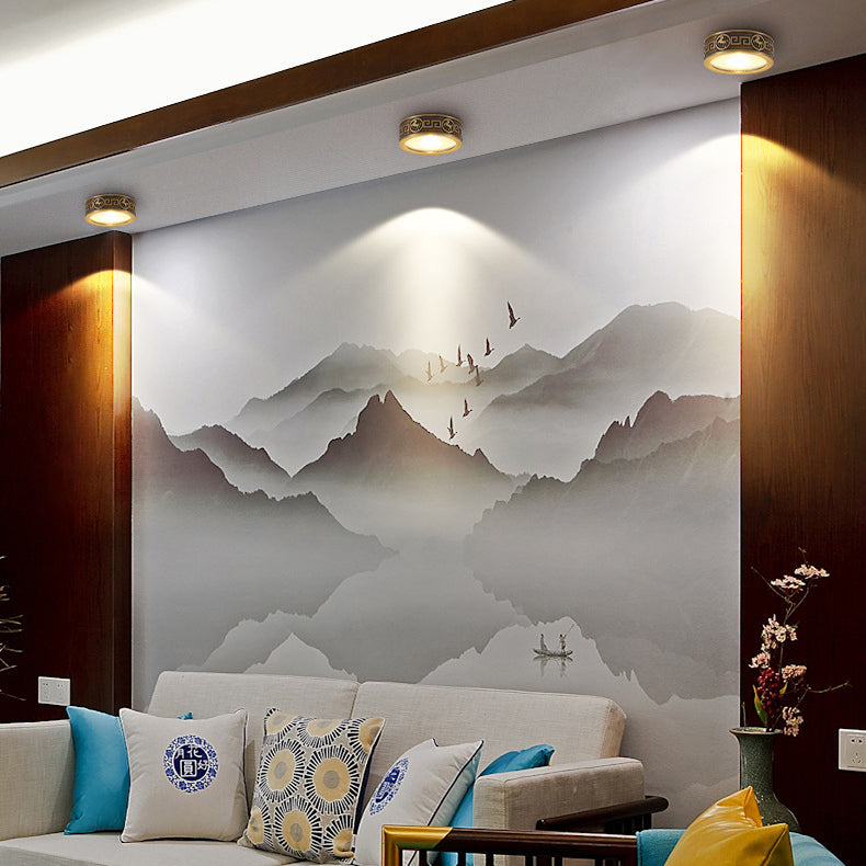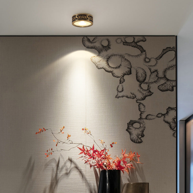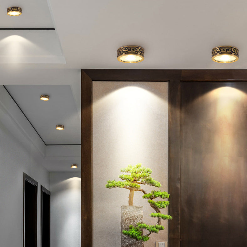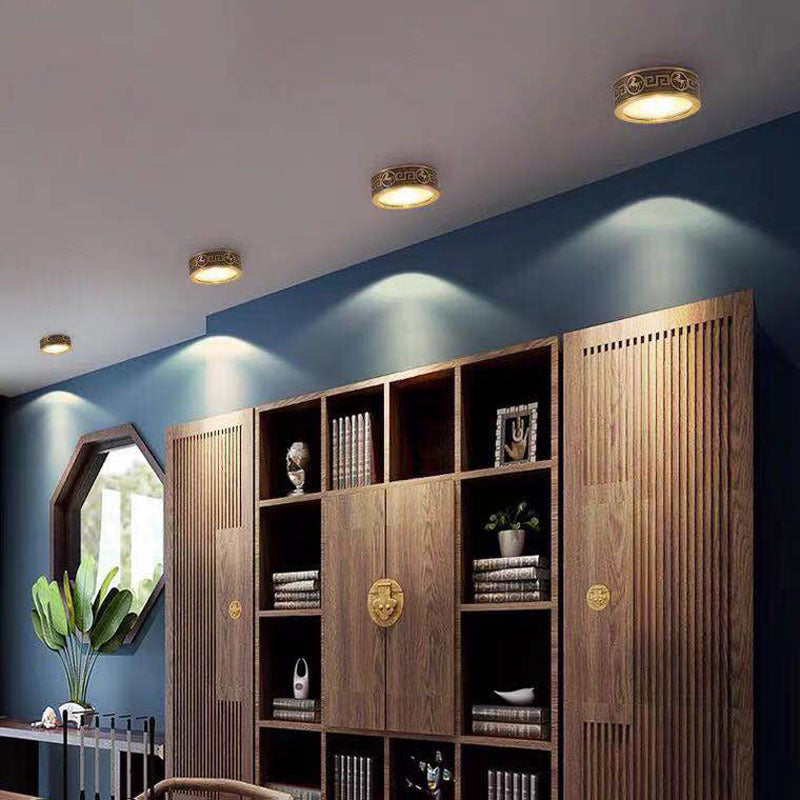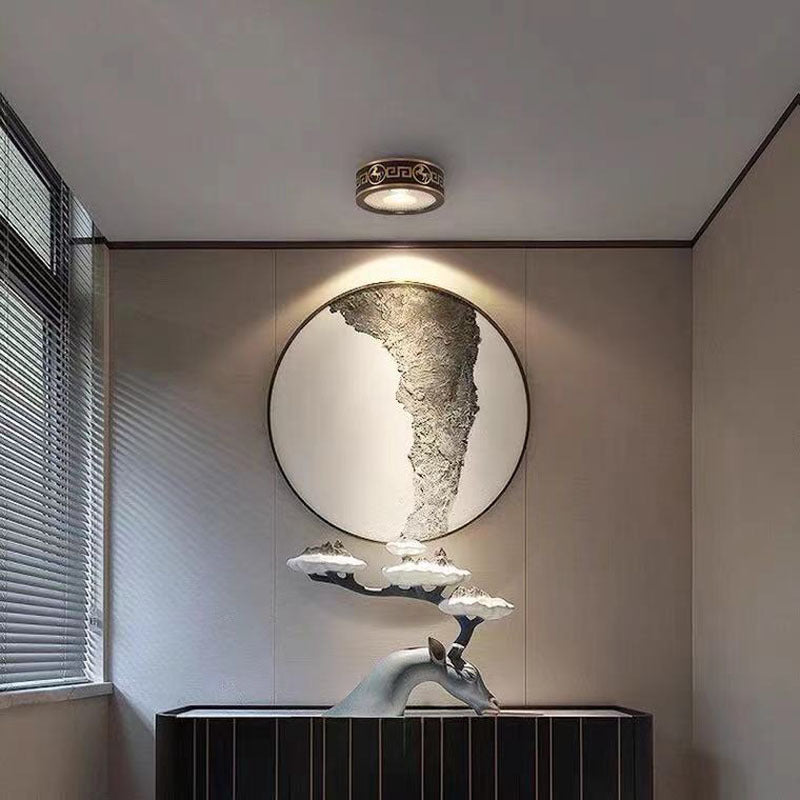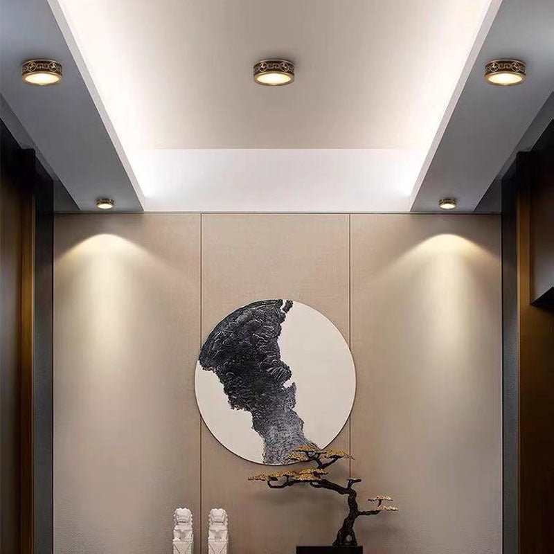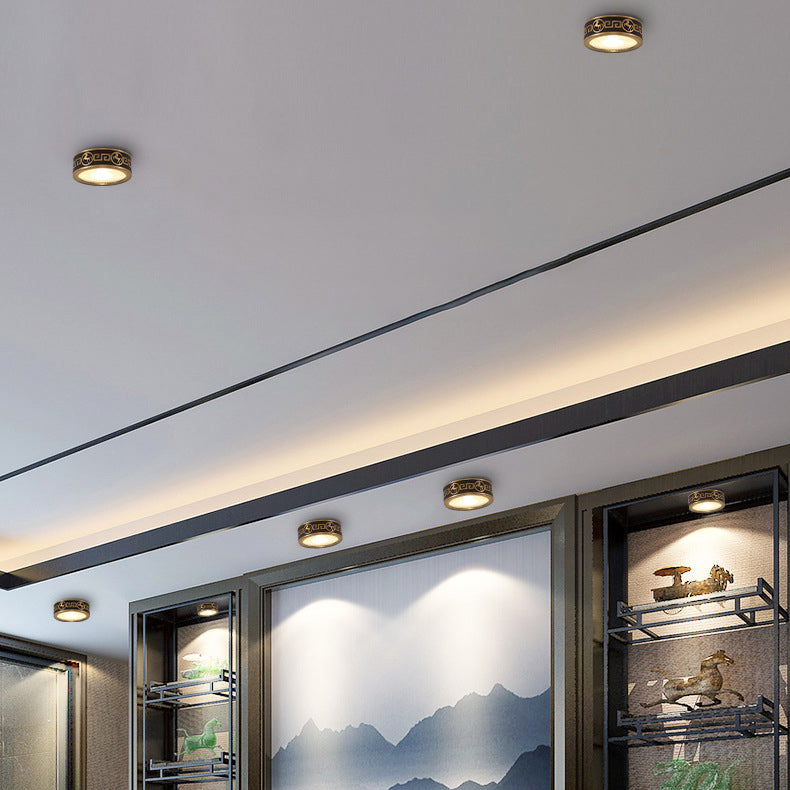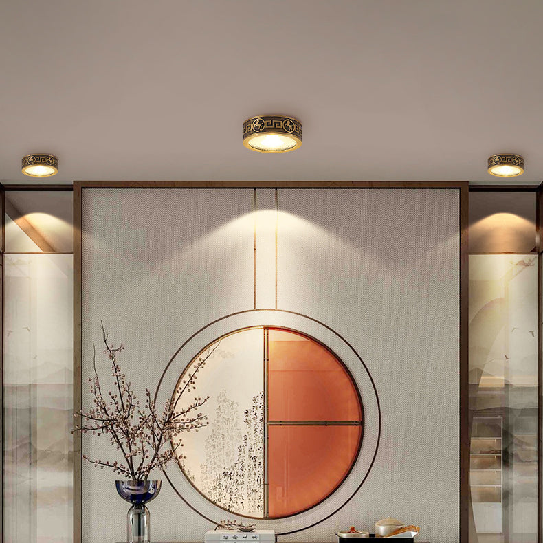 Traditional Chinese Brass Aluminum Round Horse LED Downlight Flush Mount Ceiling Light For Living Room