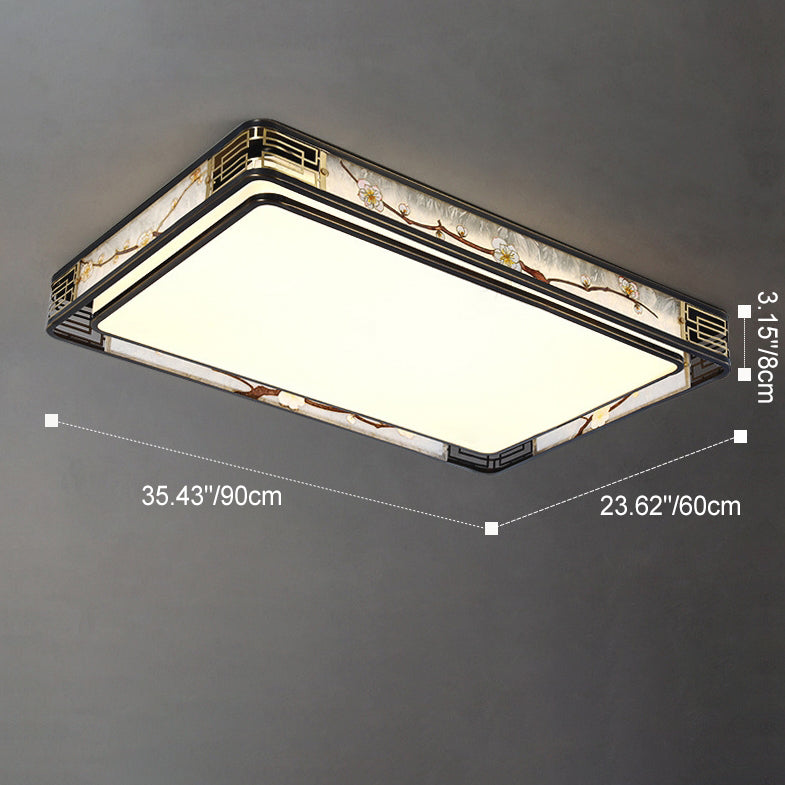 Traditional Chinese Brass And Glass Lotus Plum Blossom Round Square Rectangular LED Flush Mount Ceiling Light For Living Room And Bedroom
