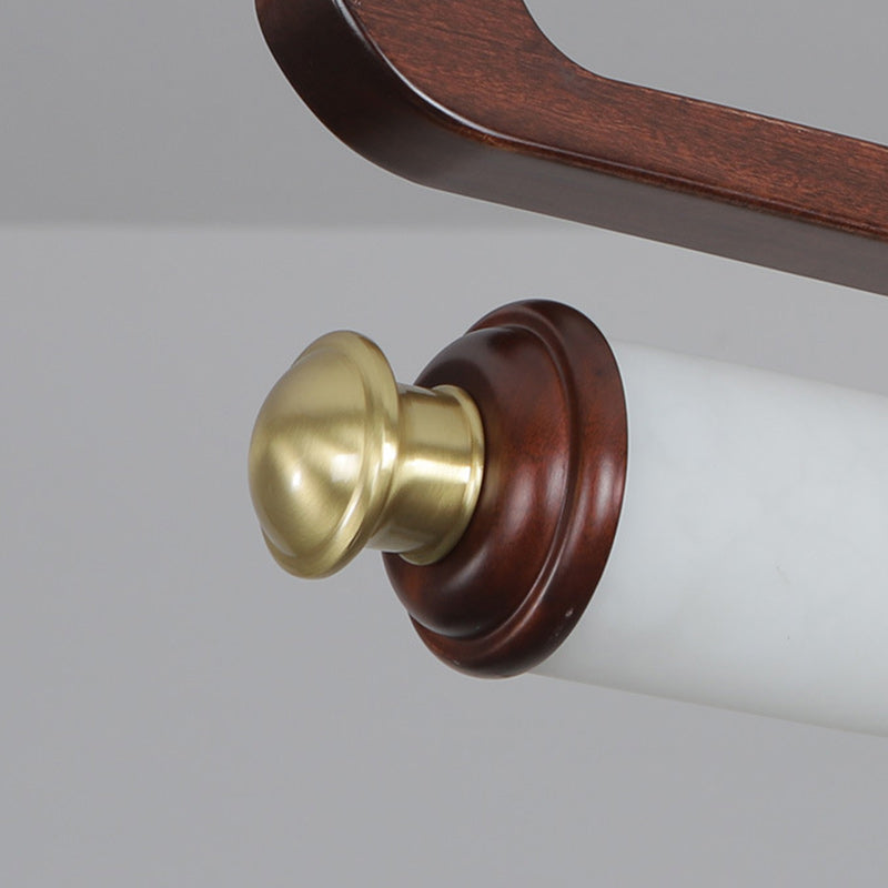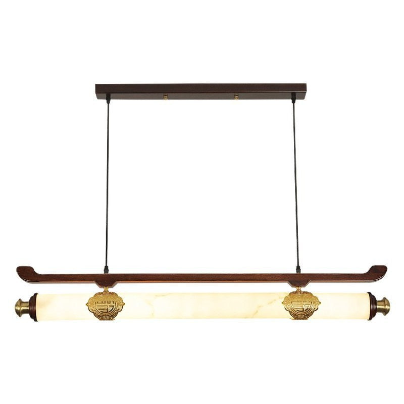 Traditional Chinese Brass Wujin Wood & Imitation Marble Bar-Shaped LED Chandelier Island Light For Dining Room