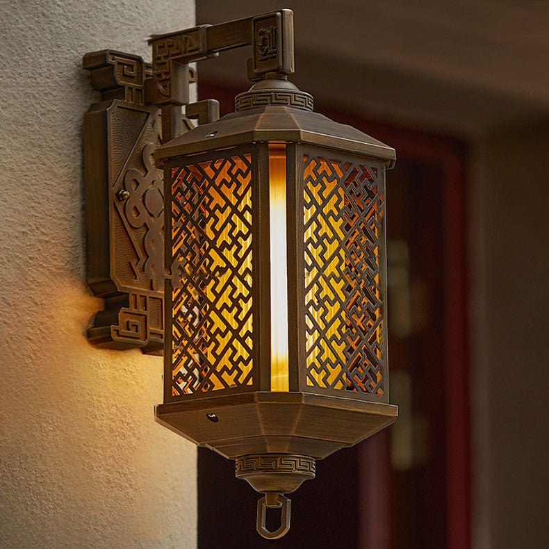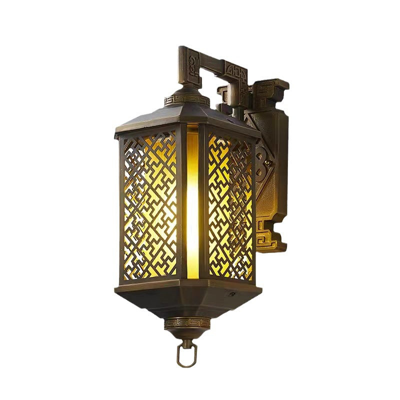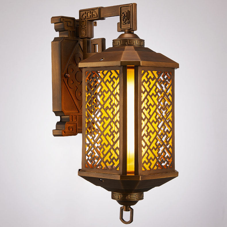 Traditional Chinese Brushed Aluminum House Pagoda 1-Light Wall Sconce Lamp For Outdoor Patio