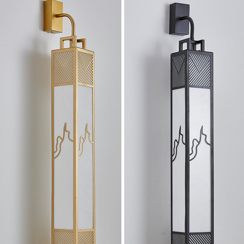 Traditional Chinese Carbon Steel Imitation Marble Rectangular Shade LED Wall Sconce Lamp For Living Room