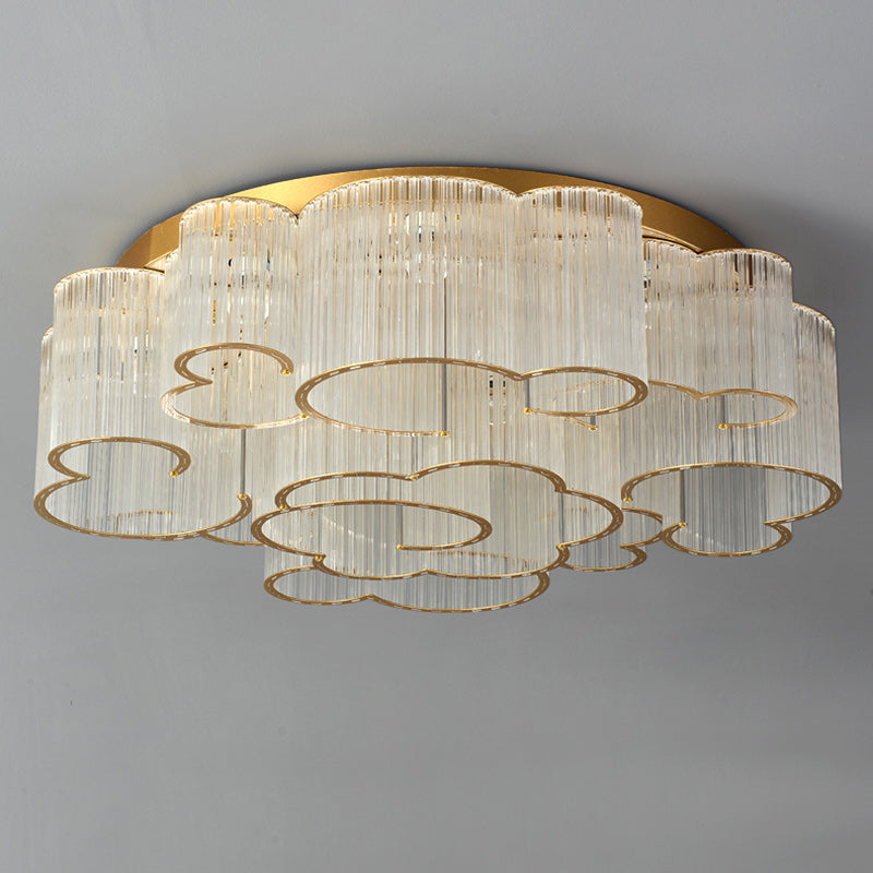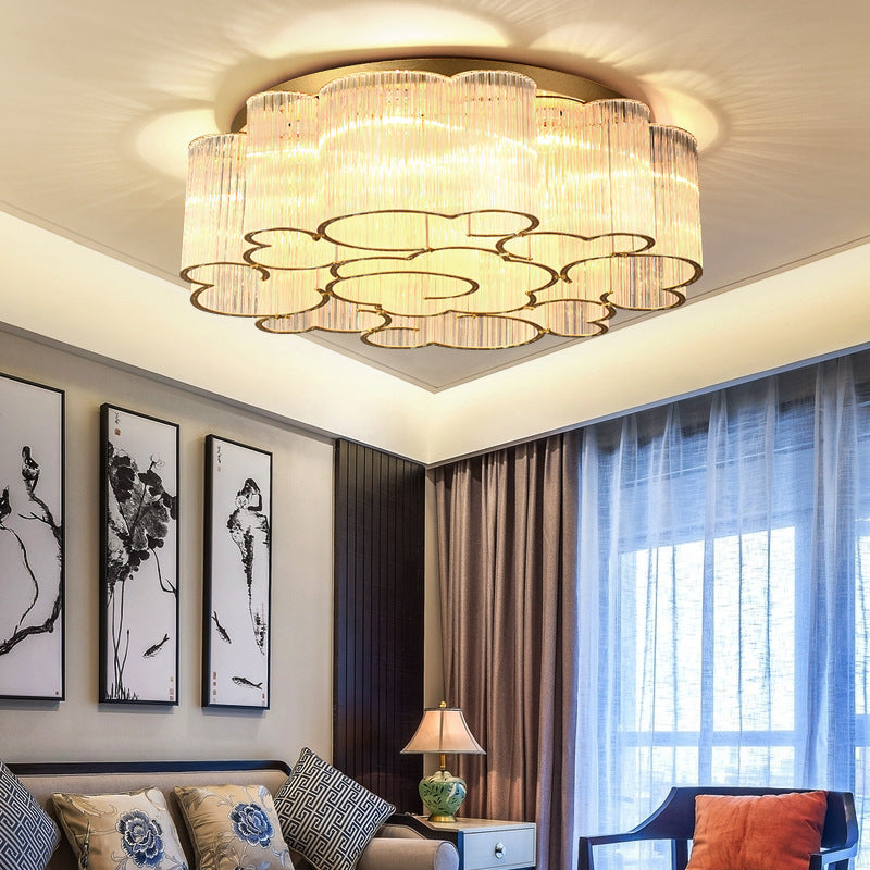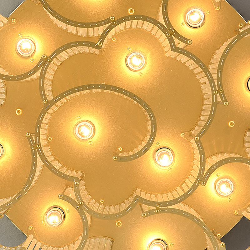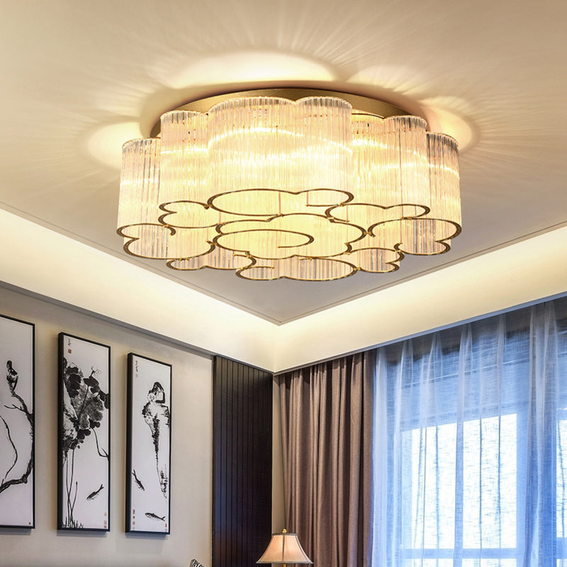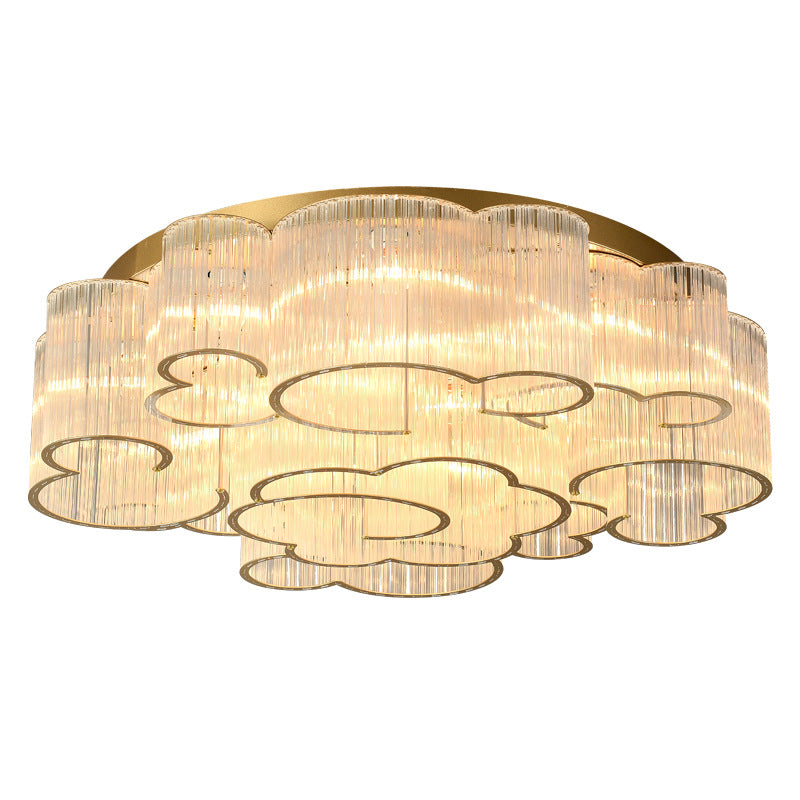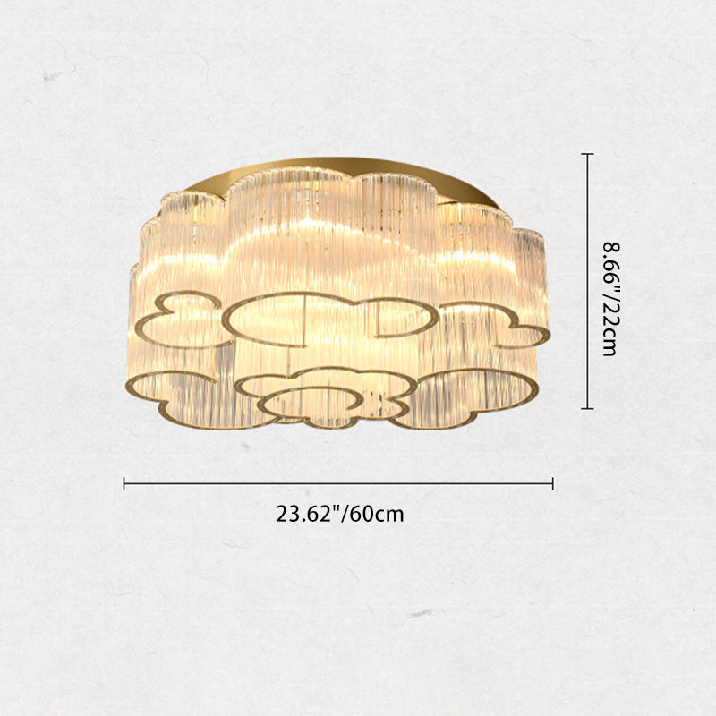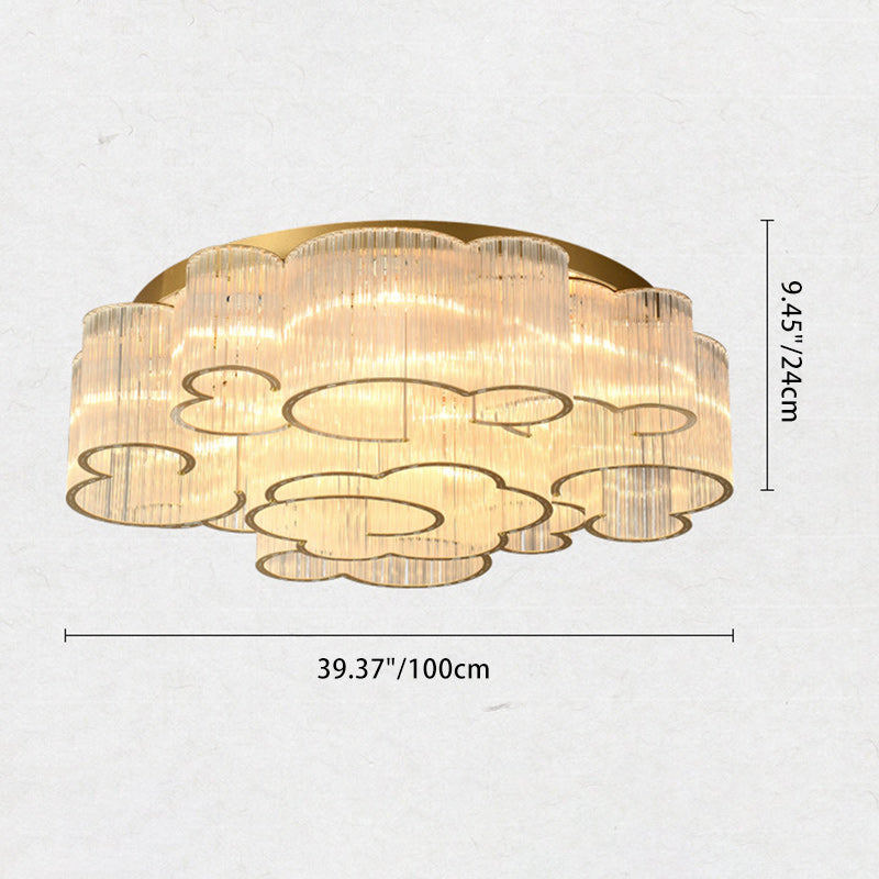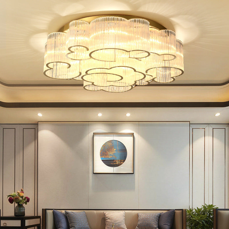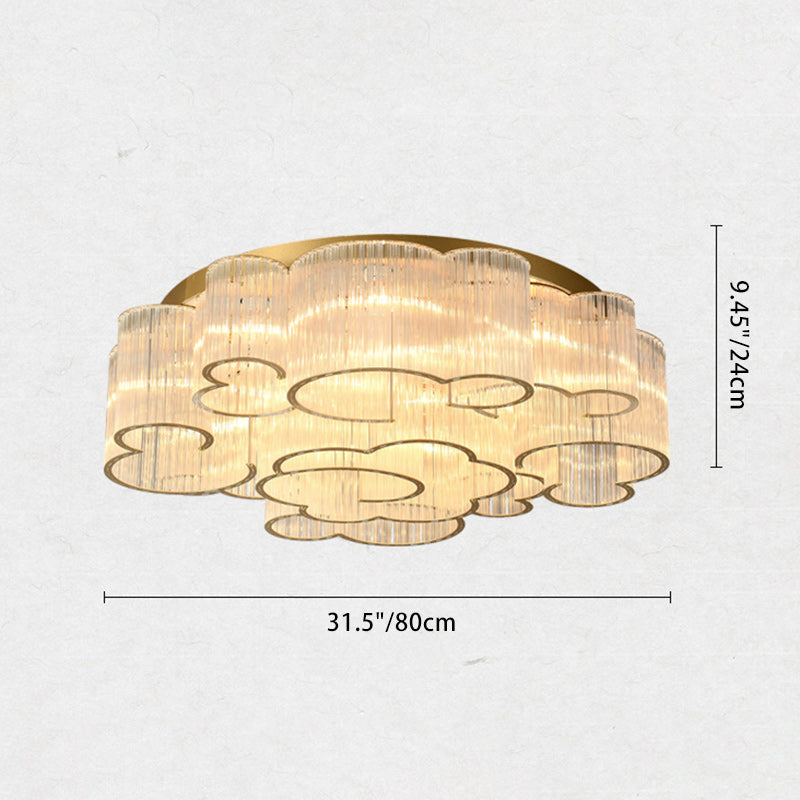 Traditional Chinese Cloud Round Carbon Steel Glass 7/11/15 Light Semi-Flush Mount Ceiling Light For Living Room