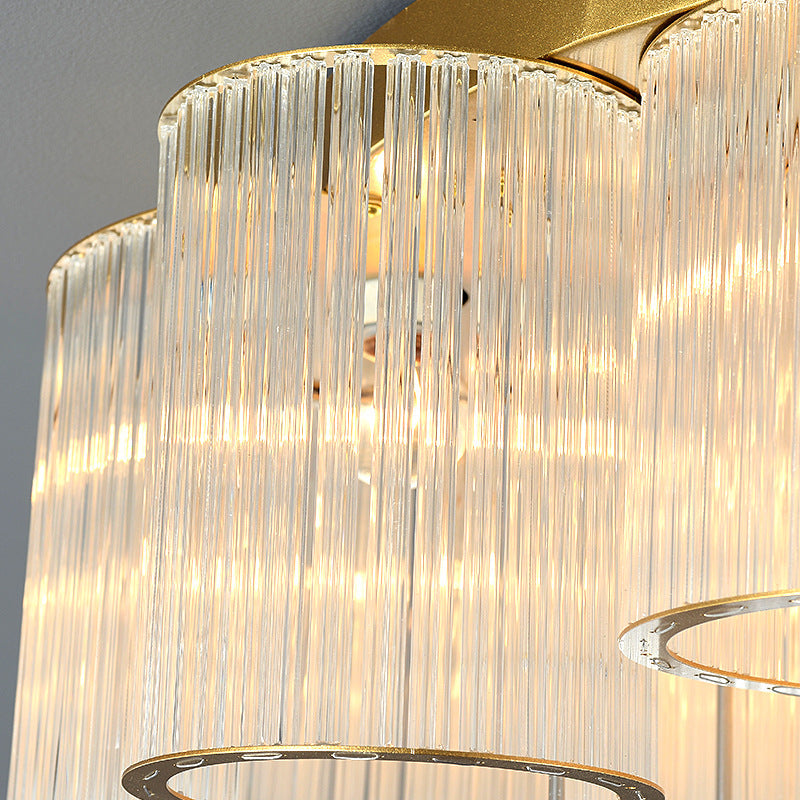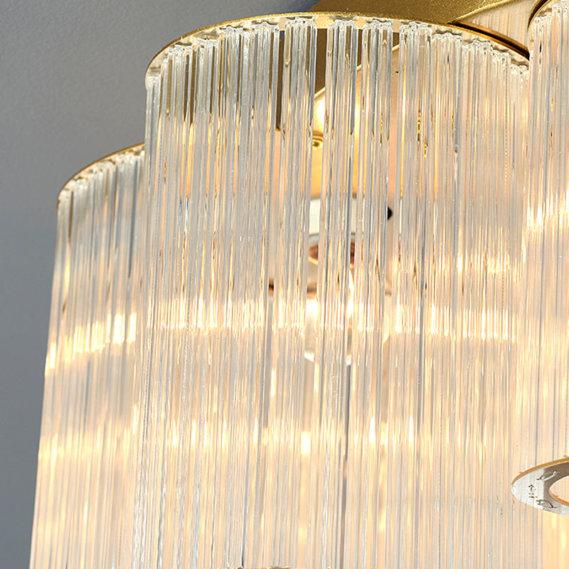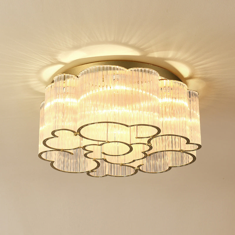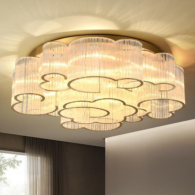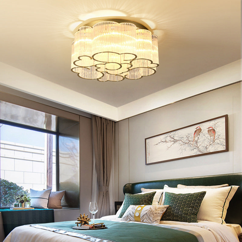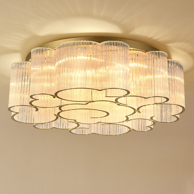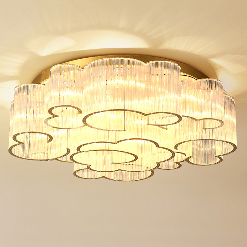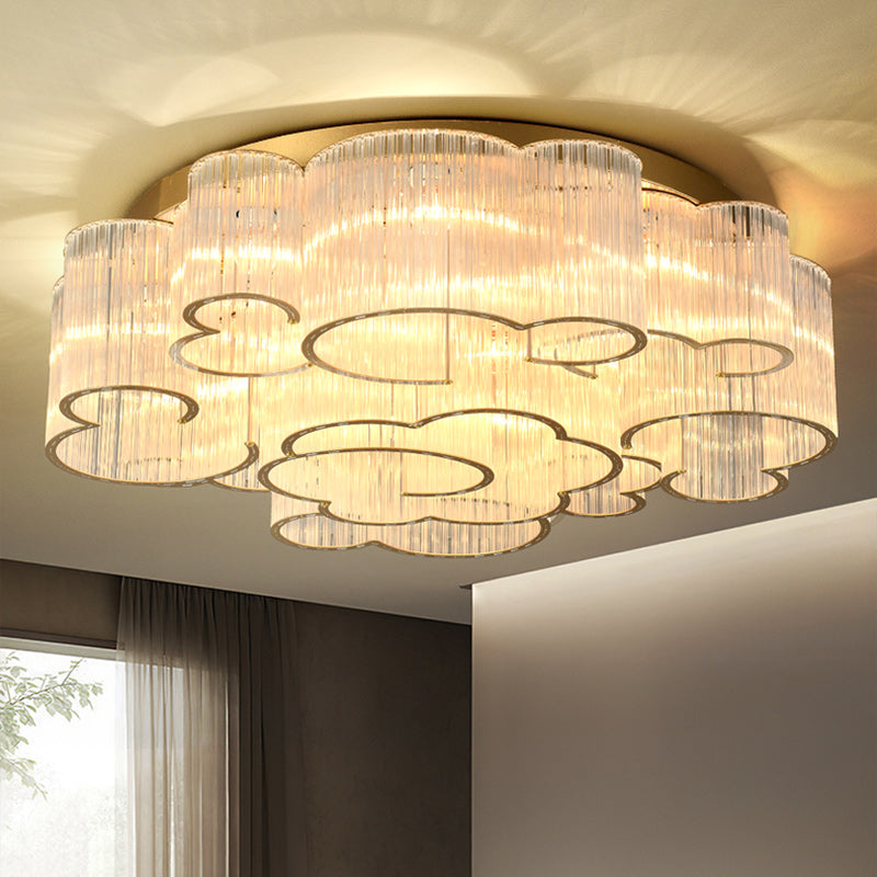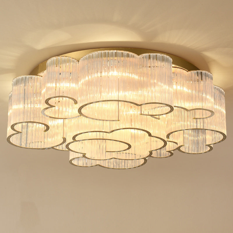 Traditional Chinese Cloud Round Carbon Steel Glass 7/11/15 Light Semi-Flush Mount Ceiling Light For Living Room