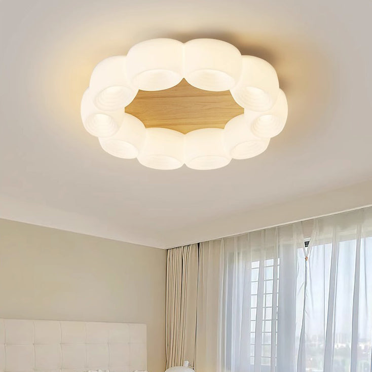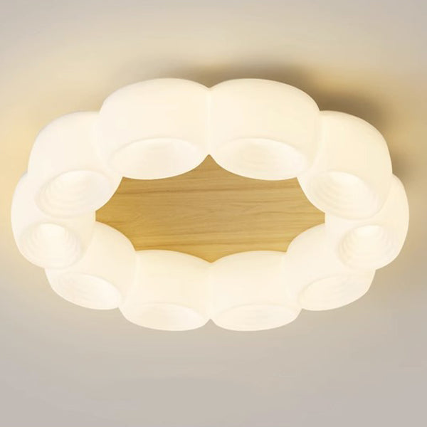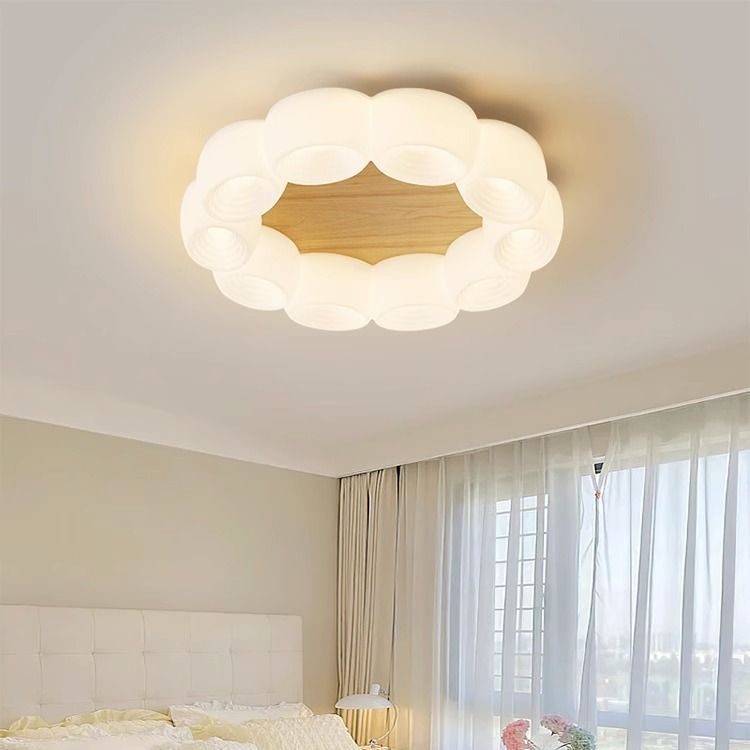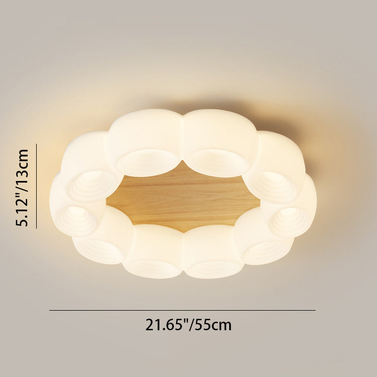 Traditional Chinese Clouds Round Acrylic Wood LED Flush Mount Ceiling Light For Living Room
