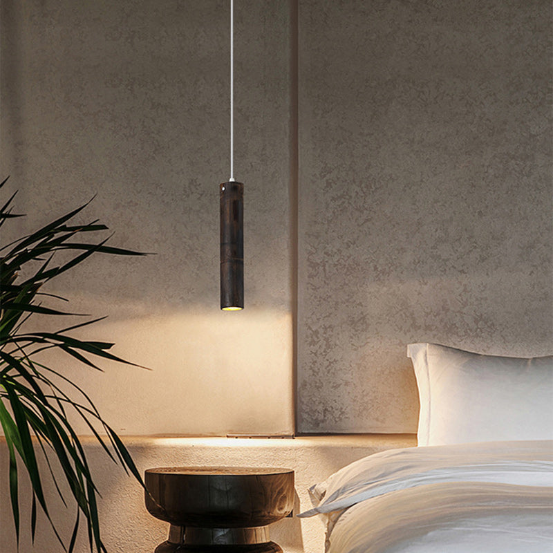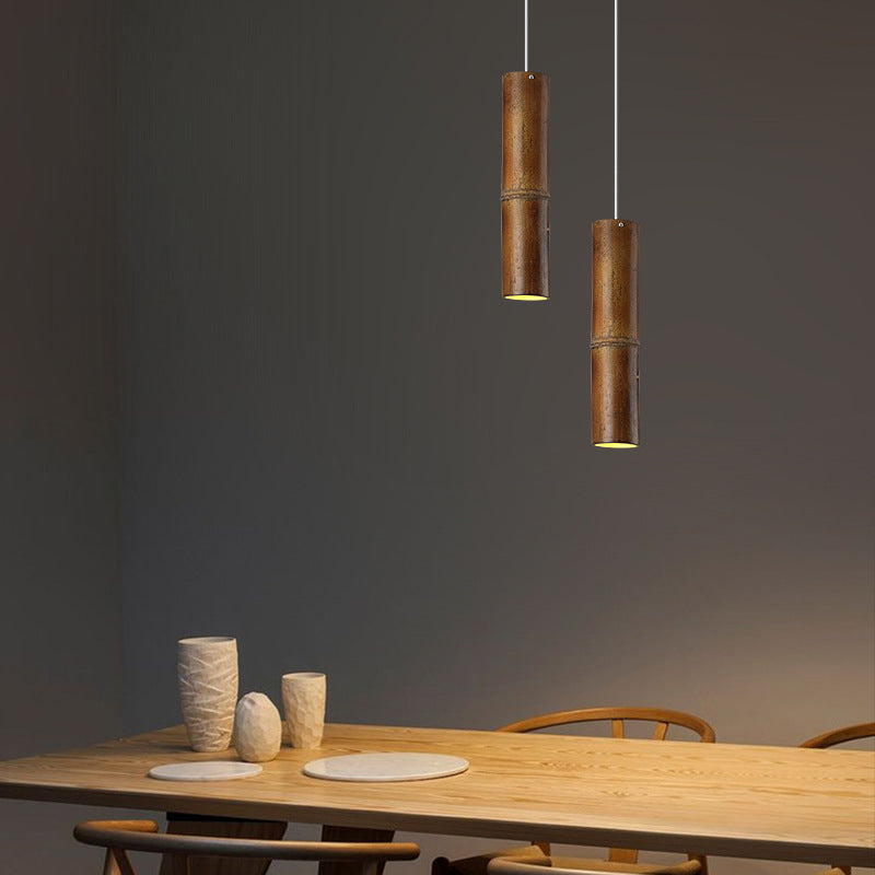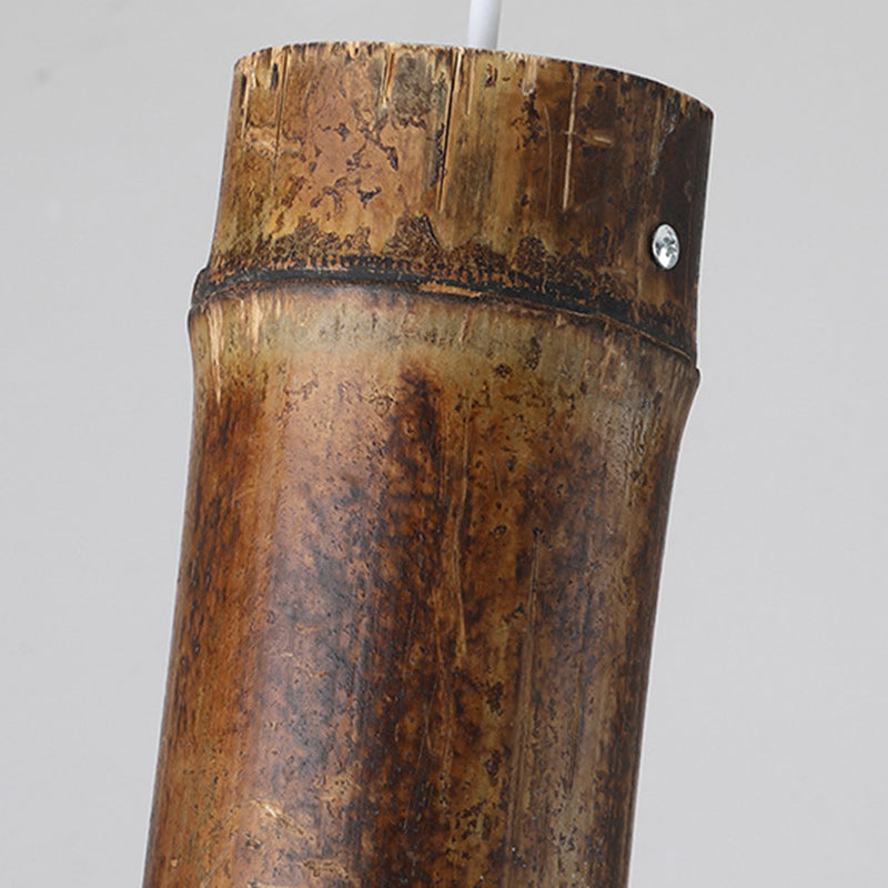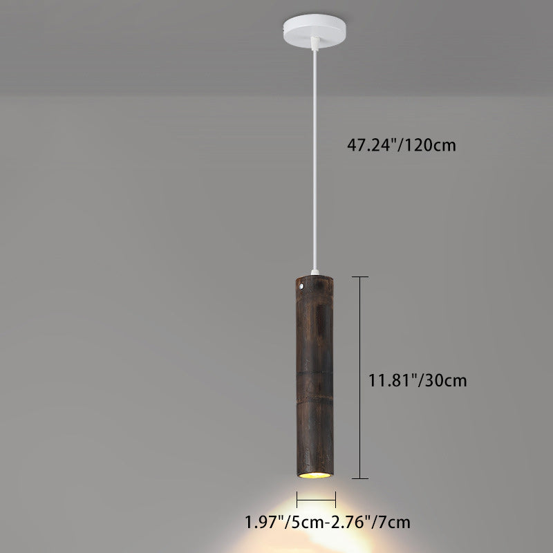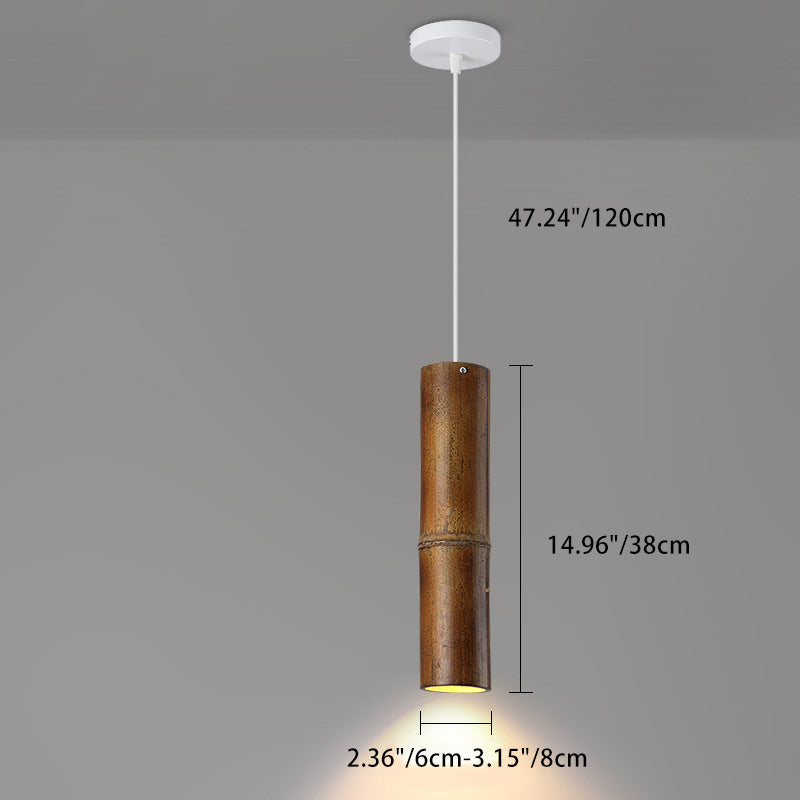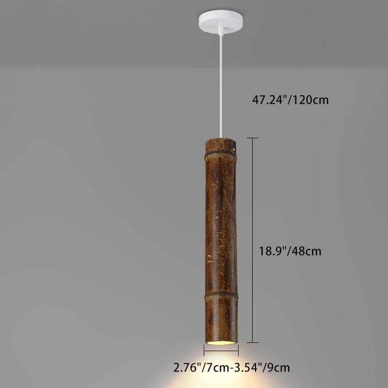 Traditional Chinese Column Iron Bamboo 1-Light Pendant Light For Living Room