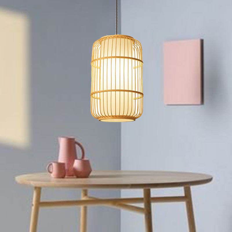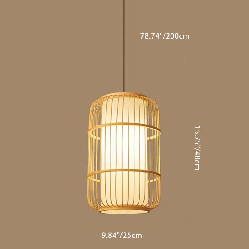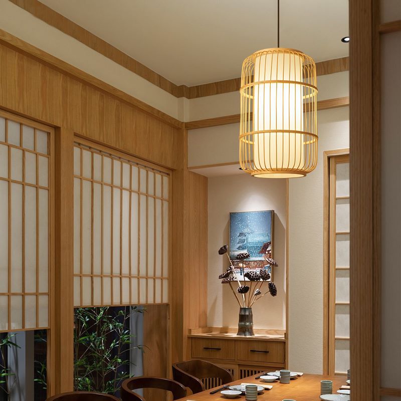 Traditional Chinese Column Iron Bamboo Paper 1-Light Pendant Light For Living Room
