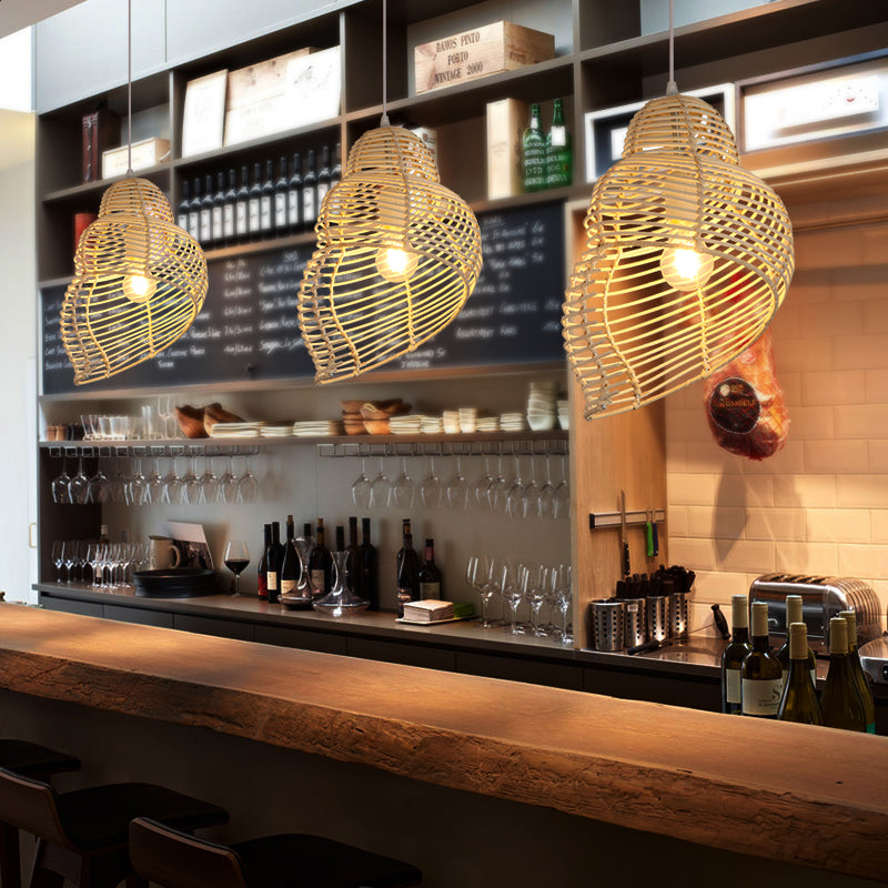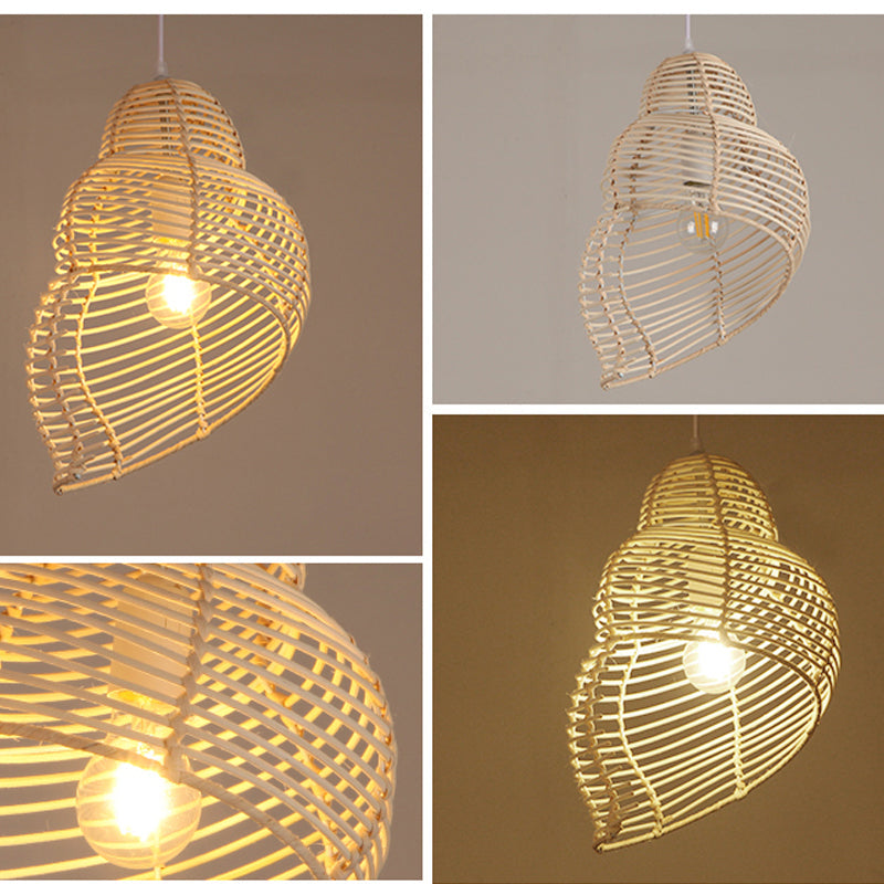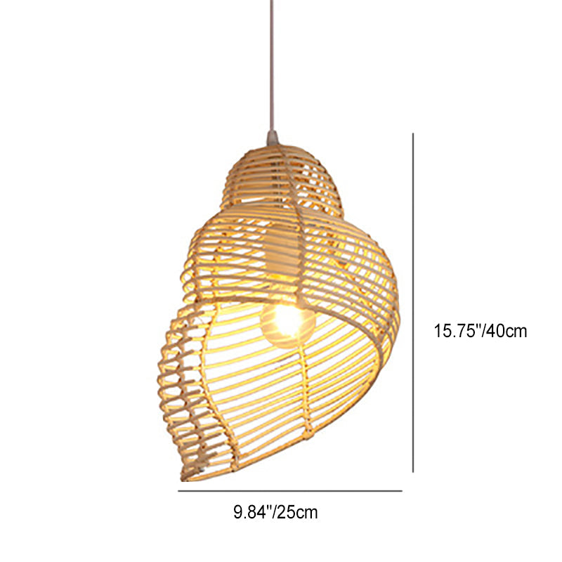 Traditional Chinese Conch Shape Straw Rattan 1-Light Pendant Light For Living Room