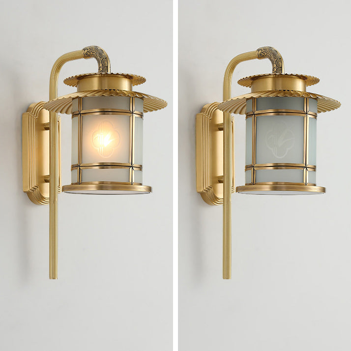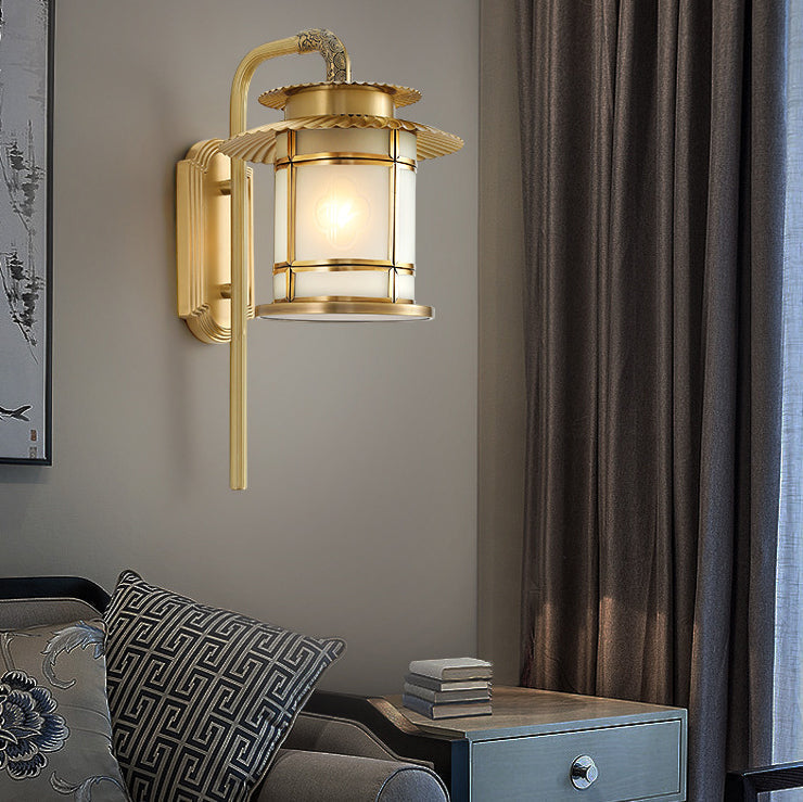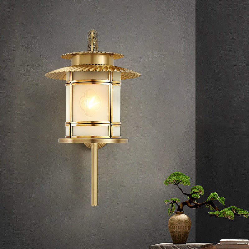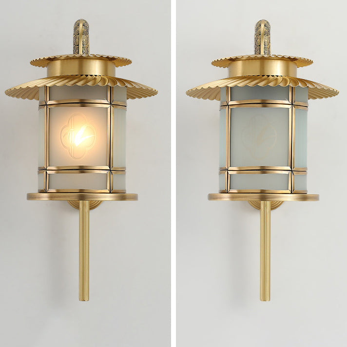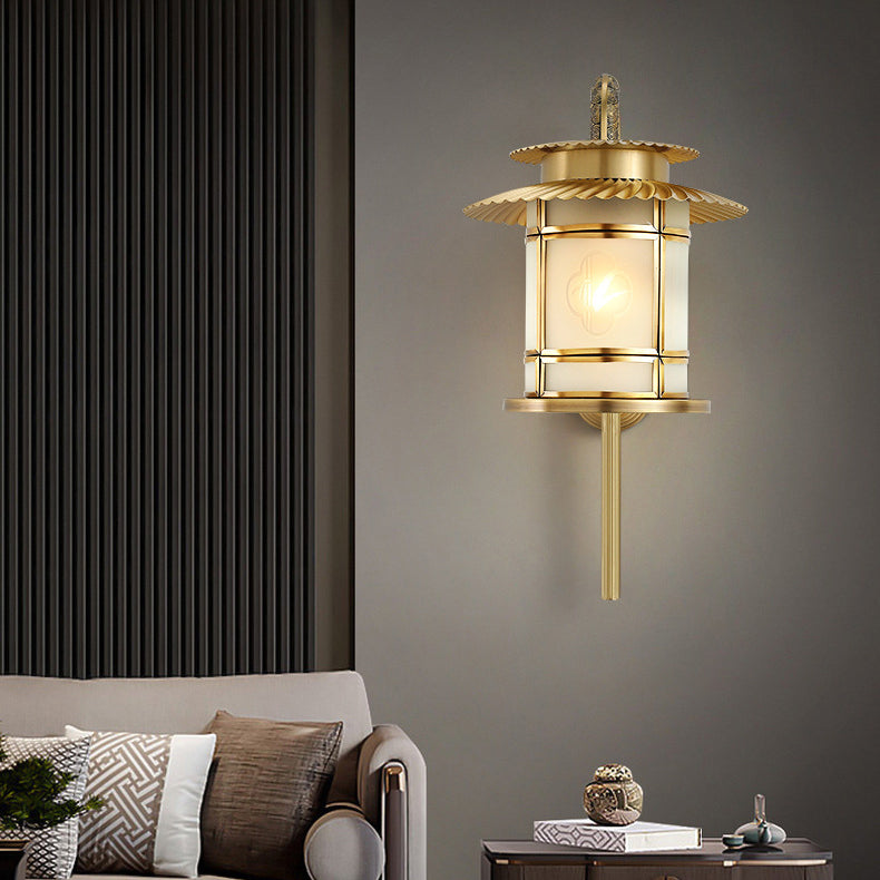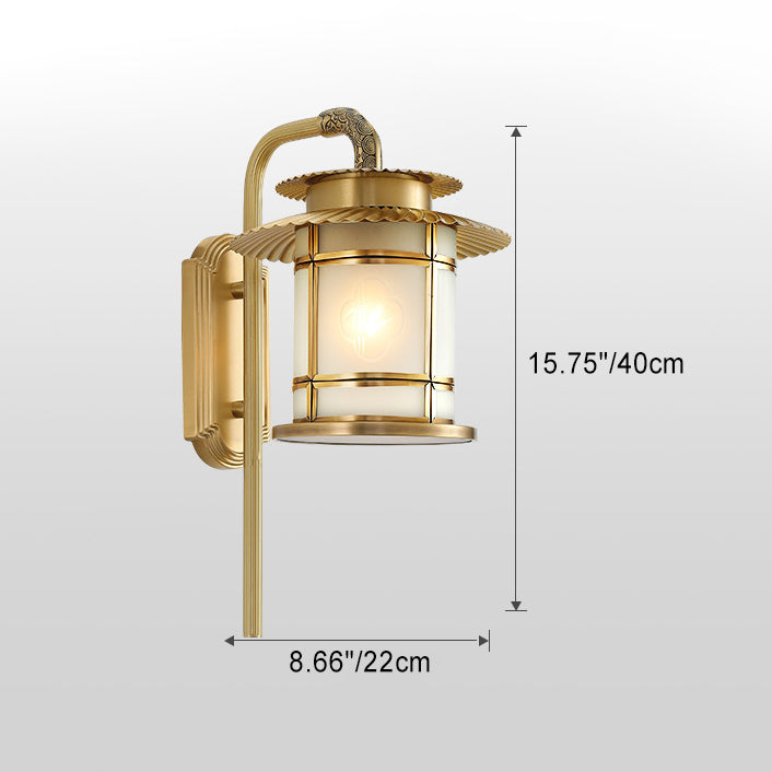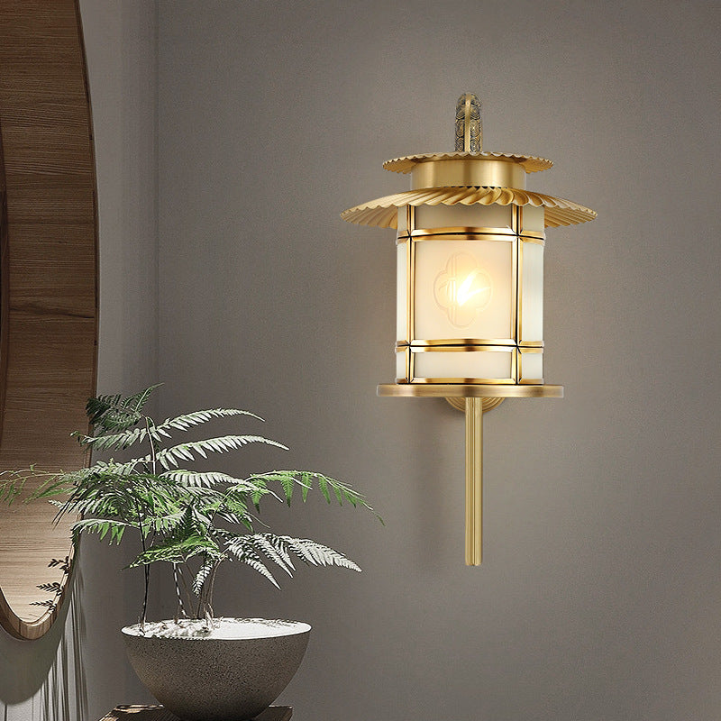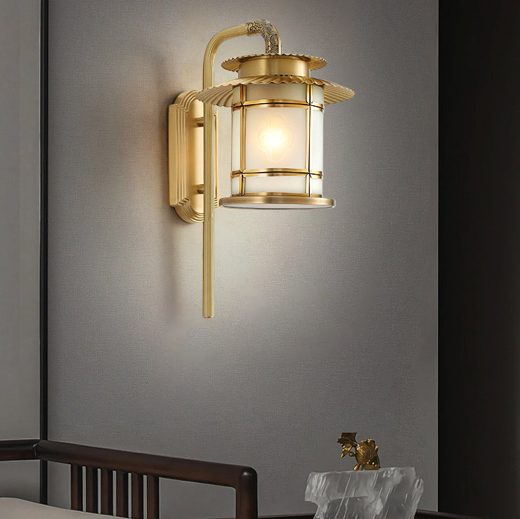 Traditional Chinese Copper Lantern Design 1-Light Wall Sconce Lamp For Hallway