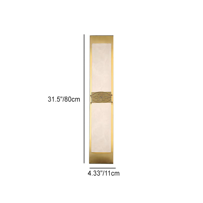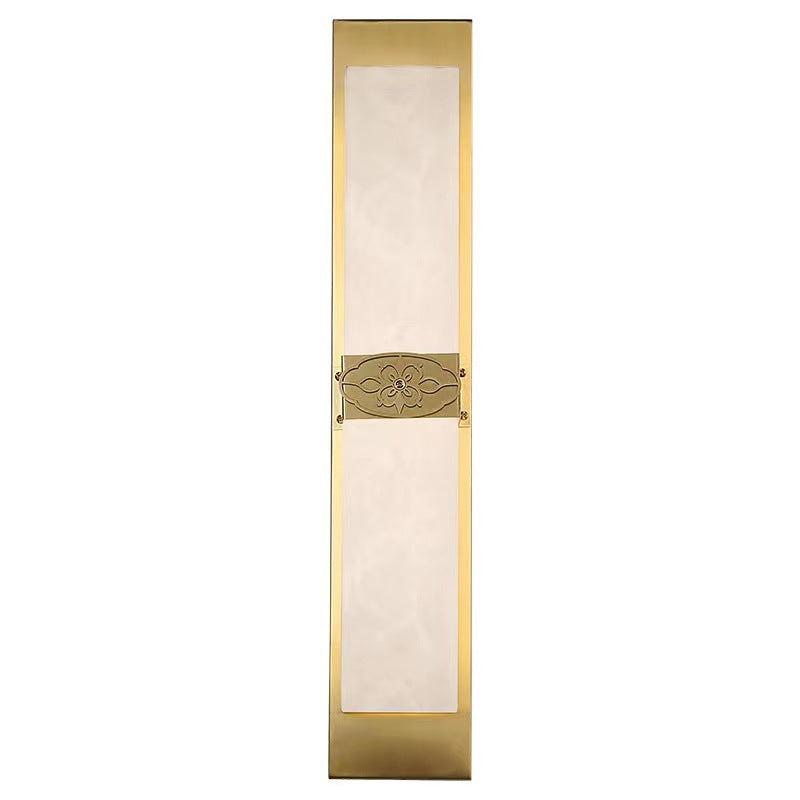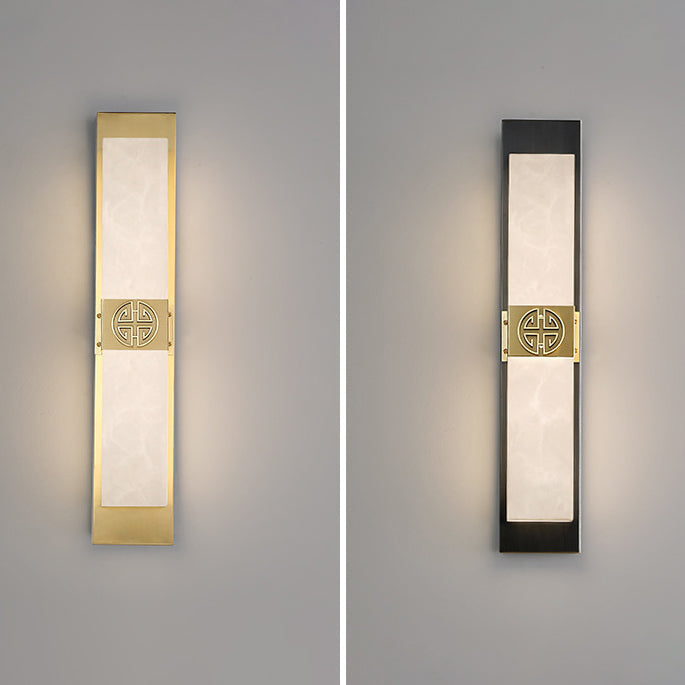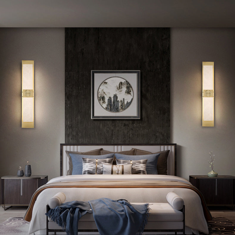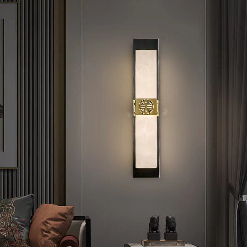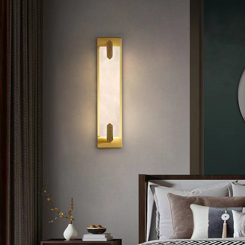 Traditional Chinese Copper Marble Cubic Strip Chinese Knot Cymbidium LED Wall Sconce Lamp For Bedside
