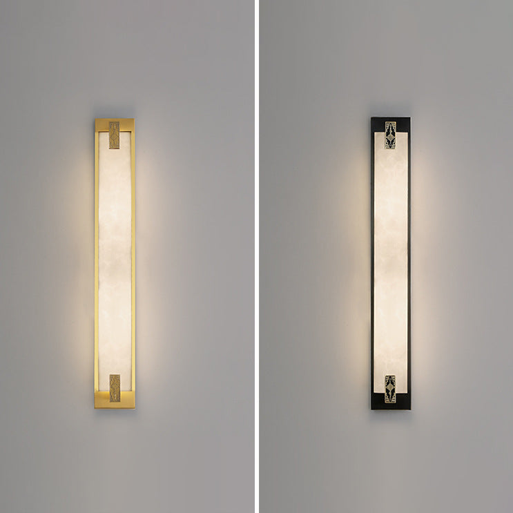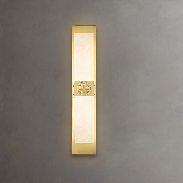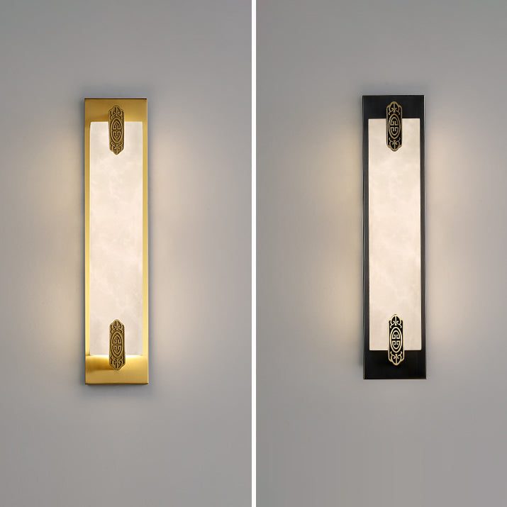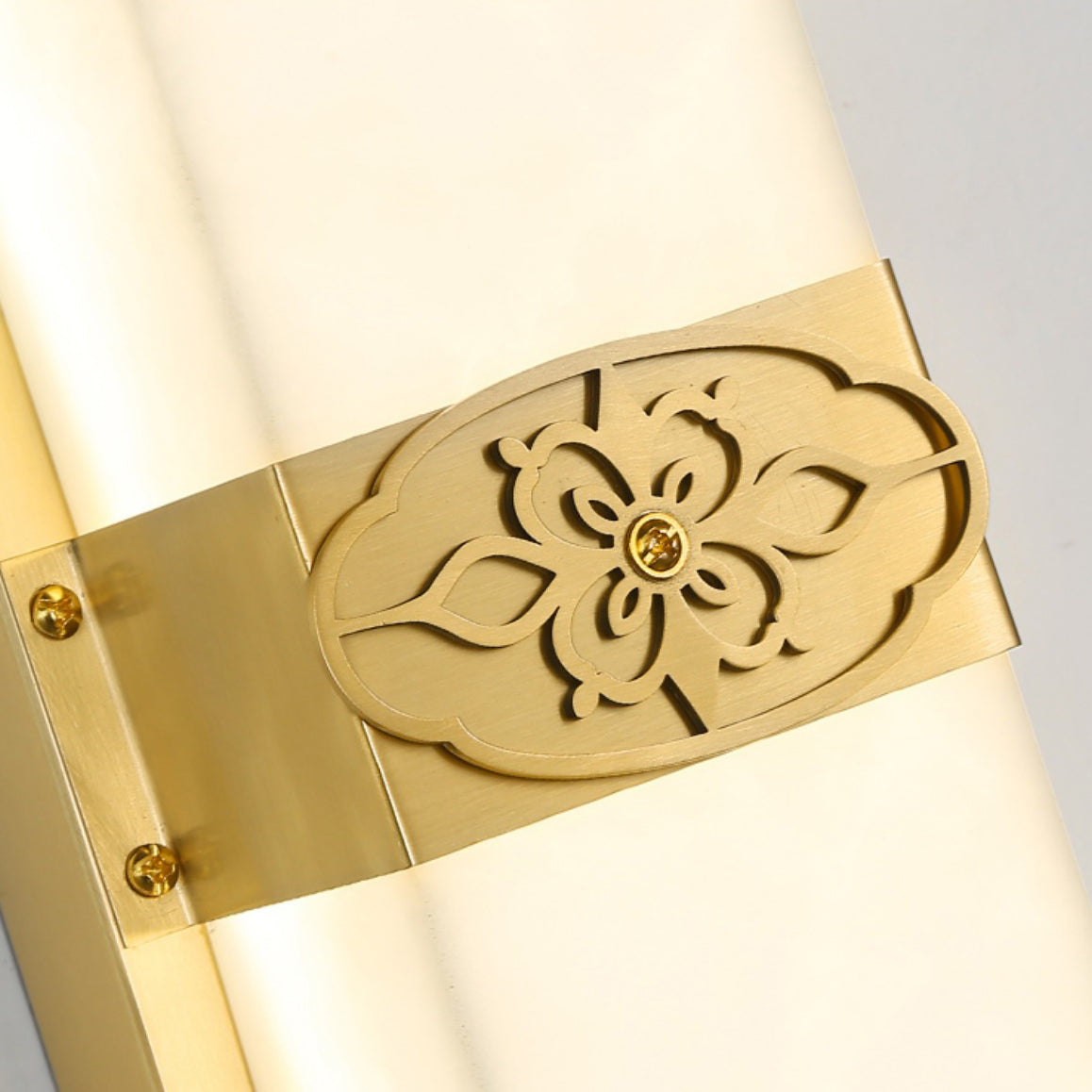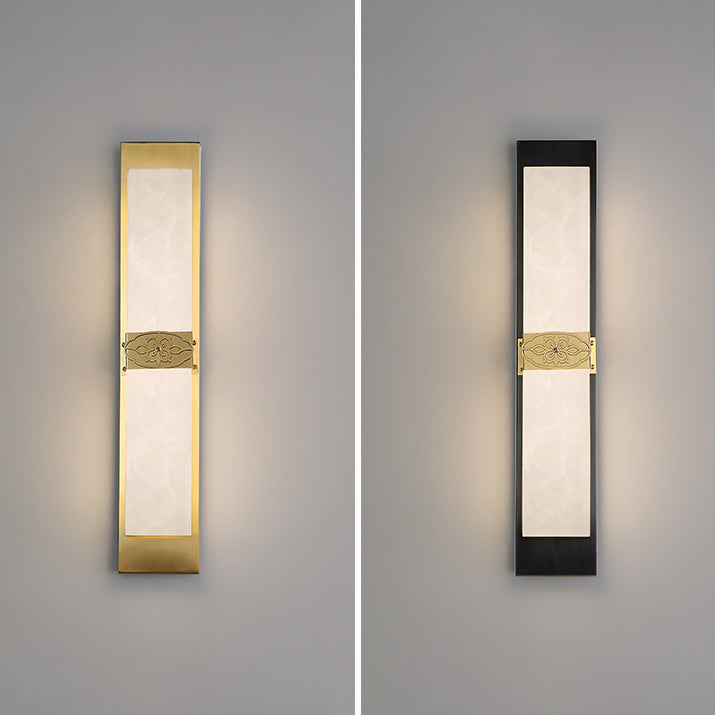 Traditional Chinese Copper Marble Cubic Strip Chinese Knot Cymbidium LED Wall Sconce Lamp For Bedside