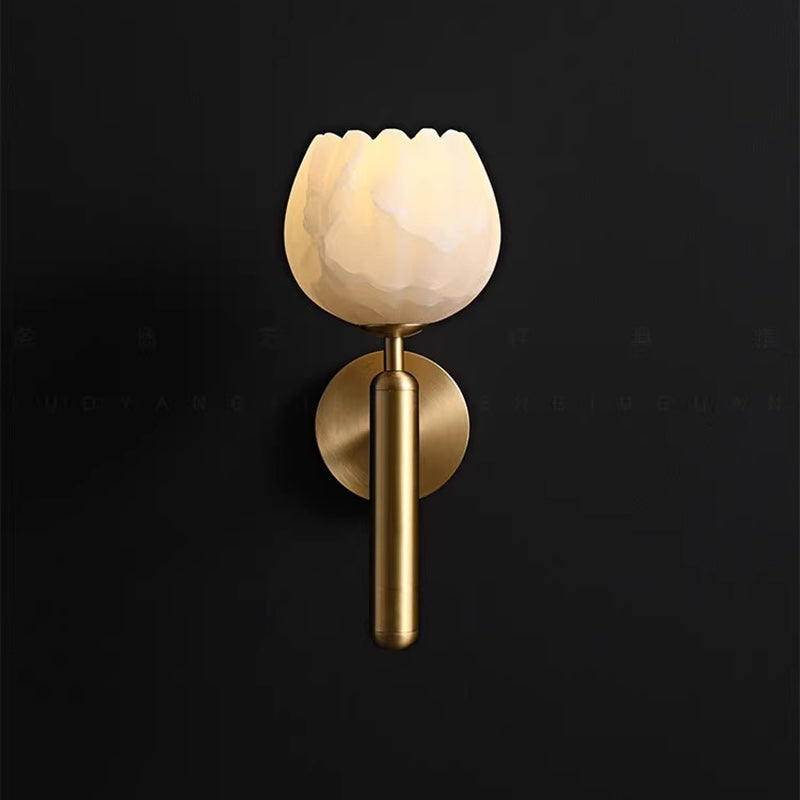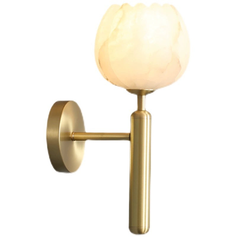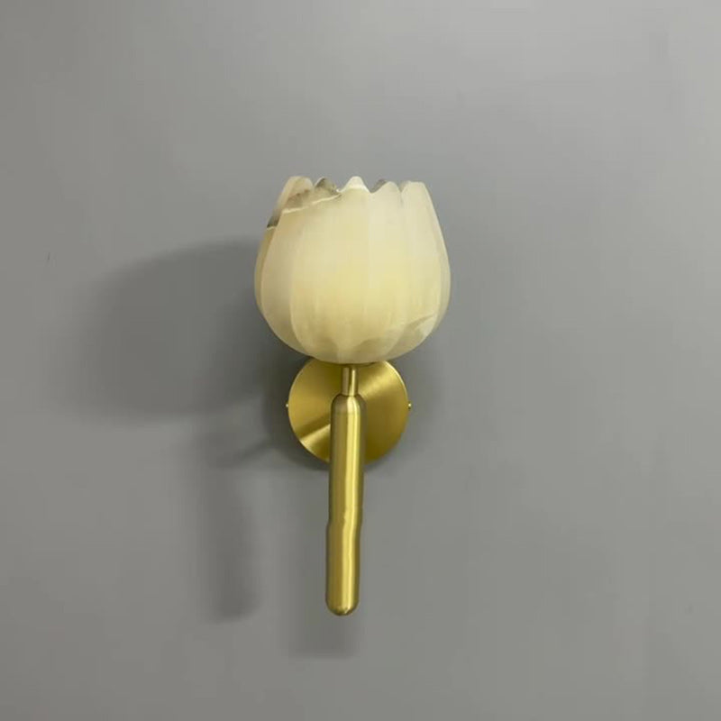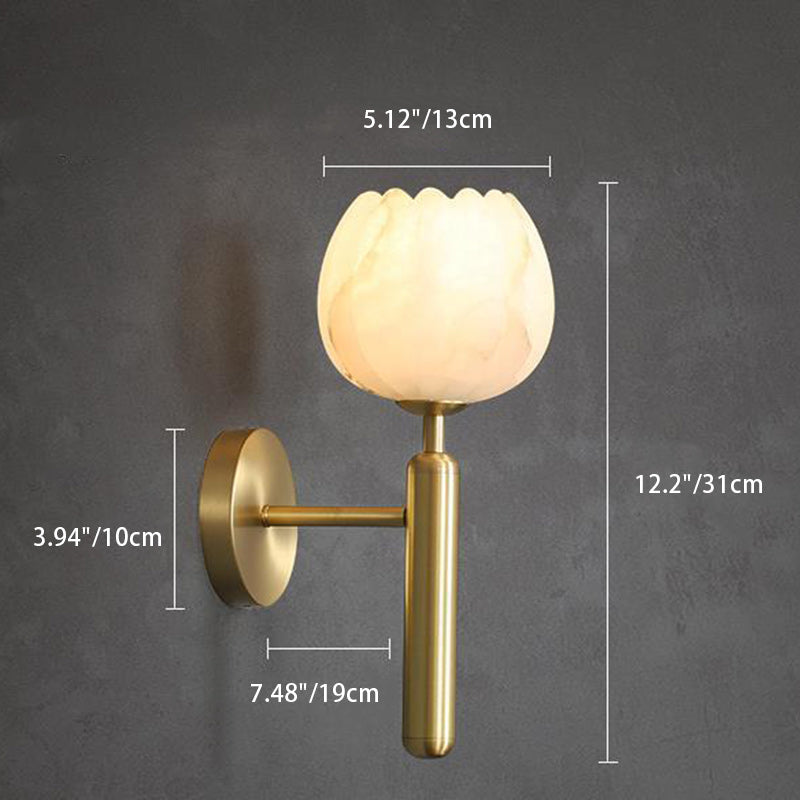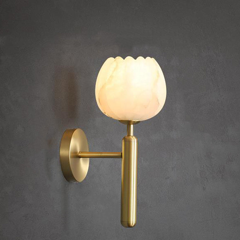 Traditional Chinese Copper Marble Flower Bud 1-Light Wall Sconce Lamp For Hallway