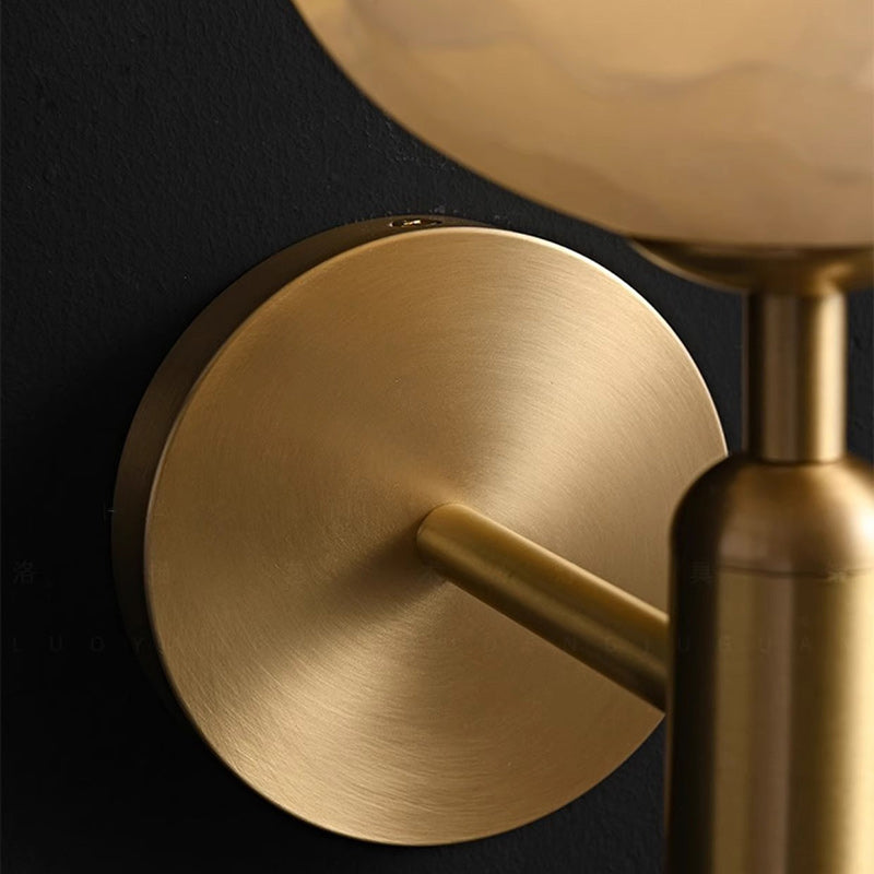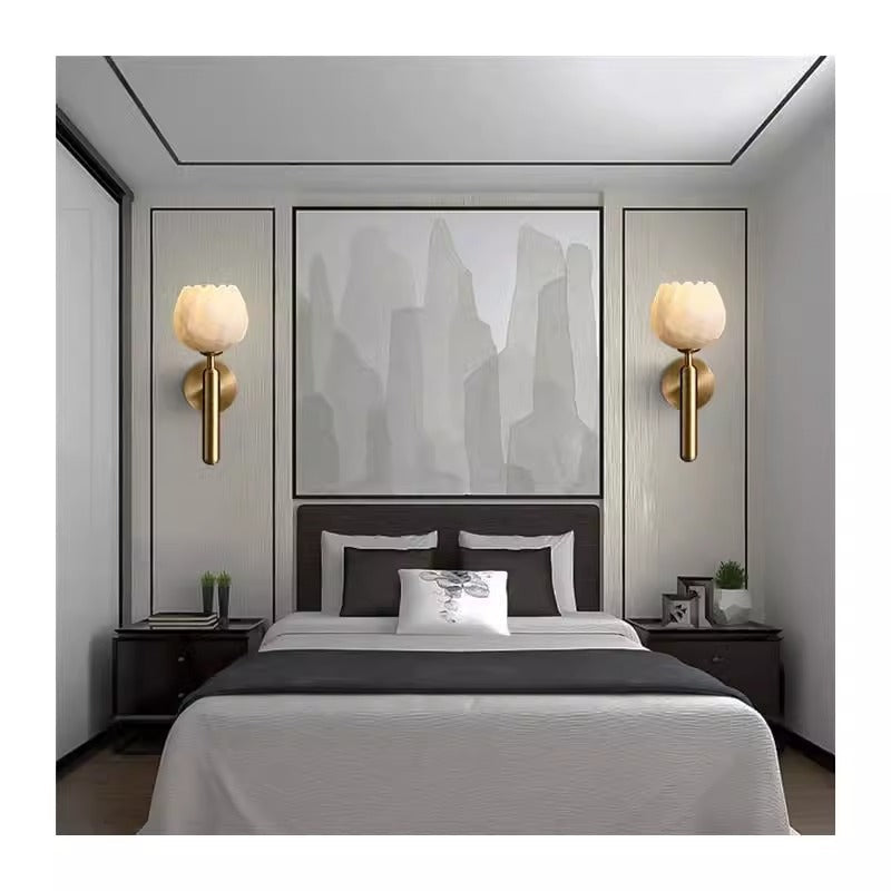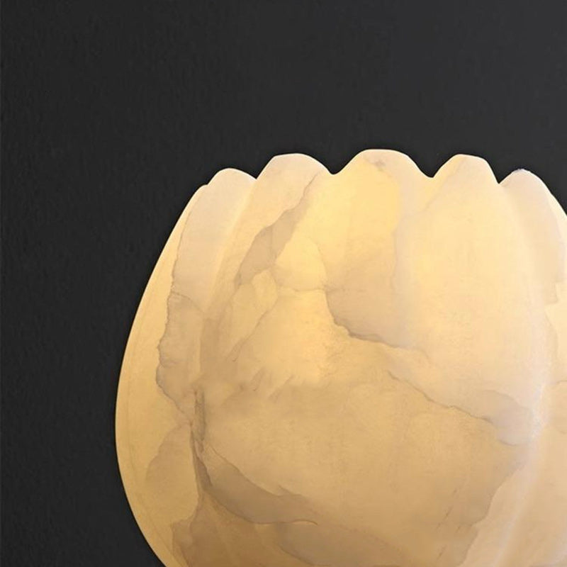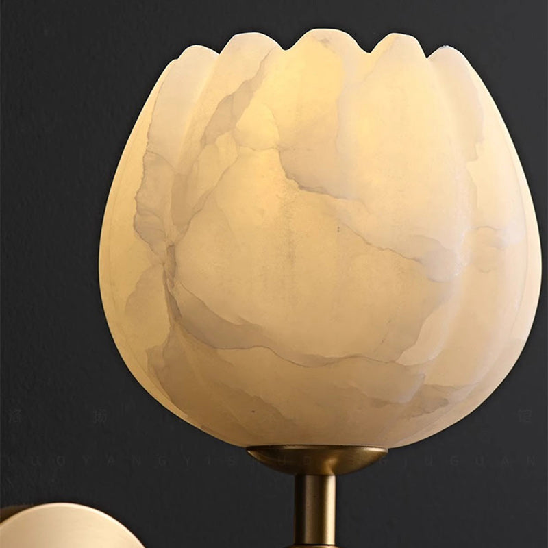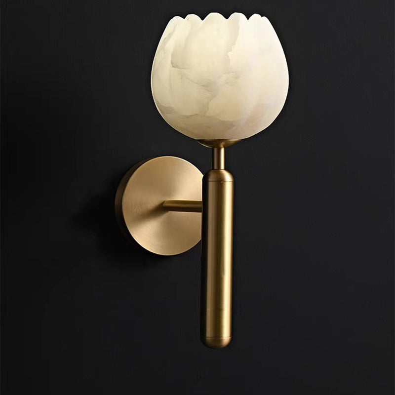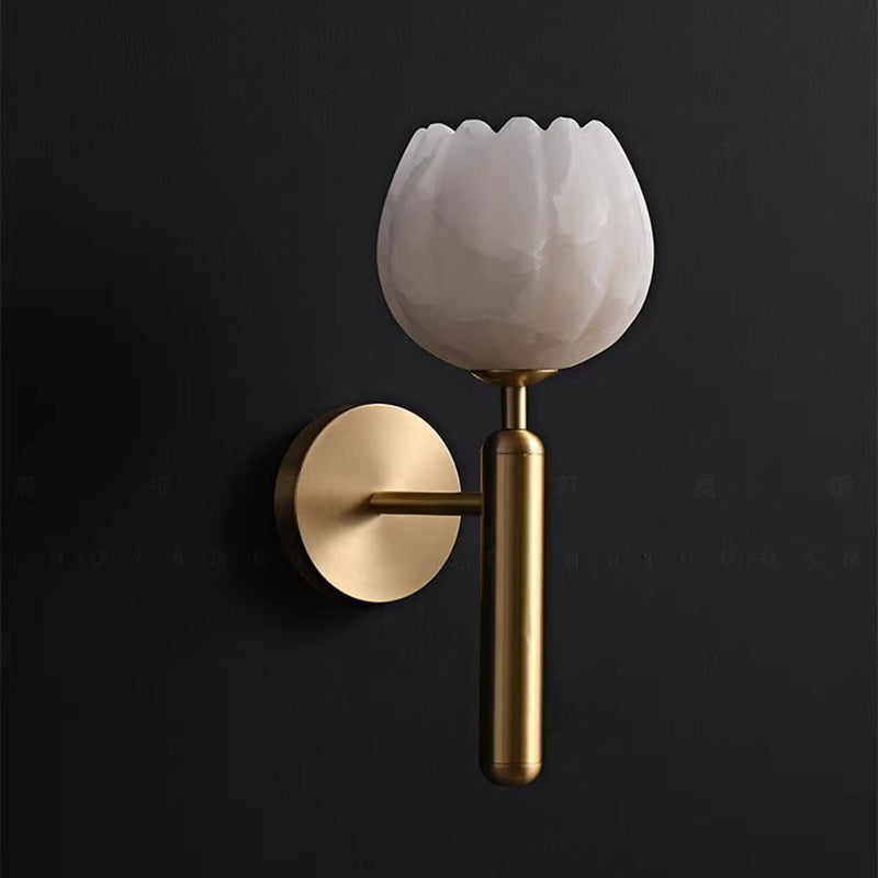 Traditional Chinese Copper Marble Flower Bud 1-Light Wall Sconce Lamp For Hallway